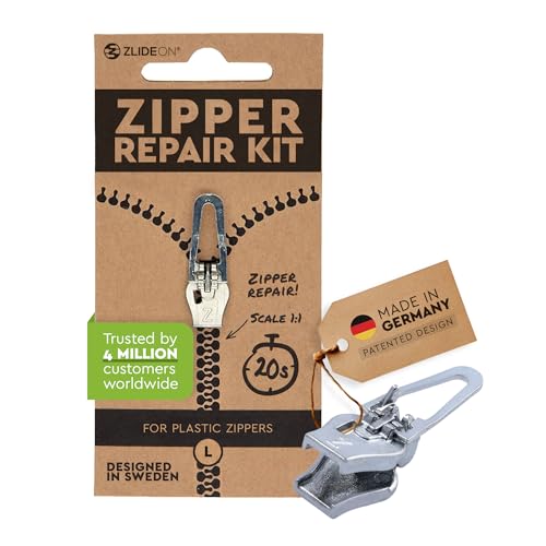 ZlideOn Zipper Repair – normal plast och metalldragkedja XXL silver ZlideOn dragkedja reserv – 7 st, svart, stor (Large Mulipack (7 st))