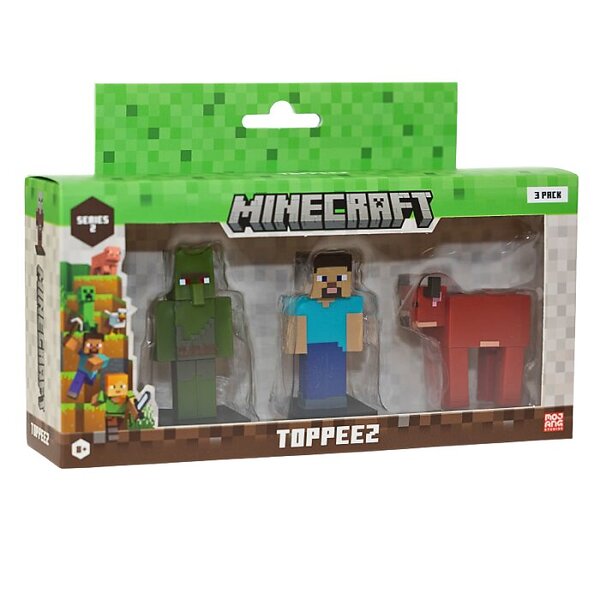 Minecraft 3D Figur Zombie Villager, Steve og Cow 6cm