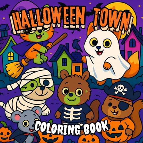 Halloween Town: Halloween Coloring Book for Kids – Coloring book for children with 40 easy and fun illustrations: zombie animals, pumpkins, and adorable ghosts.