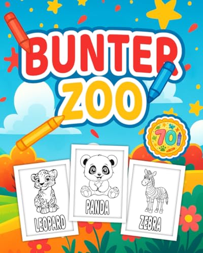 Bunter Zoo: Tier-Malbuch für Kinder 3–8 Jahre & Erwachsene Anfänger: 70 süße Tiere aus Bauernhof, Dschungel & Meer • Große, einfache Motive • Einseitige Seiten • Bunter Zoo Serie