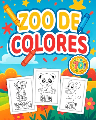 Libro para colorear animales para niños 3–8 años y adultos principiantes: 70 animales lindos de granja, selva y océano • Dibujos grandes y fáciles • Páginas a una cara • Zoo de Colores Serie