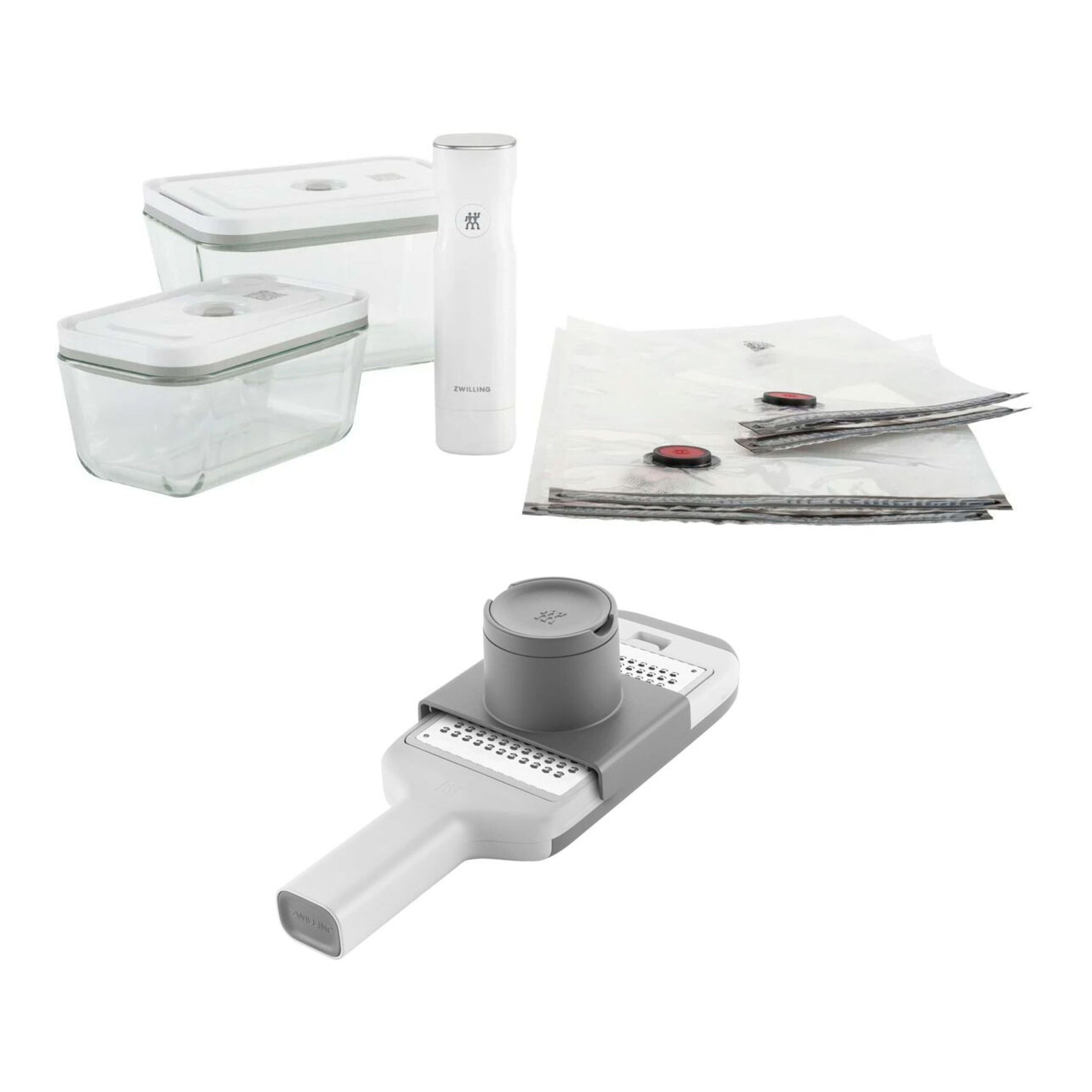 ZWILLING Fresh & Save Vakuumset med rivjärn och spiralizer, 5-st/ S/M/L, Grå/ Transparent, Glas/ Plast