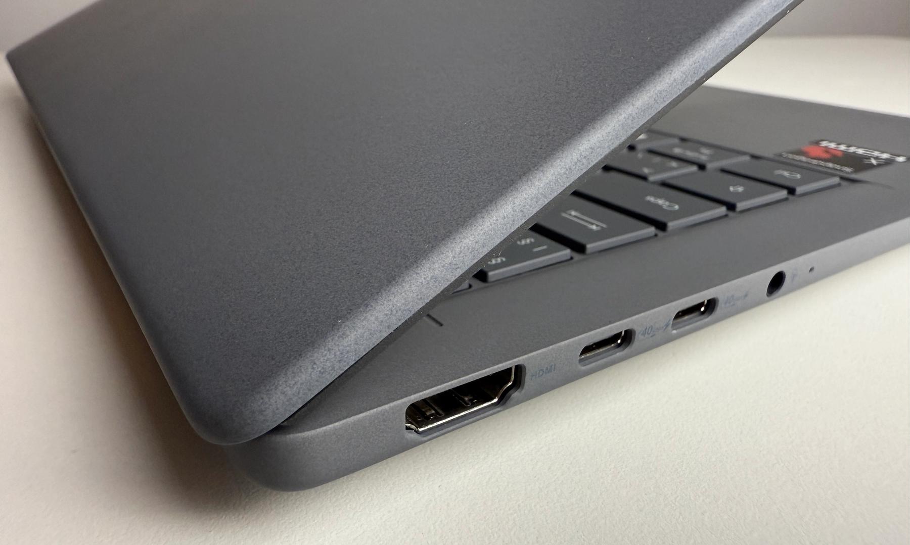 Högtalarna, som jag tycker är lite under kritik, sitter på undersidan och hörs ännu sämre om datorn står på något mjukt, till exempel i knät på en filt i soffan, som det var i mitt fall under en av testperioderna. Det hade varit bättre om högtalarna satt framför tangentbordet.
