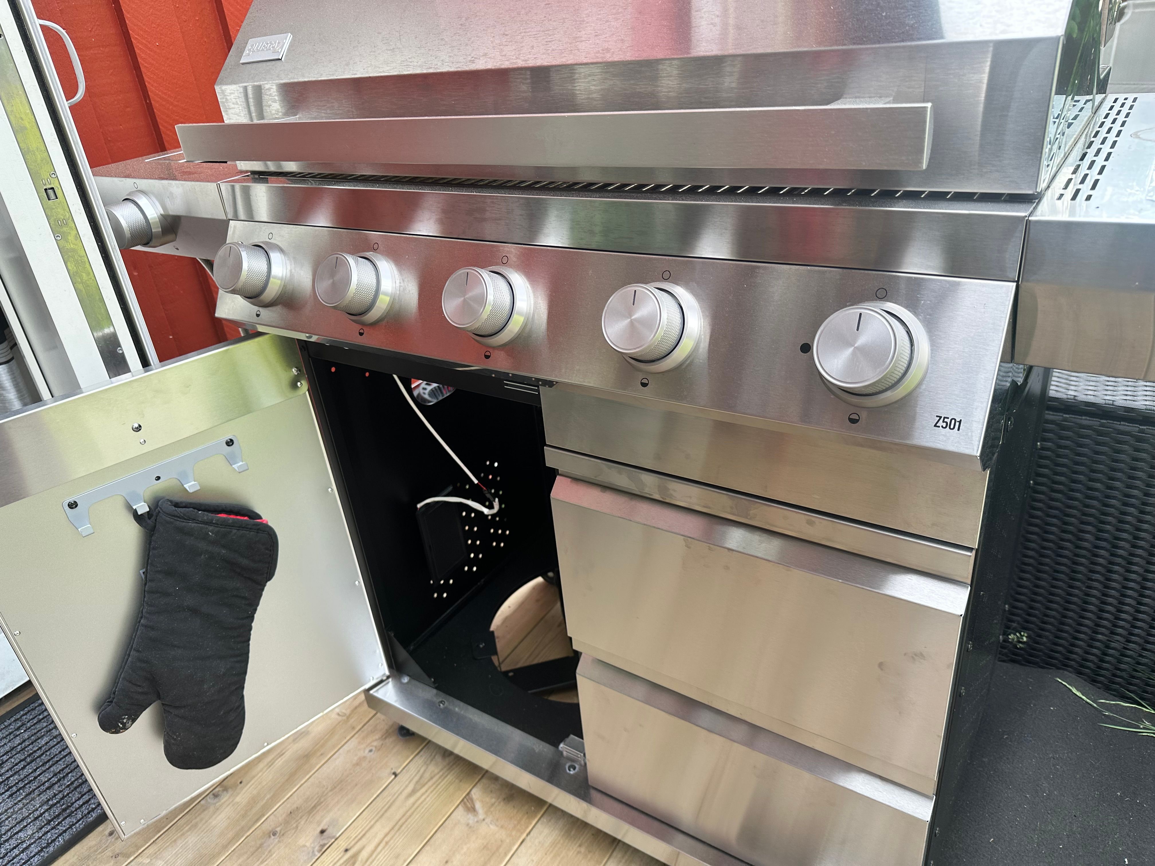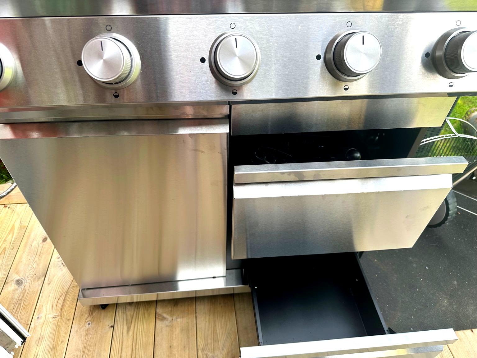 Förvaringen är som sagt också riktigt fin. Skåp, lådor och krokar där du faktiskt vill ha dem. Du slipper springa in efter grejer. Allt finns på plats, nära till hands, i nästan 5S-precision. Det är sånt som gör skillnad när du står där mitt i grillandet.