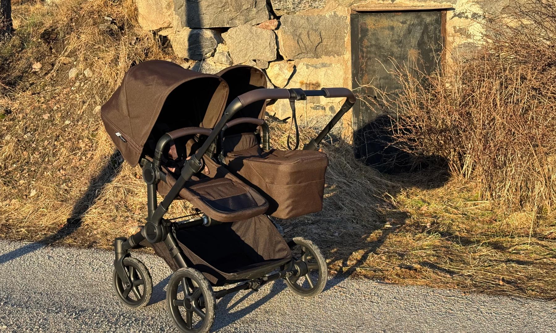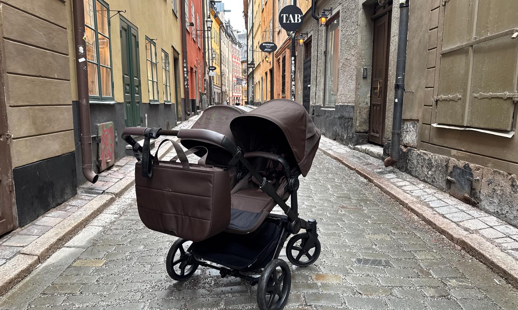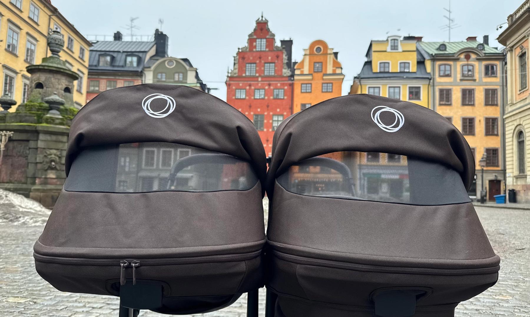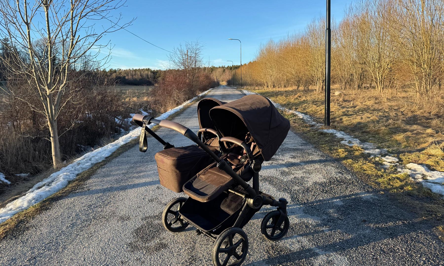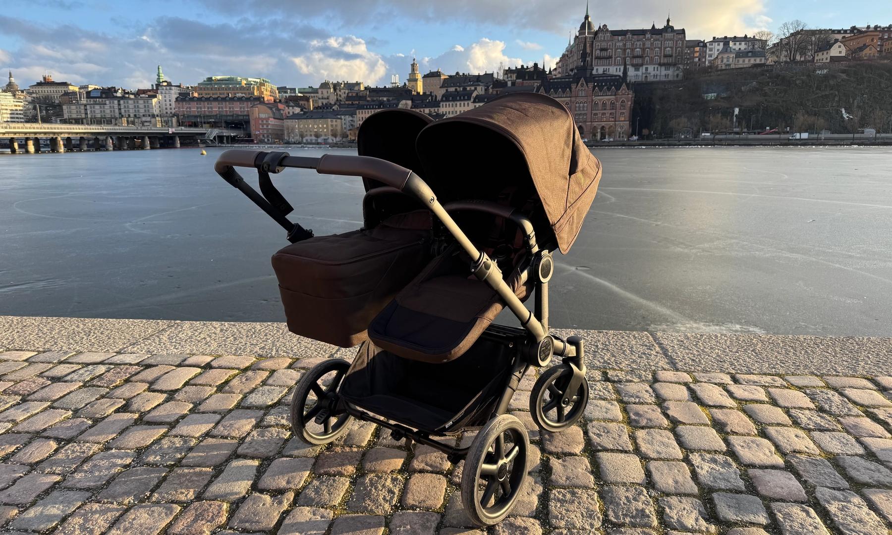 Den passar också dig som har tvillingar eller täta syskon då den på ett par sekunder ändras från enkel- till dubbelvagn. Den blir inte för bred i duoläget utan håller sig inom det så kallade stockholmsmåttet, vilket är 75 cm brett.