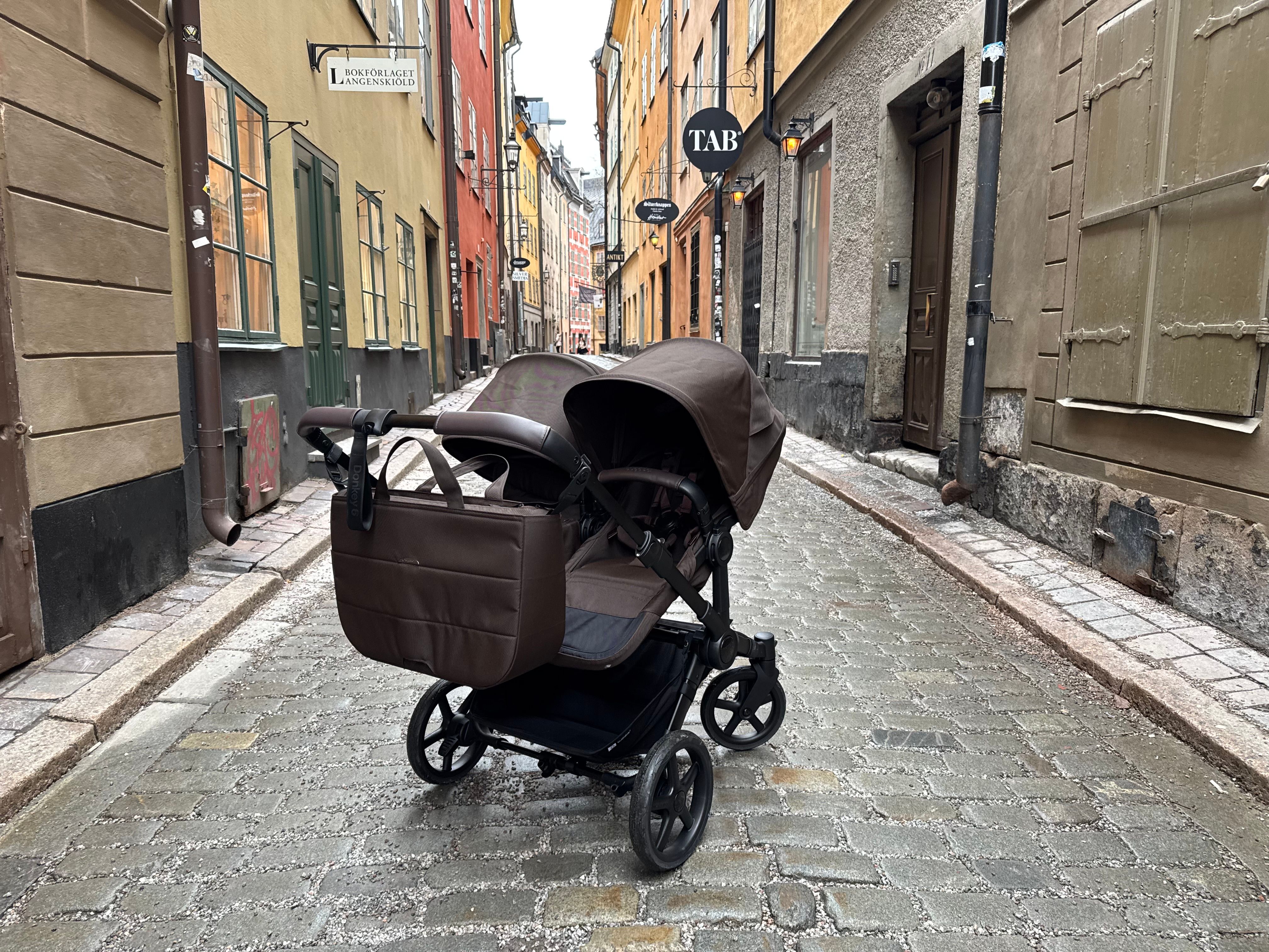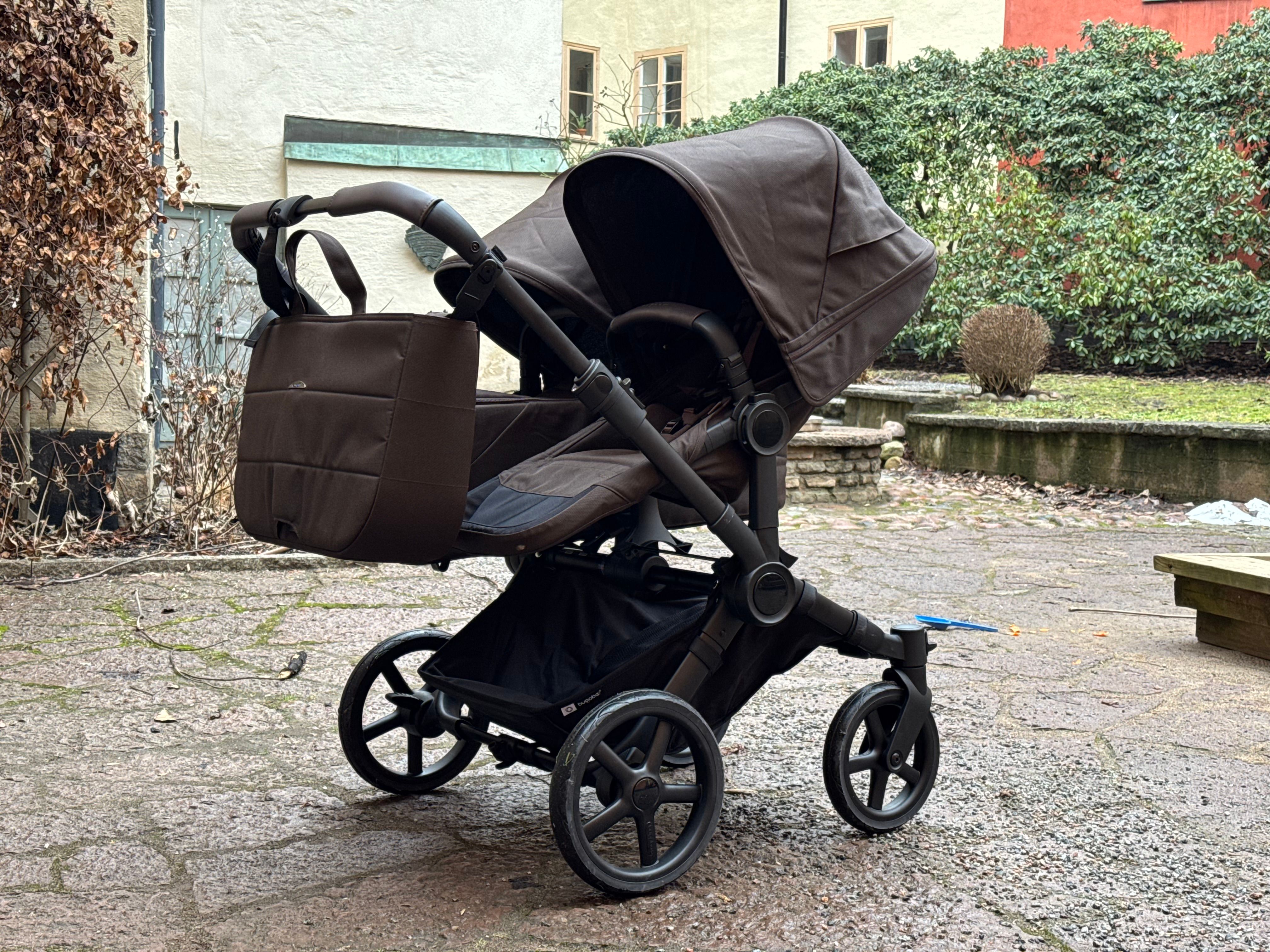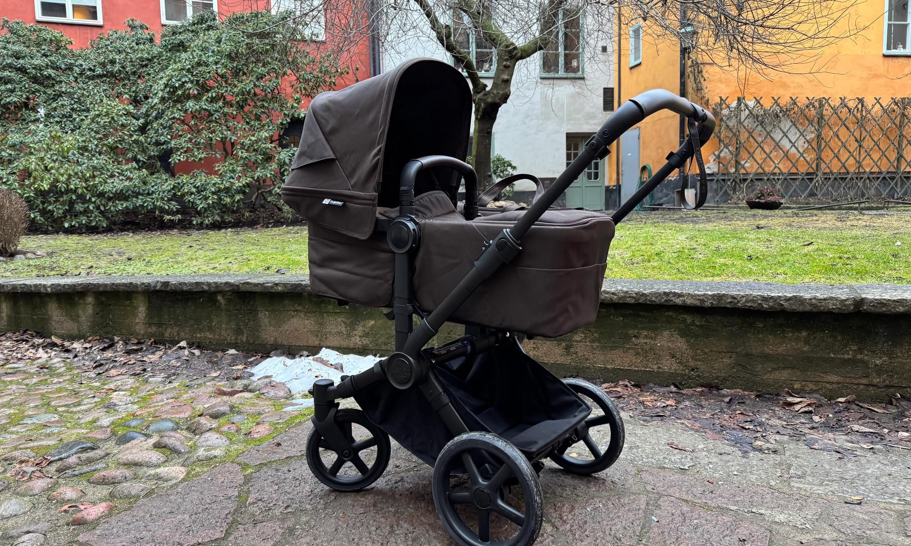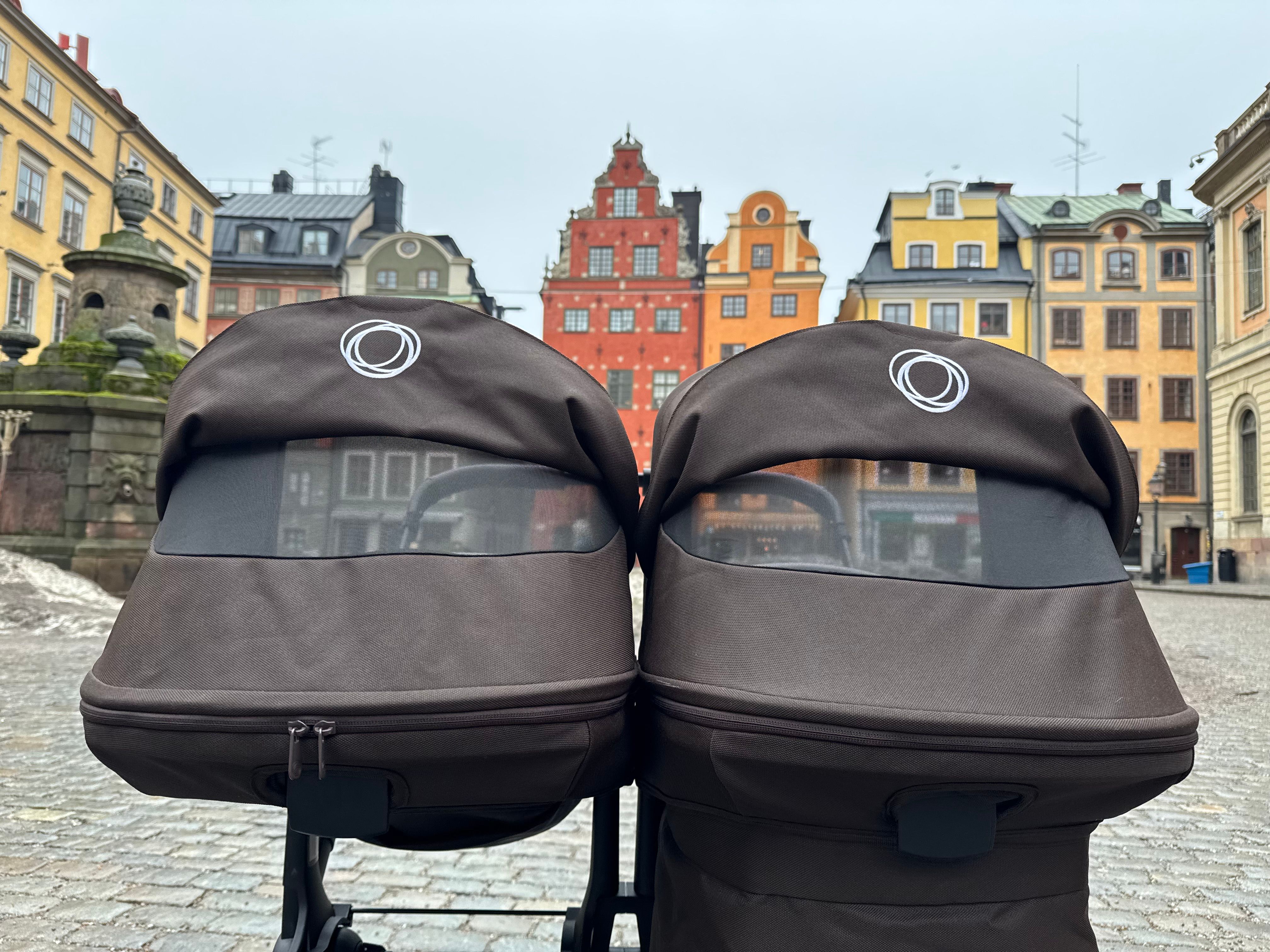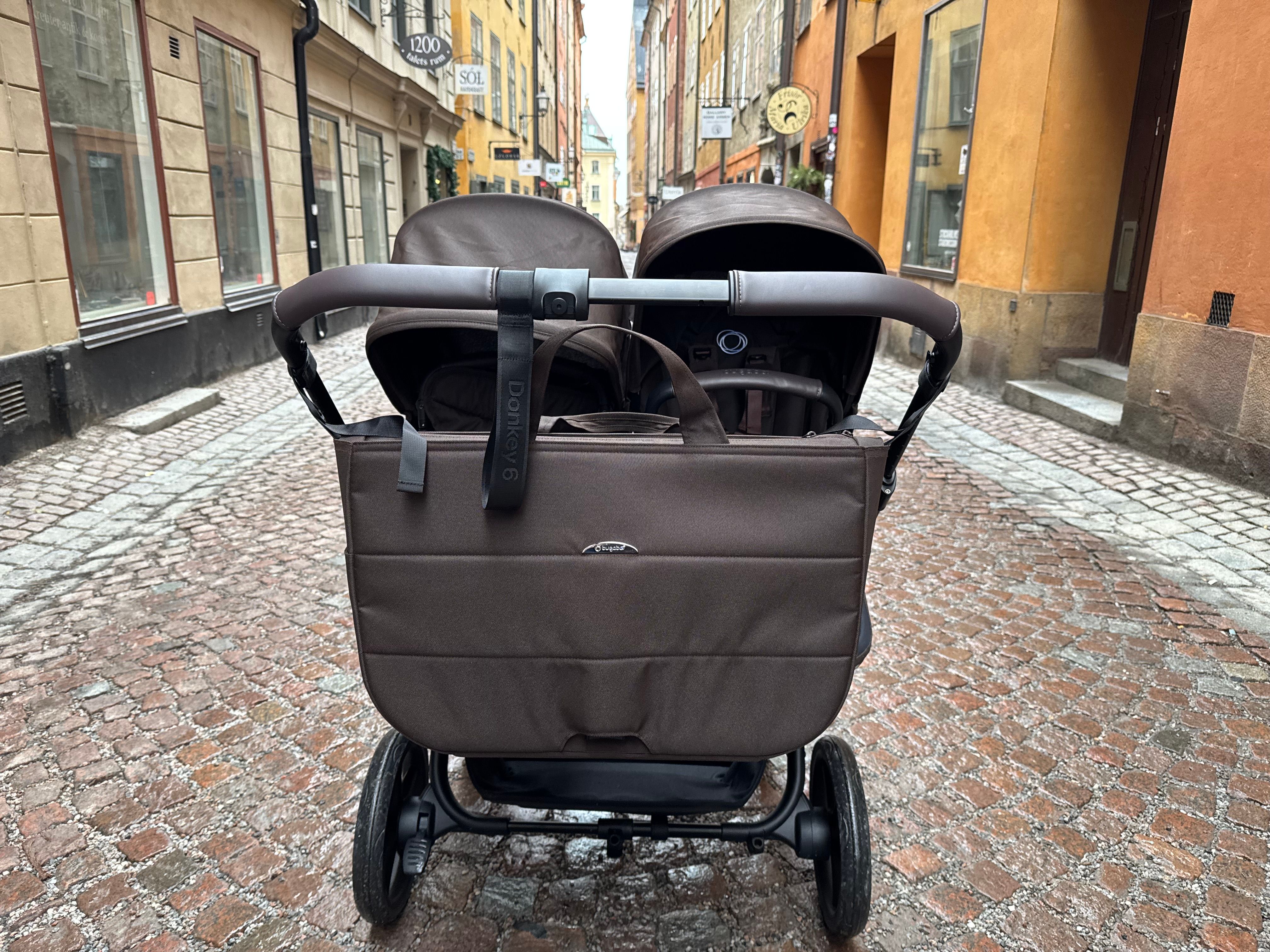 Den passar också dig som har tvillingar eller täta syskon då den på ett par sekunder ändras från enkel- till dubbelvagn. Den blir inte för bred i duoläget utan håller sig inom det så kallade stockholmsmåttet, vilket är 75 cm brett.