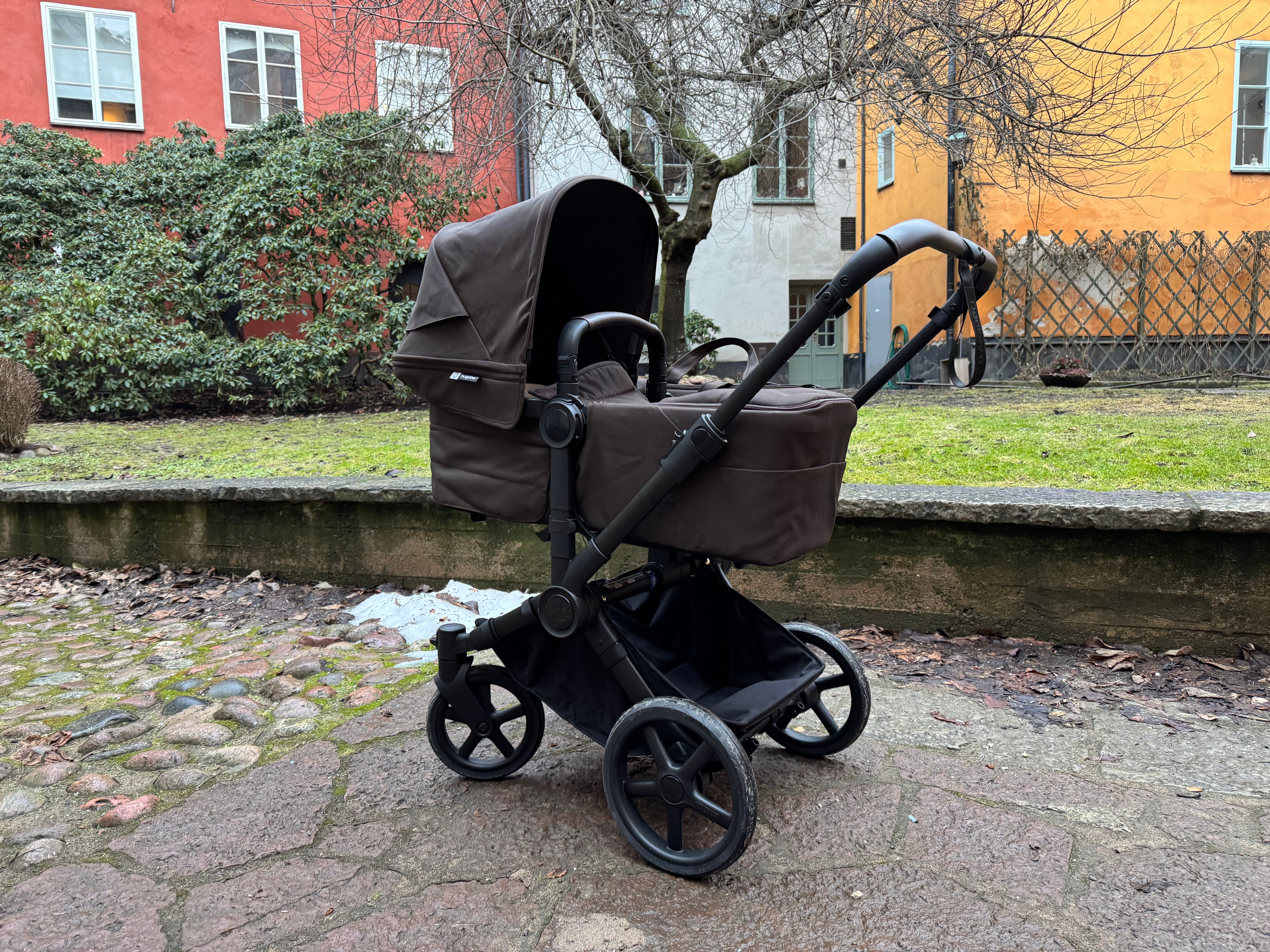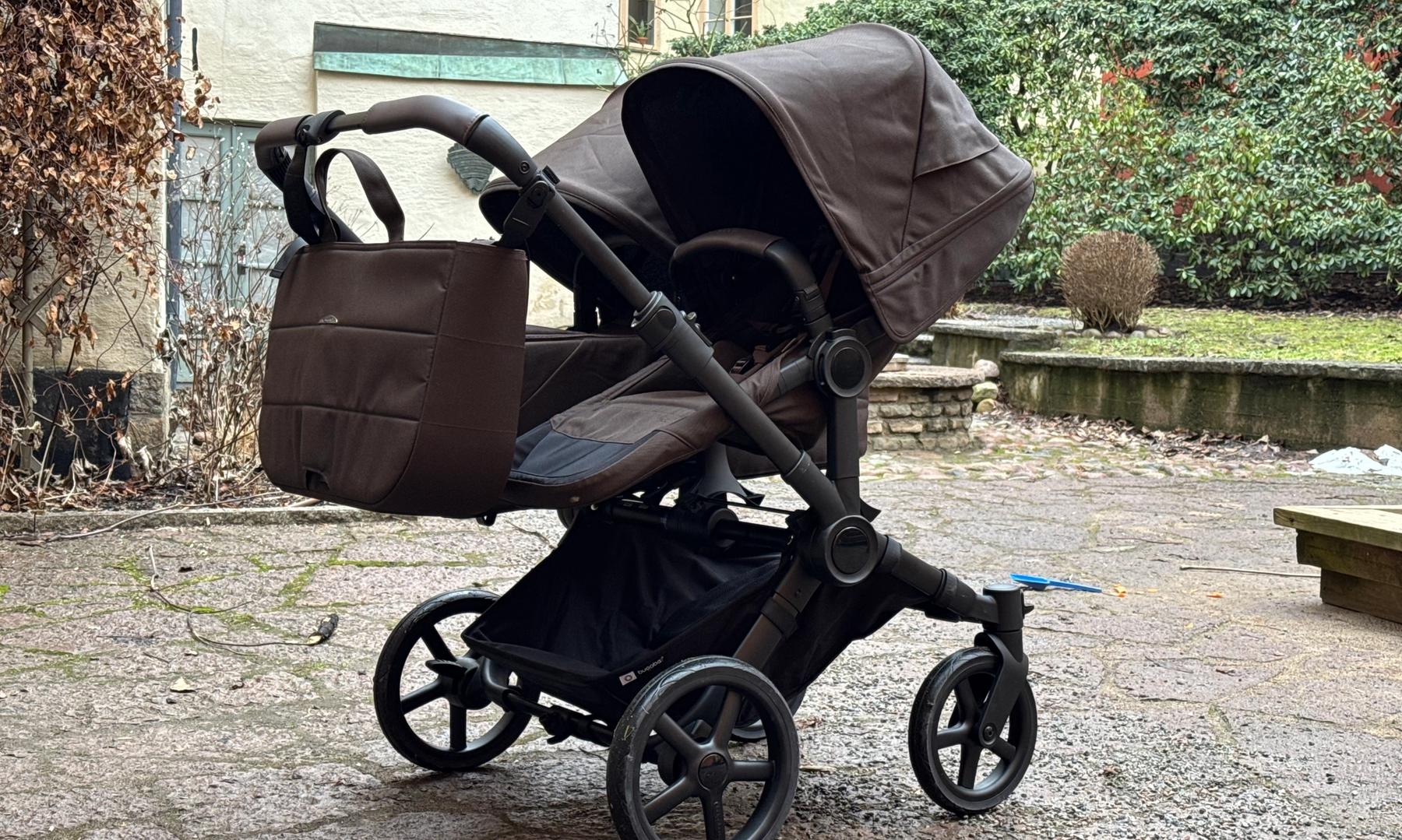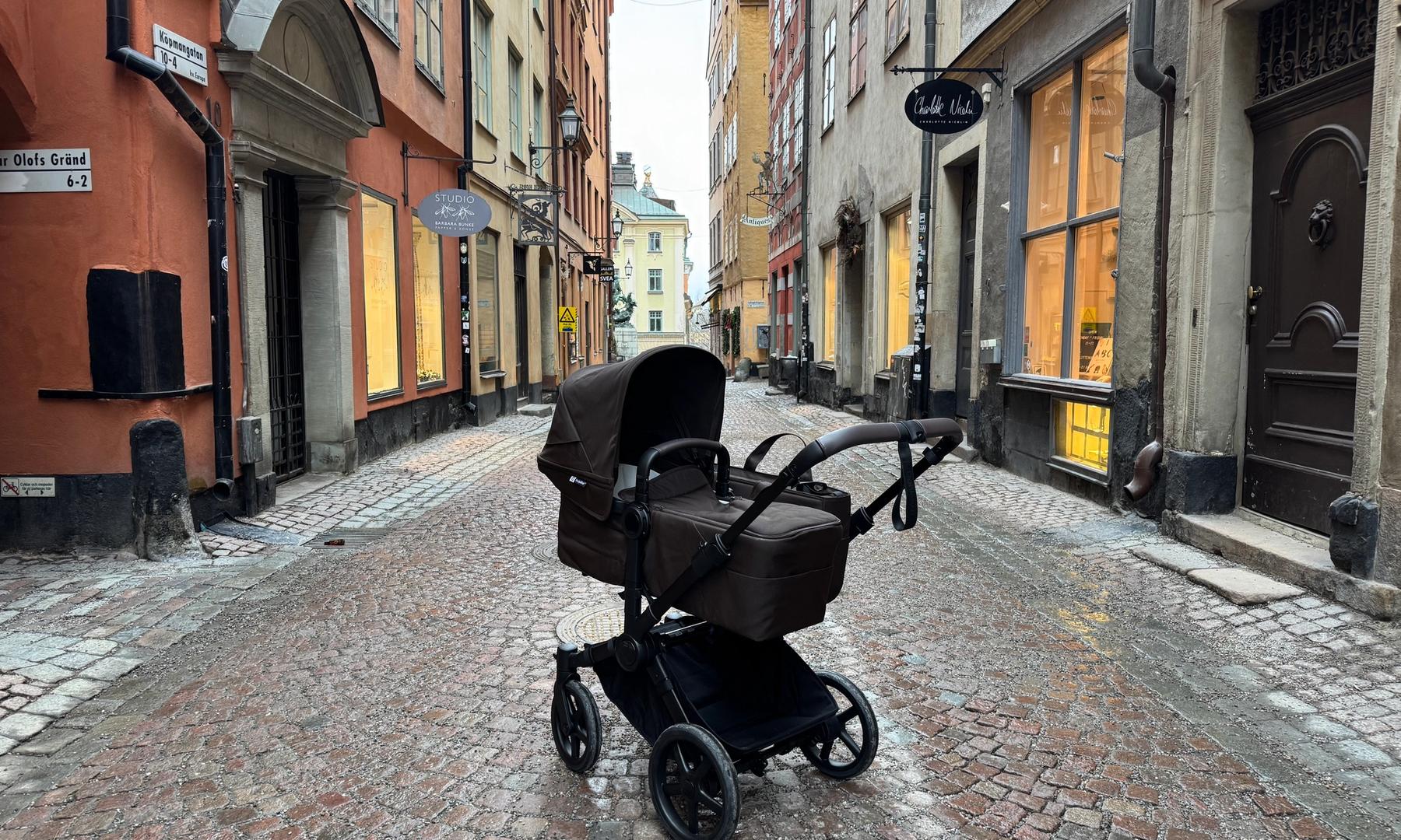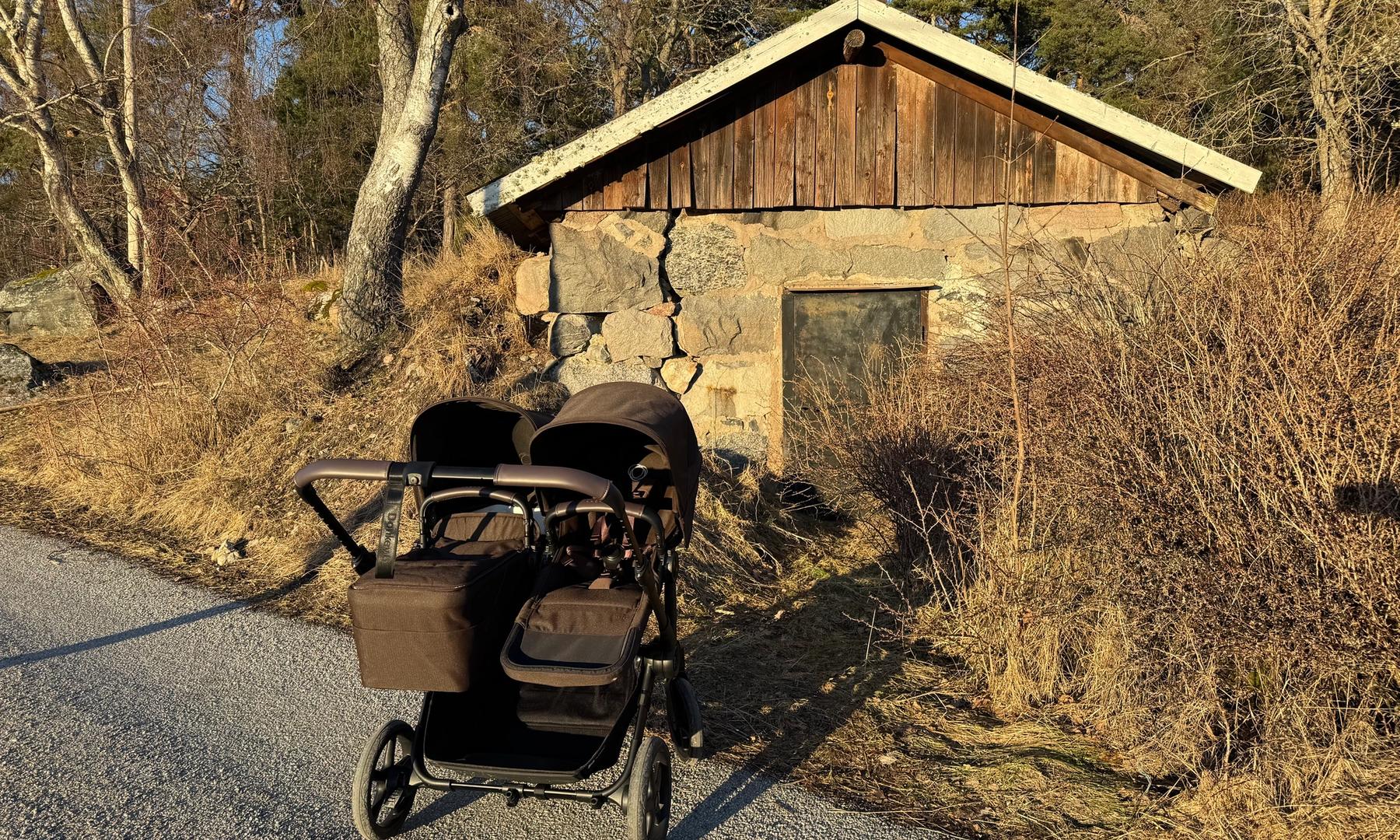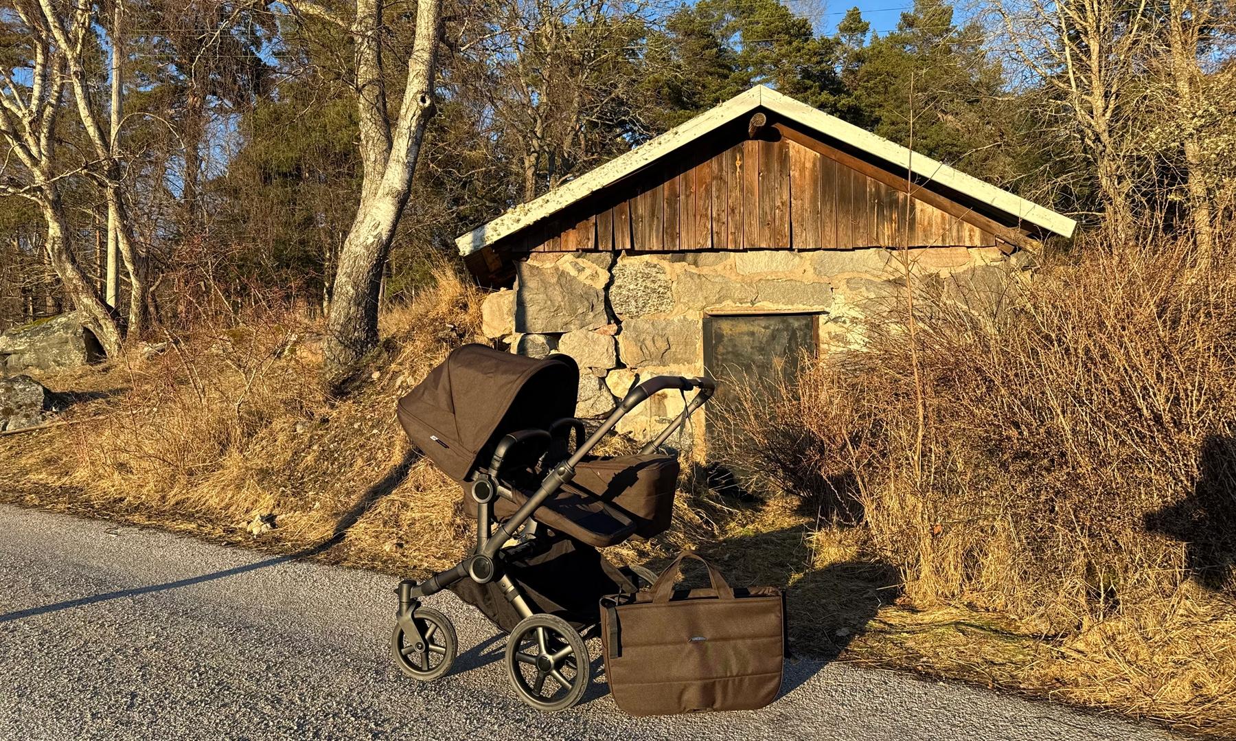 Den passar också dig som har tvillingar eller täta syskon då den på ett par sekunder ändras från enkel- till dubbelvagn. Den blir inte för bred i duoläget utan håller sig inom det så kallade stockholmsmåttet, vilket är 75 cm brett.