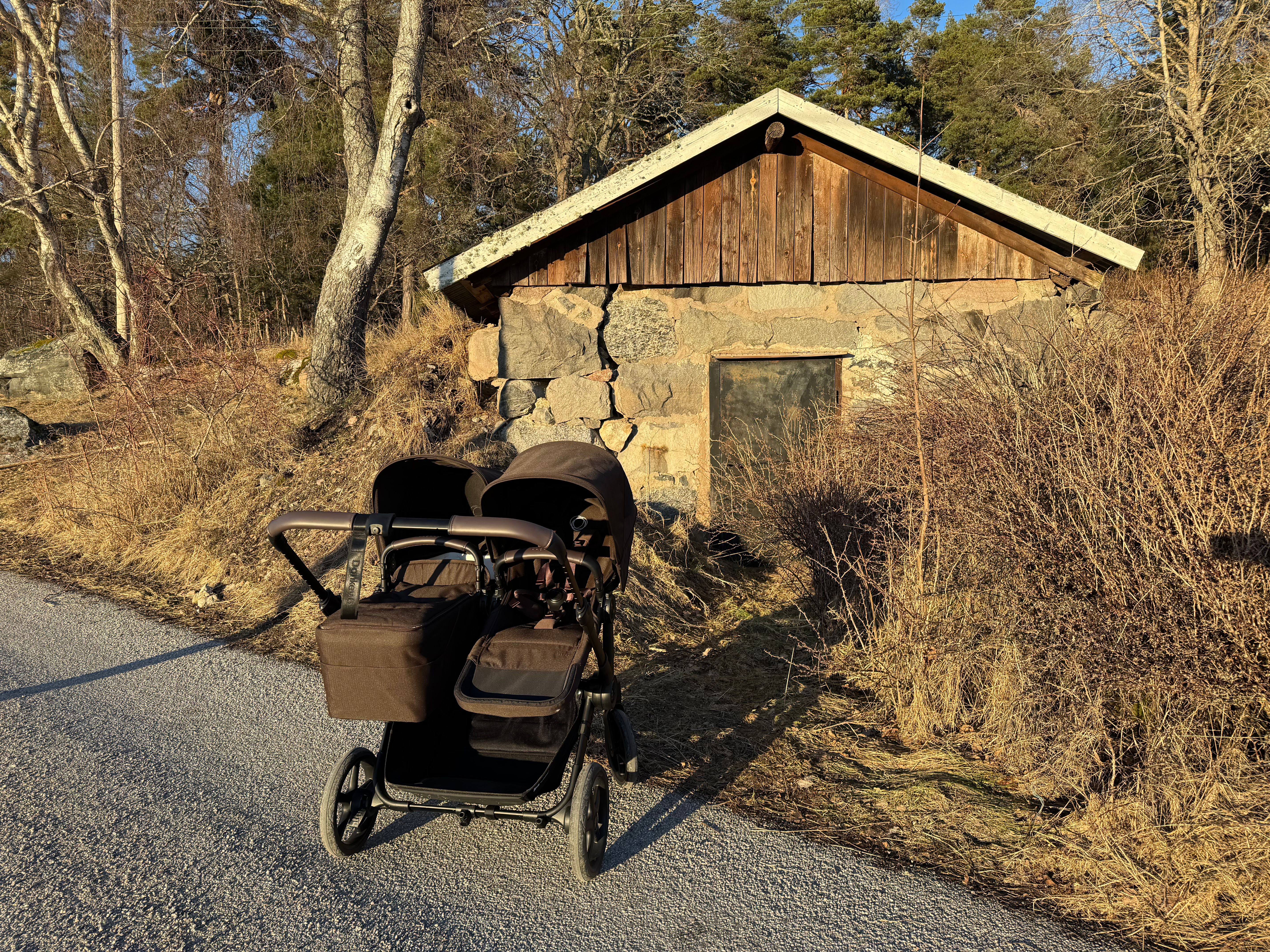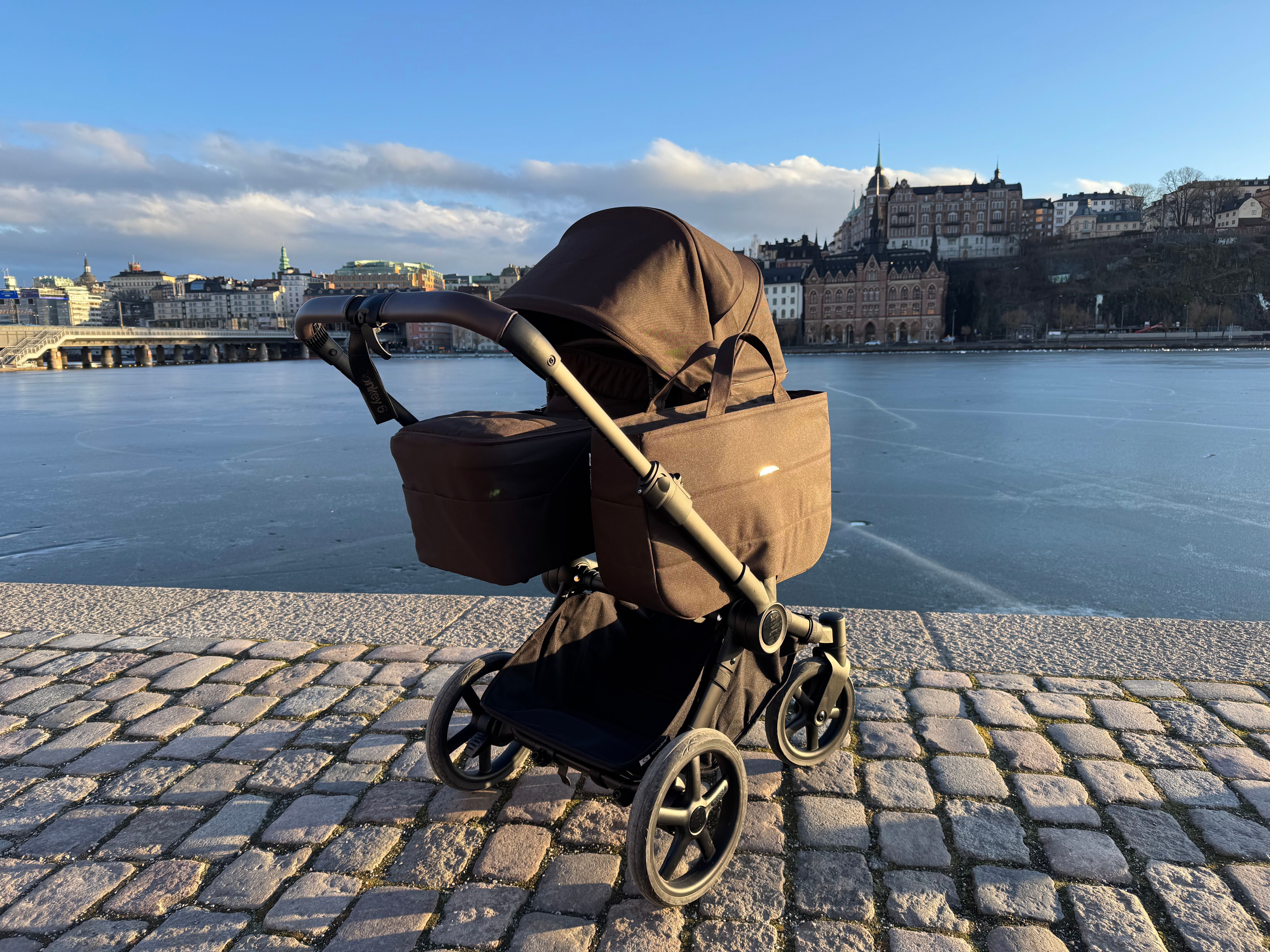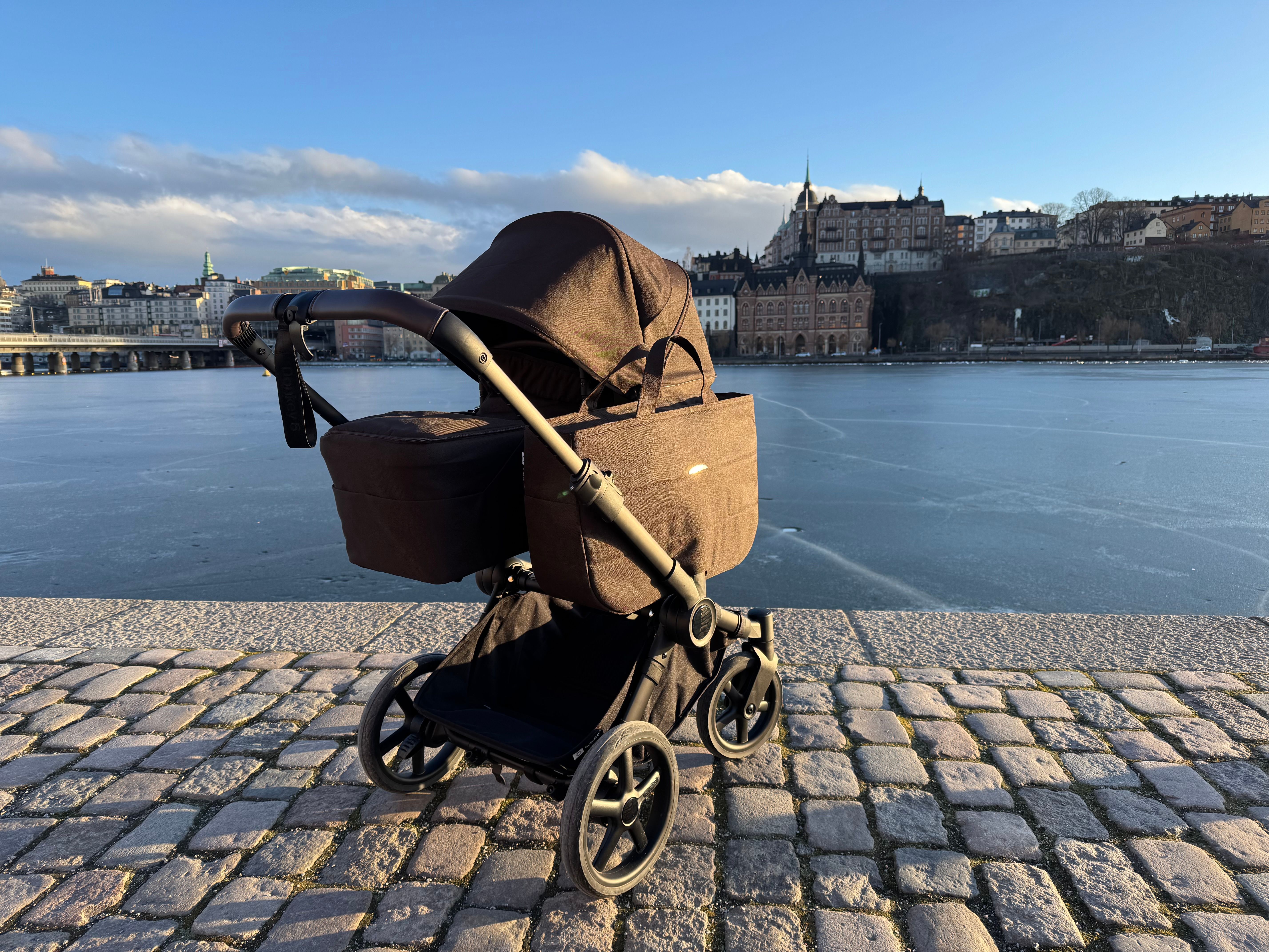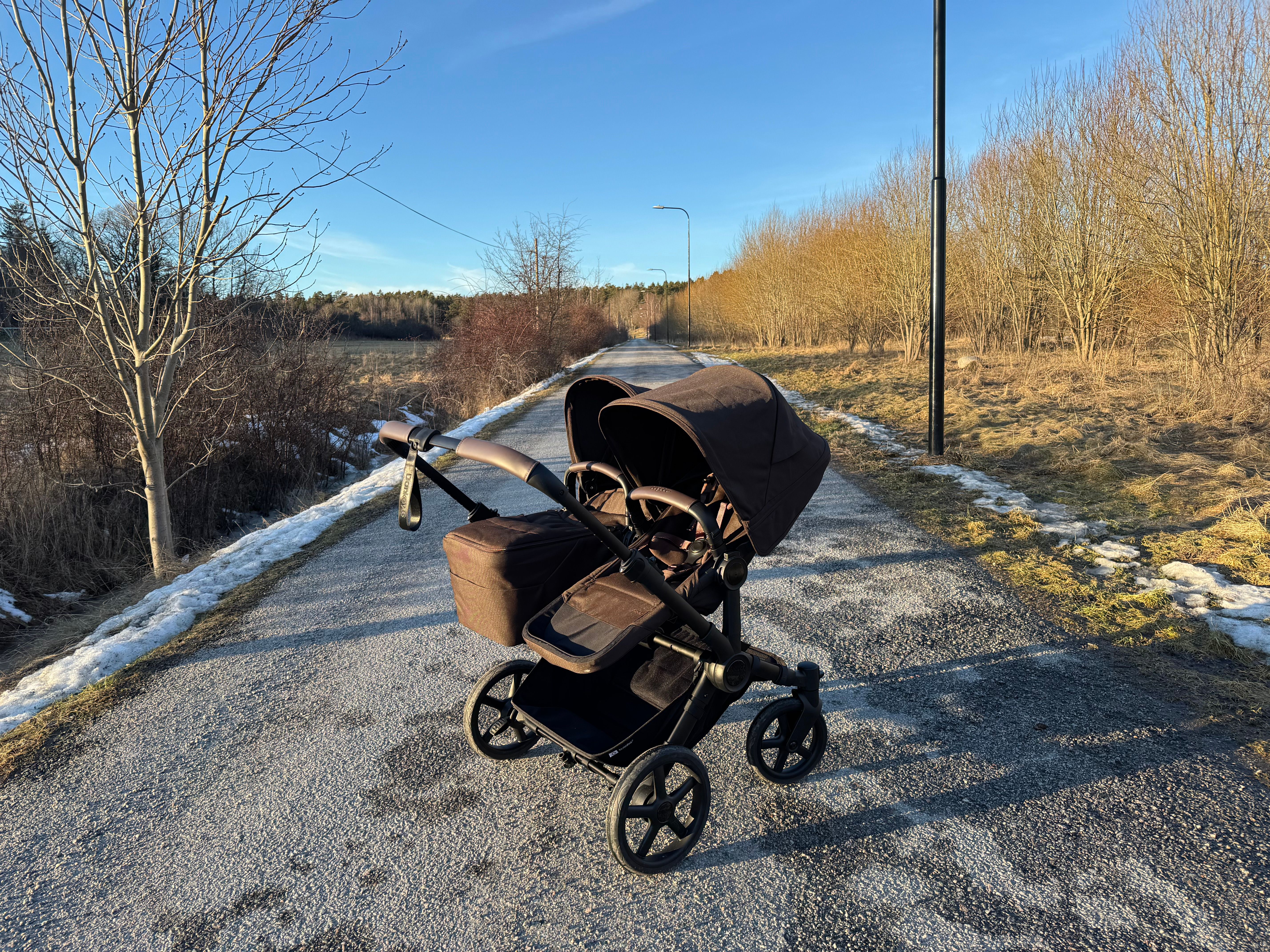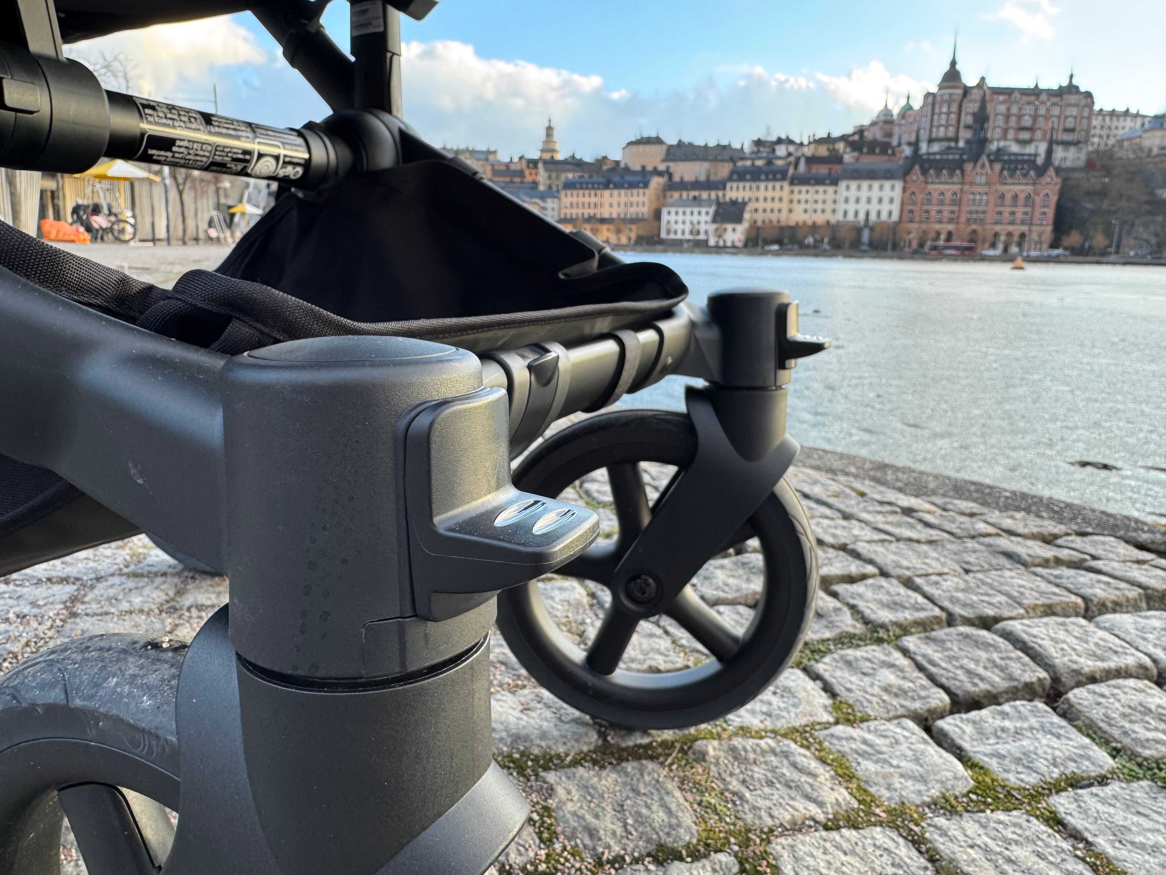 Den passar också dig som har tvillingar eller täta syskon då den på ett par sekunder ändras från enkel- till dubbelvagn. Den blir inte för bred i duoläget utan håller sig inom det så kallade stockholmsmåttet, vilket är 75 cm brett.
