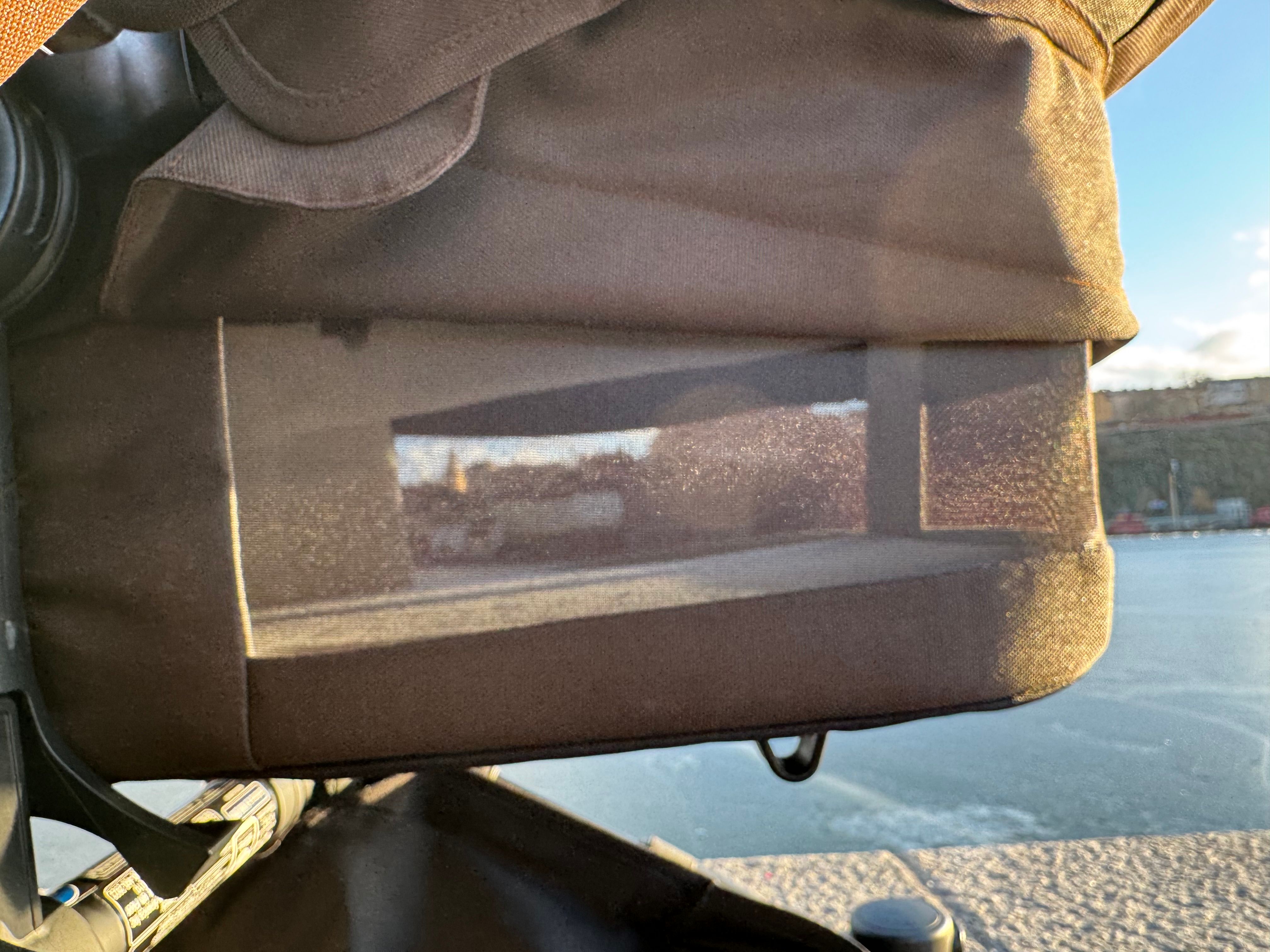 Vindskyddet är uppdaterat nu till Donkey 6 och är mycket längre, ett stort plus! Nu skyddar det bebisen från vind och blåst. Vindskyddet hålls numera på plats med dragkedja och även tryckknappar längst fram så den uppvikbara delen inte viker ner sig när det blåser. Det här är en jättebra uppdatering, samt att det nu går längre upp och går under bygeln så att det faktiskt skyddar bebisen från blåsten.