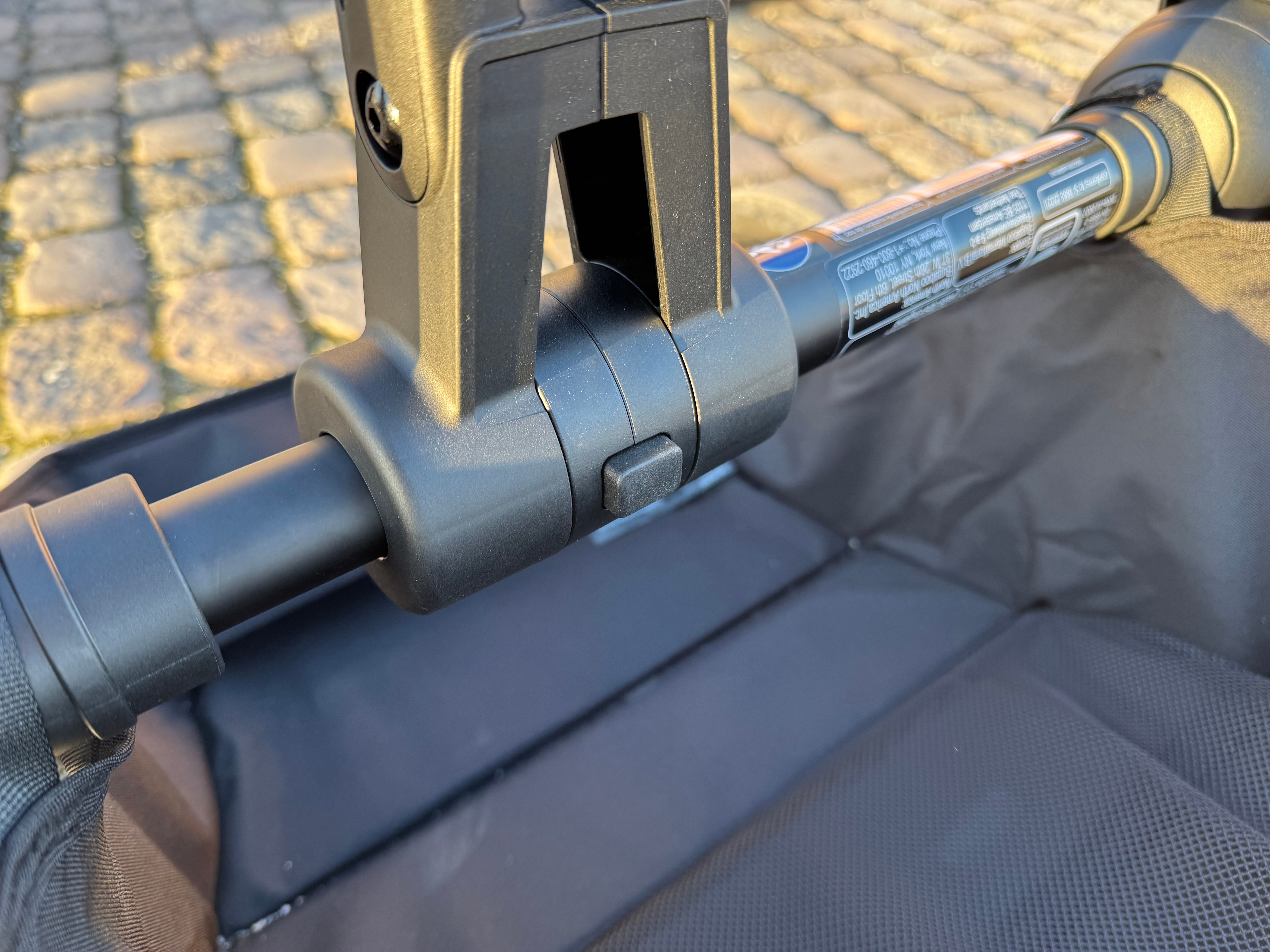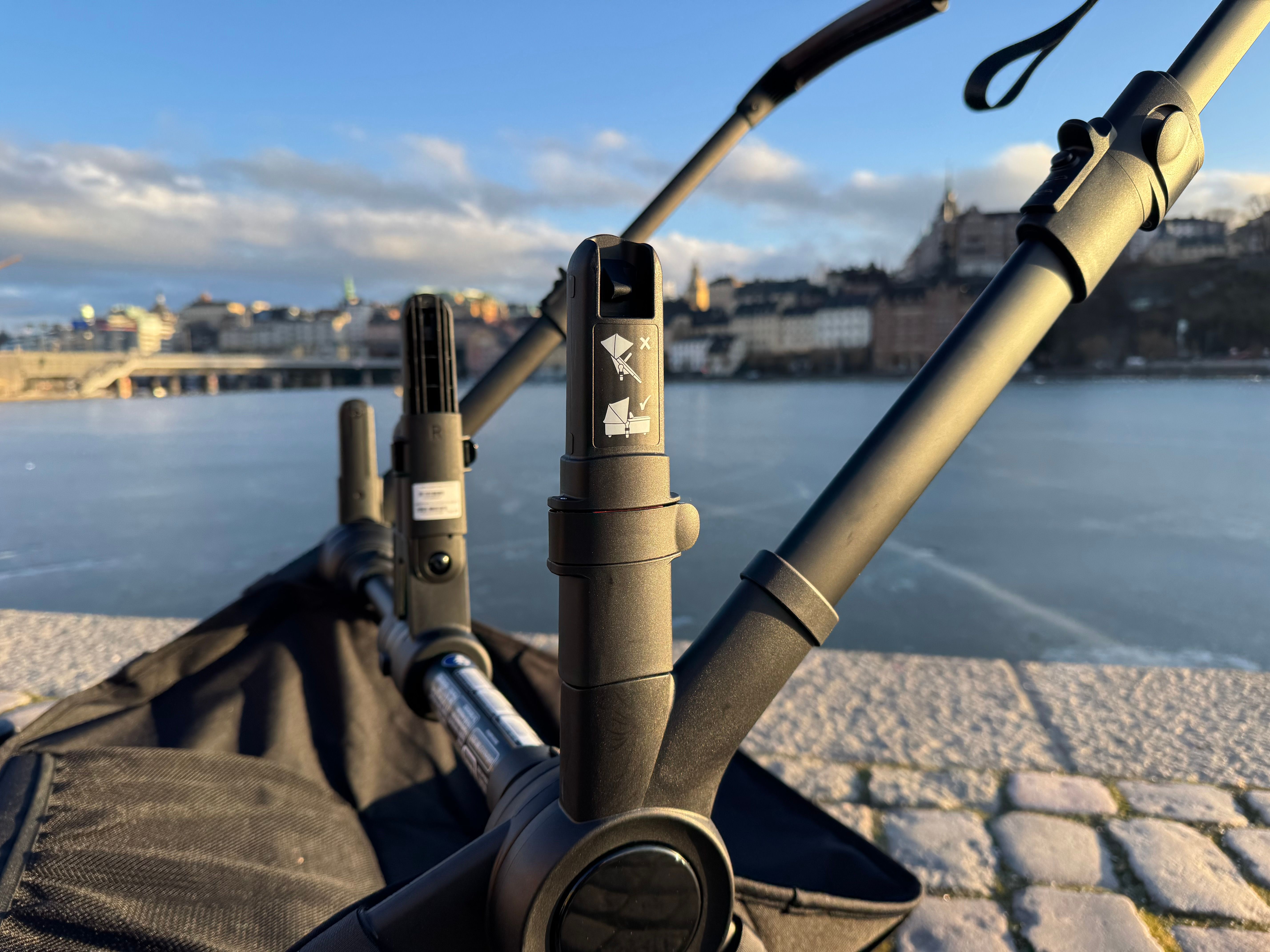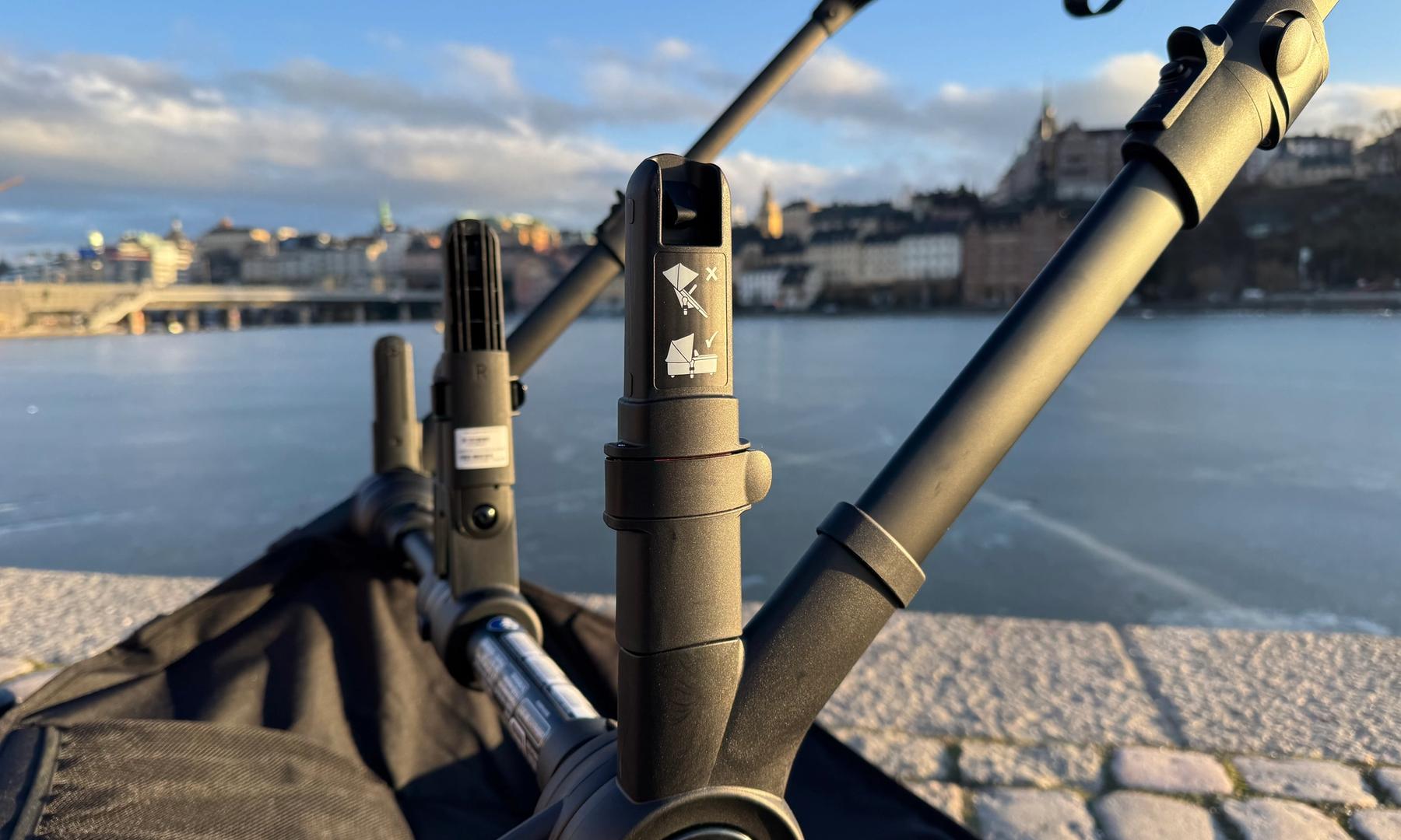 Jag har tidigare tyckt att liggdelen känts lite långt ner mot marken, men numera finns det höjdadaptrar att köpa till. De höjer liggdelen 10 cm och jag tycker det är ett jättelyft! Liggdelen och bebisen kommer mycket högre upp och det känns som att man har bättre överblick och kommer närmare bebisen. Mycket viktigt att tänka på är att höjdadaptrarna endast får användas med liggdelen monterad, ej med sittdelen! Med det sagt så tycker jag verkligen att dessa adaptrar är något man ska överväga att köpa när man funderar på tillbehör.
