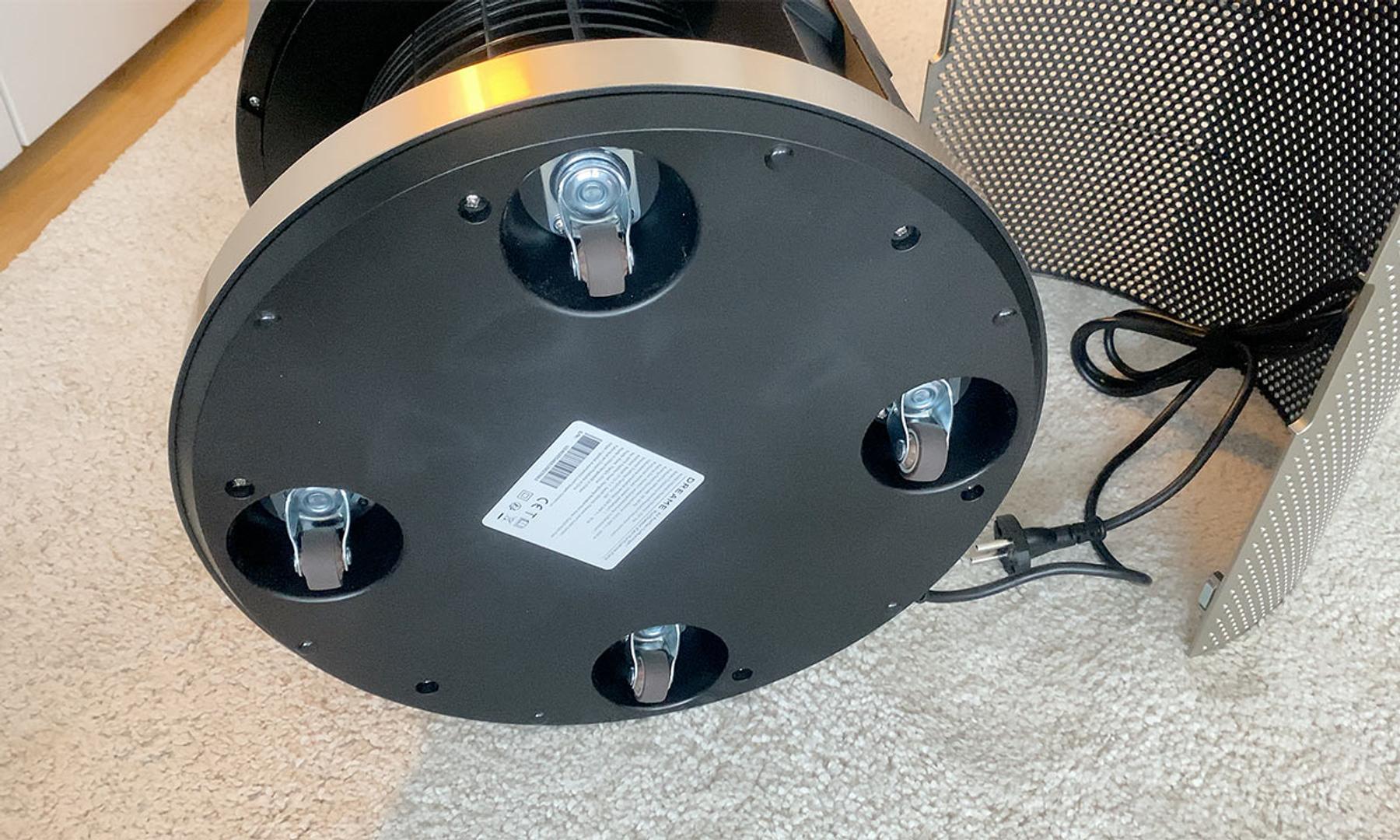 Även om det också må se ut som att PM20 är producerad av metall är så verkligen inte fallet. Utan här är det plast i stort sett överallt. Något som också det påverkar den annars ganska exklusiva designen lite åt det negativa hållet. Byggkvalitén som sådan är dock förhållandevis stabil och med en vikt på ordentliga 12,7 kg står Dreame PM20 stadigt. Trevligt nog har den också fyra små hjul på undersidan, vilket gör det möjligt att rulla den från rum till rum om den behöver flyttas. Sen huruvida designen är det häftigaste man sett eller snäppet för mycket är så klart subjektivt och mycket avhängt placering. Jag lutar dock mer åt det senare alternativet. Men det är jag.