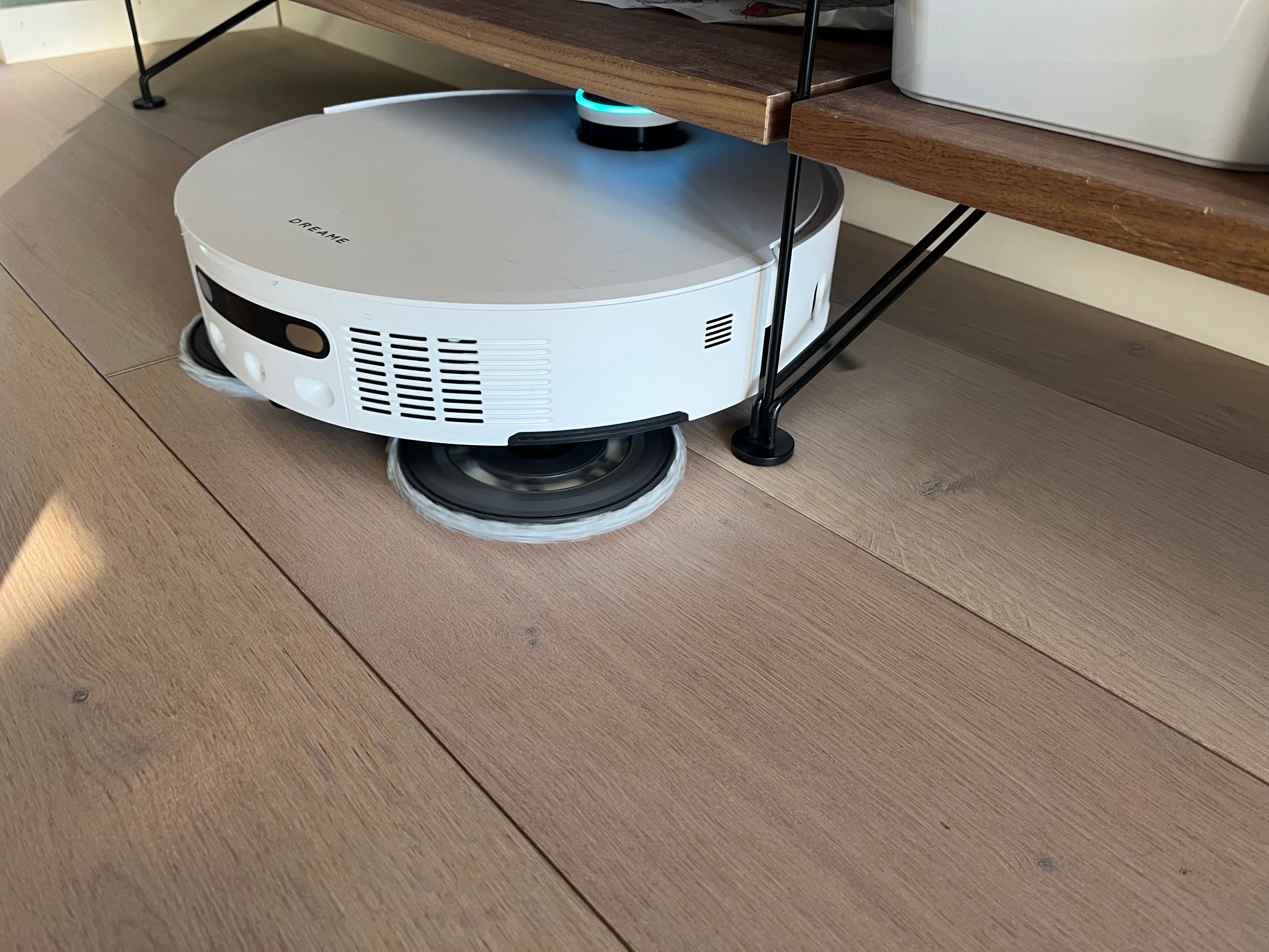 För oss innebar detta att roboten kunde komma åt ställen där andra robotdammsugare tidigare haft svårt att städa. Om det är mörkt i utrymmet tänder roboten automatiskt sin LED-lampa i fronten för att bättre upptäcka och undvika hinder. Oavsett om rummet är mörkt eller ljust navigerar den smidigt utan problem. Under hela min testperiod fastnade roboten inte en enda gång, och jag behövde aldrig hjälpa den loss.