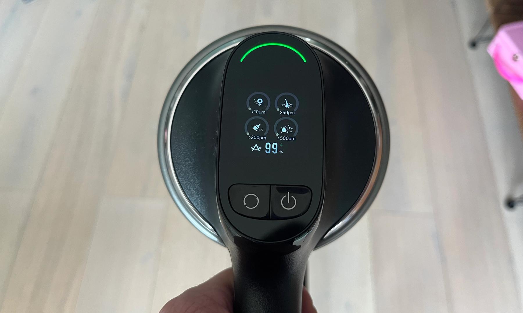Dreame Z30 är inte avsedd för att dammsuga vätskor utan är en ren torrdammsugare för hemmet. Detta innebär att all fokus ligger på att göra dammsugningen så effektiv som möjligt. Till sin hjälp har den en partikelsensor som övervakar hur mycket smuts dammsugaren suger upp. Baserat på detta anpassar Z30 sugeffekten i autoläget för att spara batteri och undvika att använda mer kraft än nödvändigt.