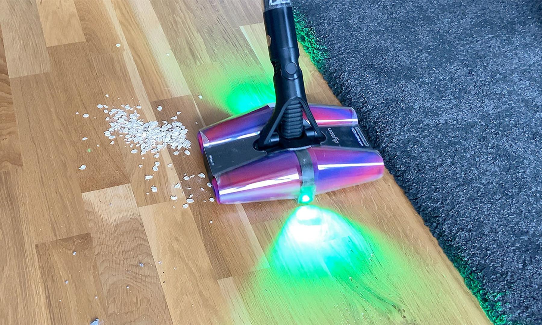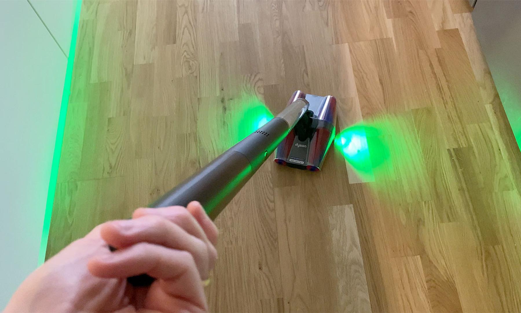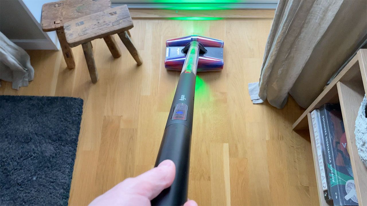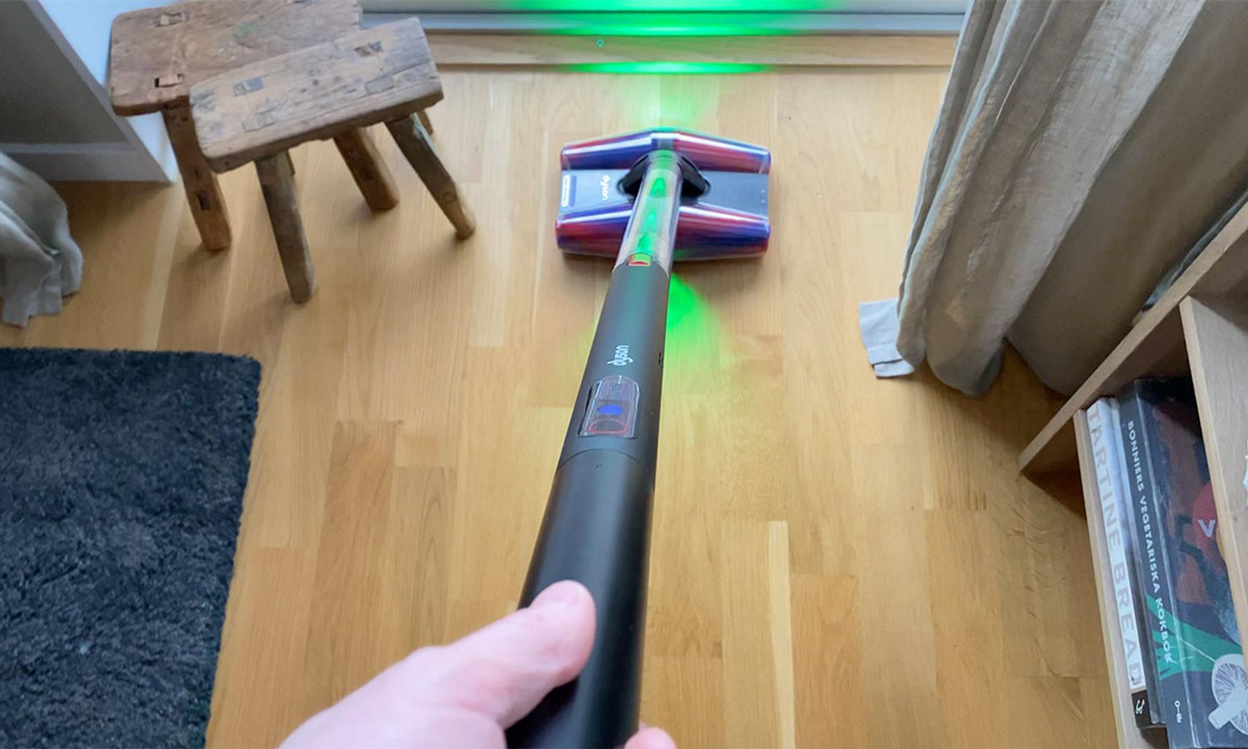Också värt att nämna är att PencilVac skickar iväg förhållandevis starkt, grönt LED-ljus både bakåt och framåt. Vilket, precis som hos många av företagets övriga dammsugare, hjälper till med att se var man har och inte har städat. En notis här är dock att det hade varit önskvärt att kunna stänga av LED-ljuset för dammsugning på exempelvis vita golvytor där ljuset är så pass kraftigt att det nästan gör det svårare att se damm och smuts.
