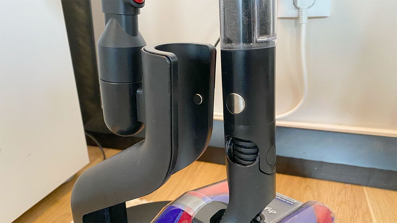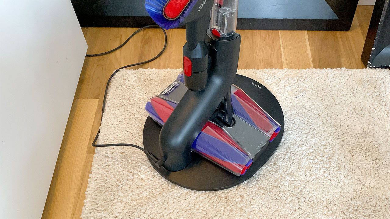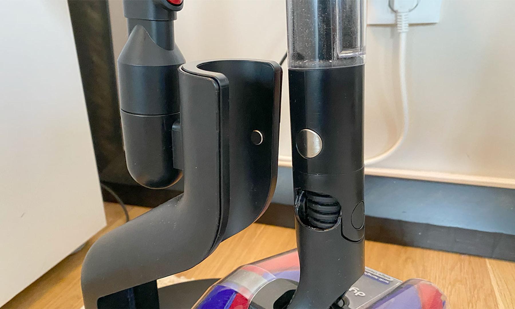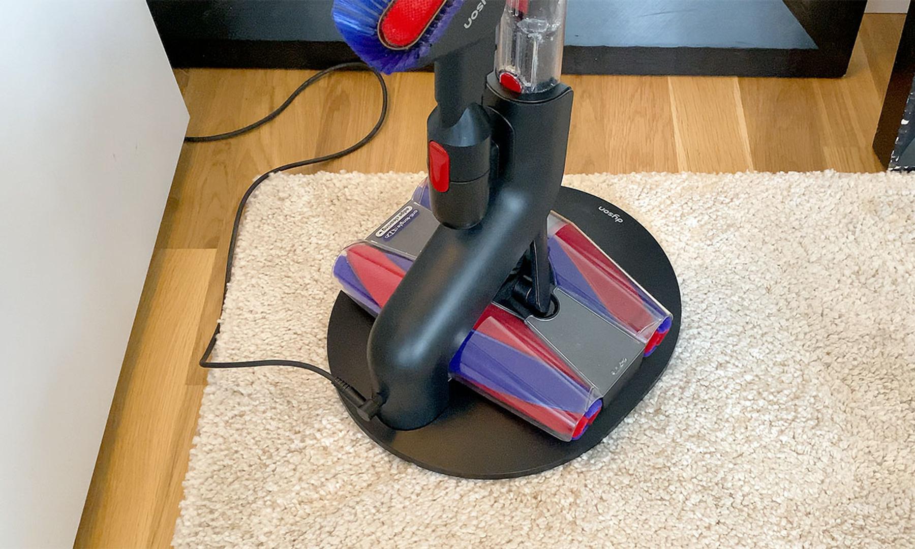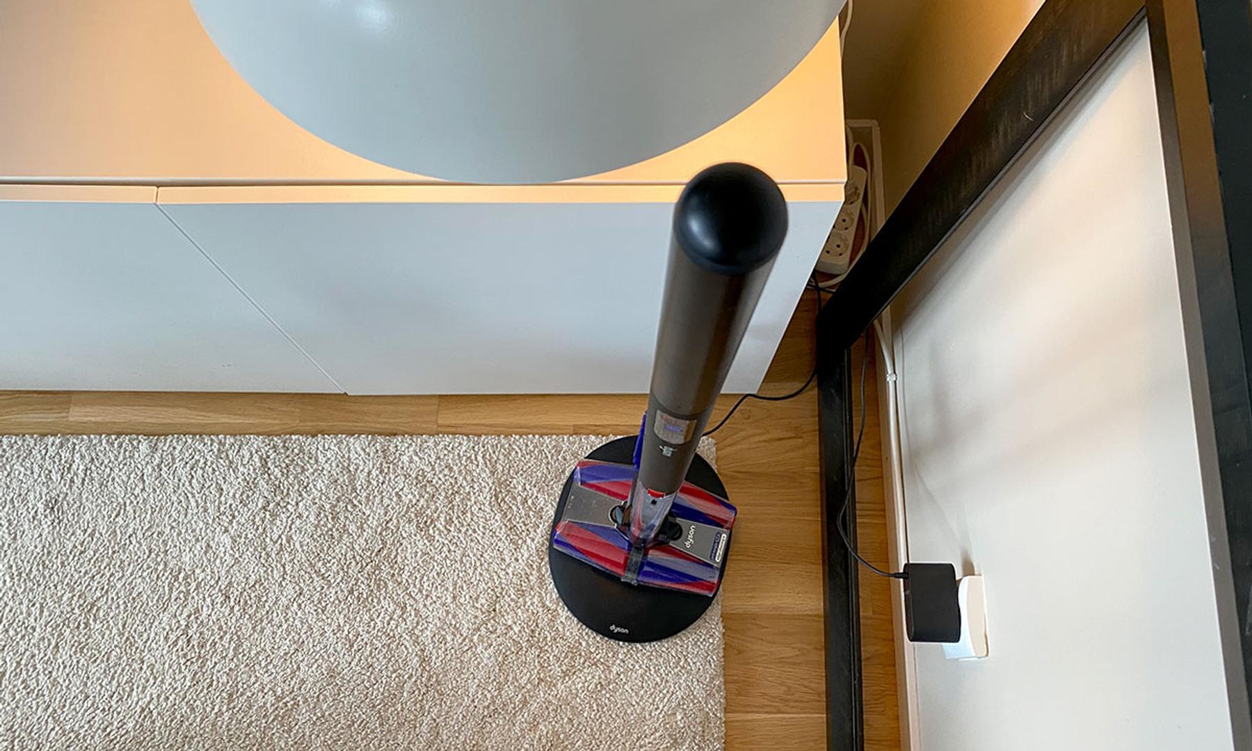Längst ned finns sedan möjlighet att montera antingen nämnda Fluffycones-tillbehör alternativt det medföljande kombinationsmunstycket för att kunna nå mer svåråtkomliga ytor. Med i förpackningen följer också en laddningskabel samt ett (tyvärr både plastigt och lättrepat) golvstativ med ett kombinerat magnet- och laddningsfäste för själva dammsugaren samt en hållare för det extra kombinationsmunstycket. Hur Dyson däremot missat att inkludera ett väggfäste förstår jag verkligen inte. För även om PencilVac står dugligt i golvfästet tar det upp en förskräcklig massa onödig plats. Framförallt för en dammsugare vars hela idé är att vara så nätt som möjligt.