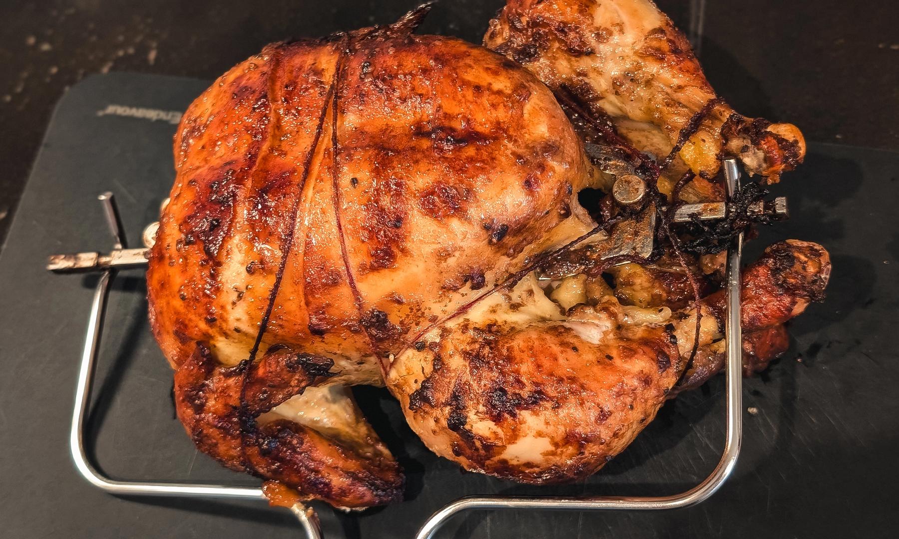 När funktionen är på roterar stången med allt du har satt på. Jag har testat helgrillad kyckling, gjort egen kebab och al pastor. Men kom ihåg att det inte får plats hur mycket som helst – tänk att måttet är en hel kyckling under 2 kg.