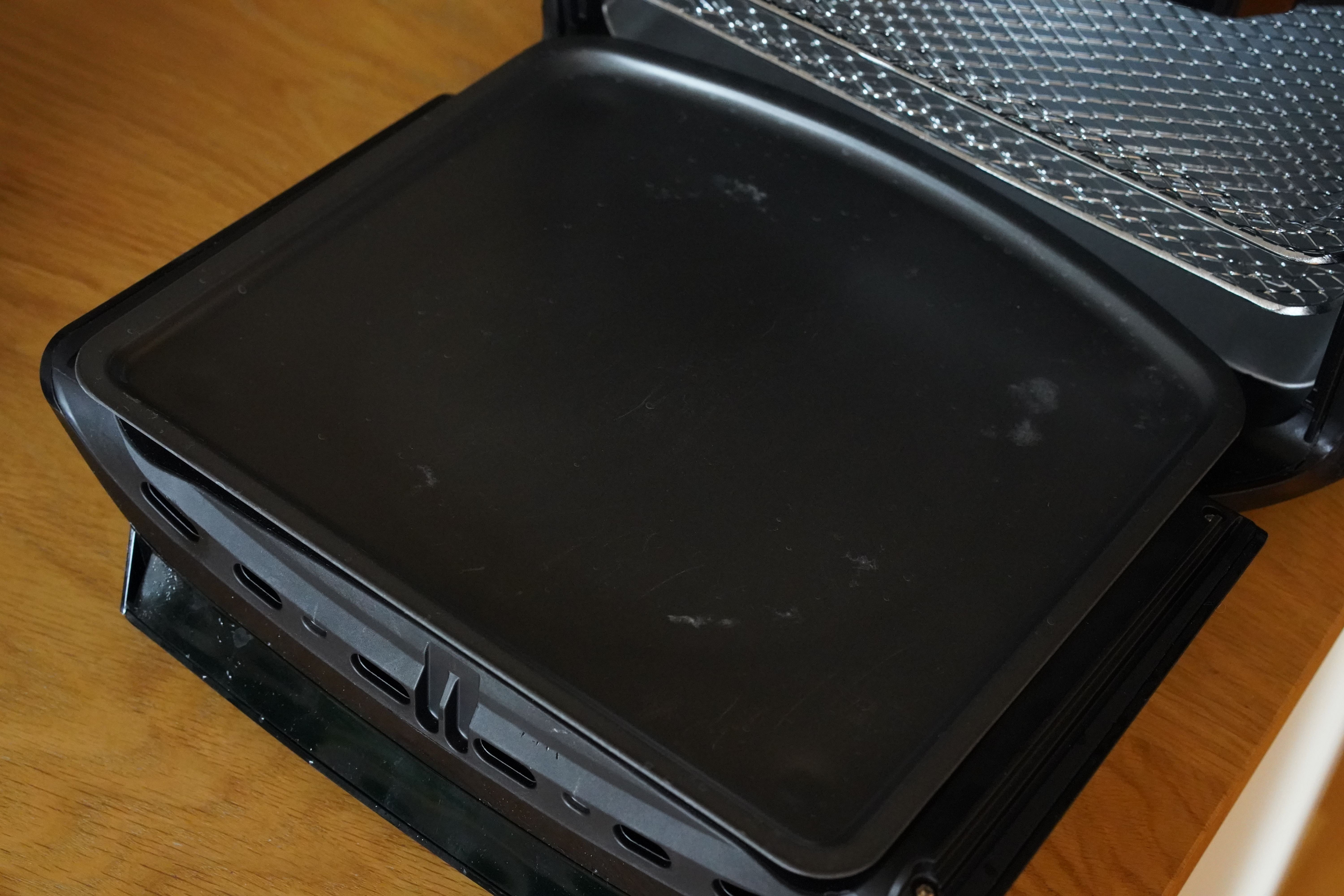 Personligen hade jag gärna sett en lösning med en slätare platta i stället, eftersom det är betydligt enklare att skölja av för hand, även om bieffekten är sämre prestanda. Som alltid gäller det också att undvika maskindiskmedel med slipmedel, för att bevara non-stick-ytan så länge som möjligt.