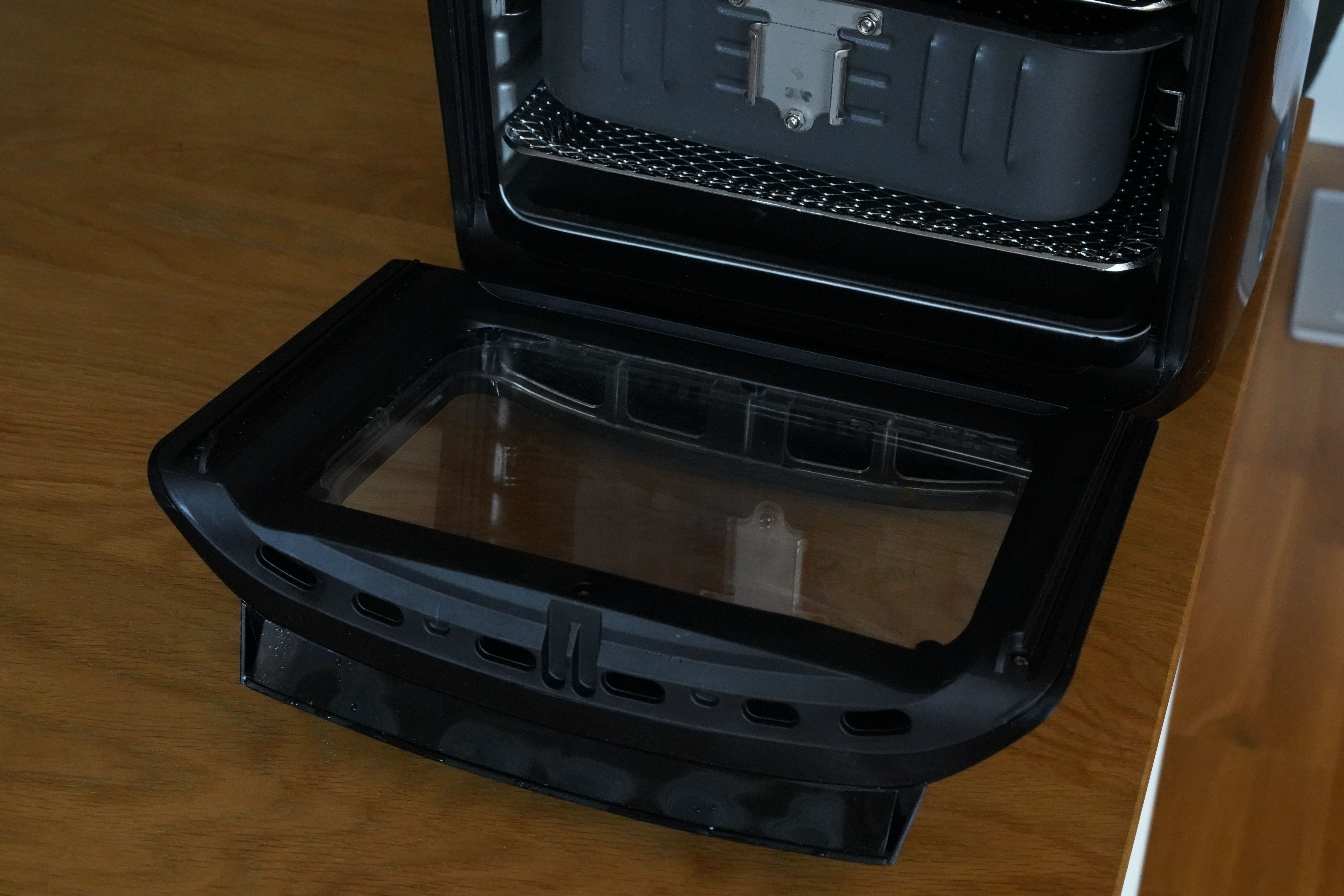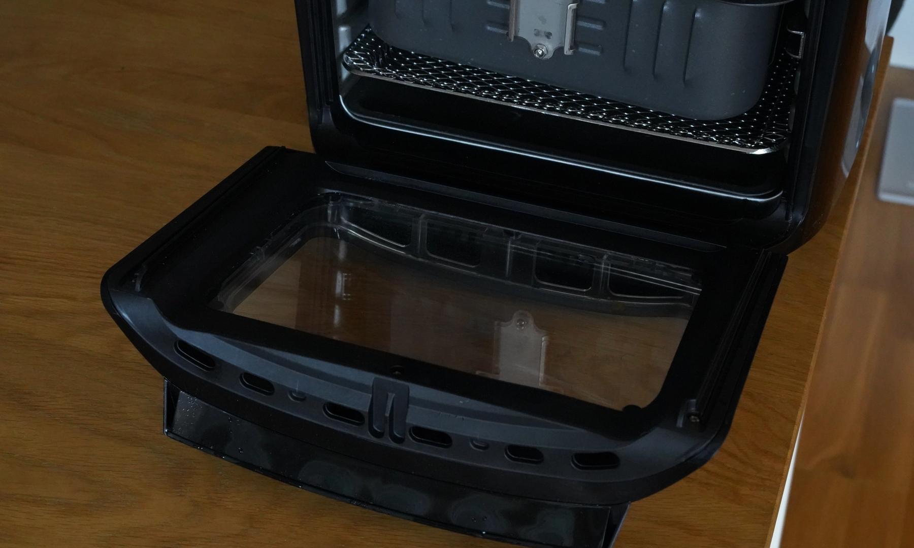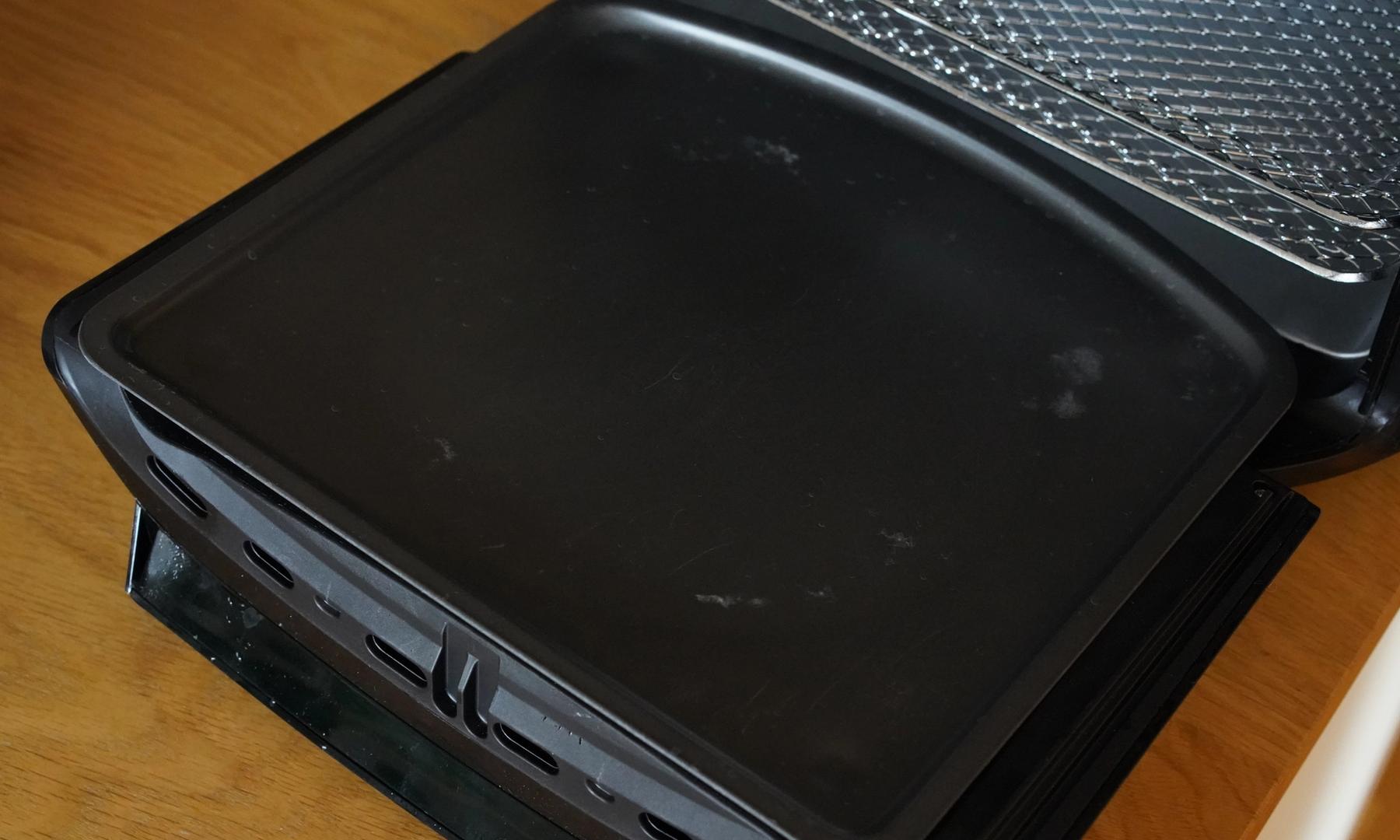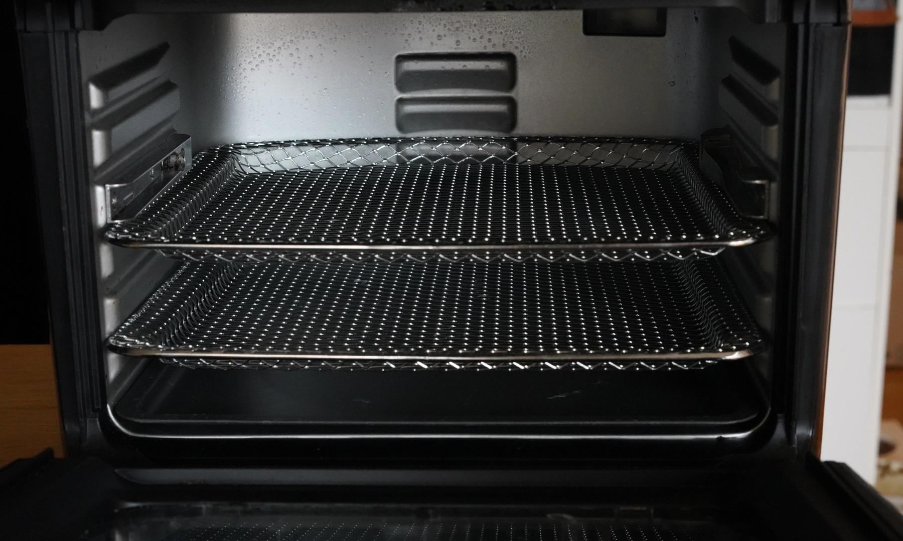 Den använder ett nätgaller ovanför en droppbricka. Detta hjälper till att separera fett från maten. Samtidigt är det inte en helt optimal lösning för luftflödet eftersom det skapas visst motstånd underifrån. För bästa resultat behöver man ibland vända på råvarorna under tillagningen. Å andra sidan är rengöringen smidig, då konstruktionen med droppbrickan gör det enkelt att hålla rent utan större ansträngning!