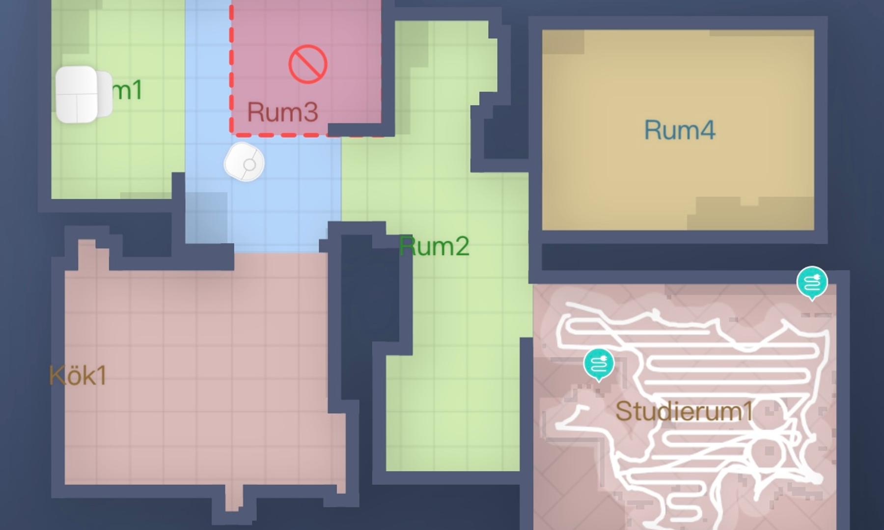 I appen ritas ditt hem upp och delas in i rum efter en första inspektionsvända av dammsugaren. Du kan sedan justera rummen, till exempel avgränsa, slå ihop eller ändra namn, och sätta upp no-go-zoner. Du väljer golvtyp i de olika rummen och markerar var det ligger mattor.