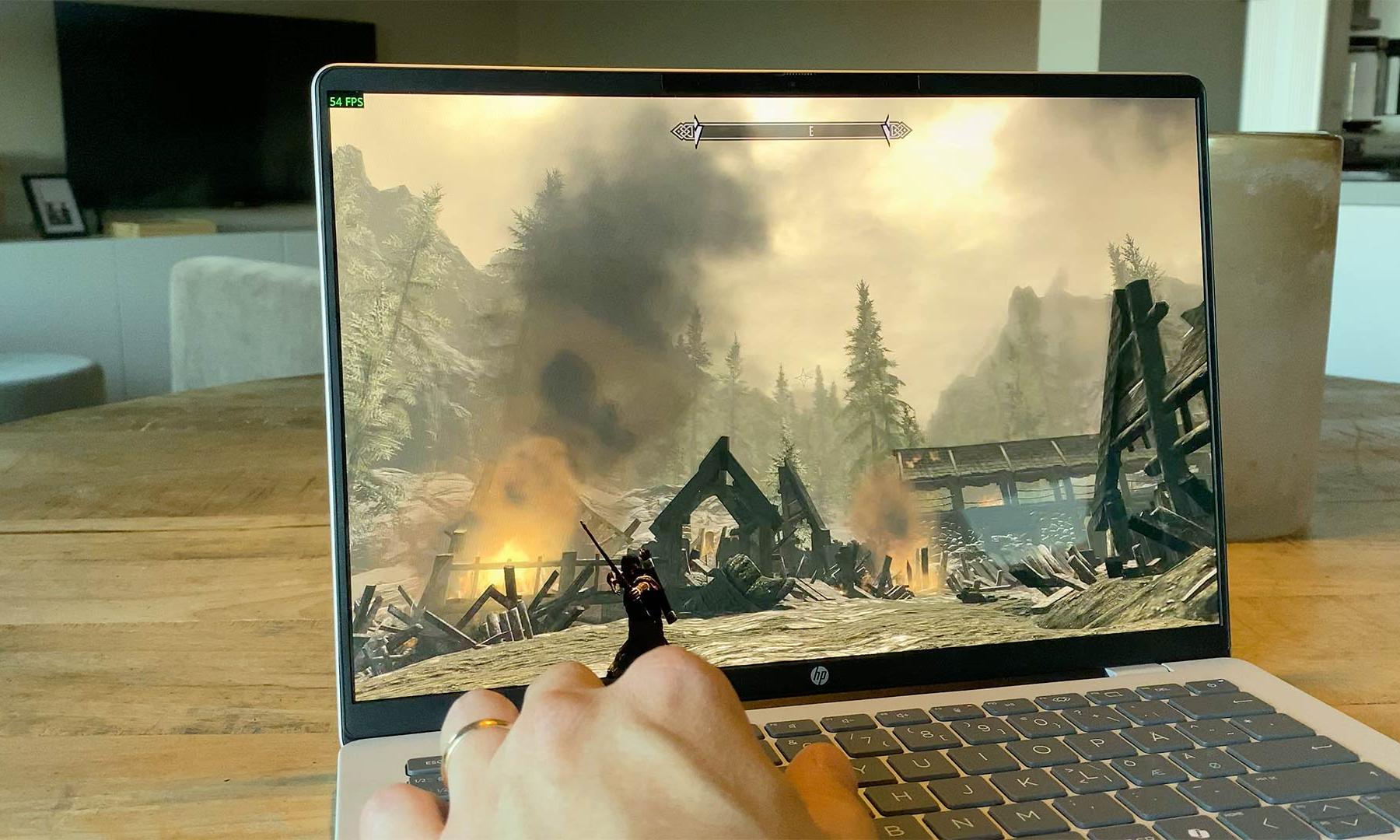 Det går även att spela lite tyngre spel såsom Skyrim och GTA V. Här börjar datorn däremot uppvisa lite underliga fel med t.ex. menyer som inte går att klicka på (t.ex. var det stundtals omöjligt att spara i Skyrim) och små grafikmissar här och där. En del spel, såsom Red Dead Redemption 2, startar heller inte alls. Så nej, köp inte den här datorn om det primära användningsområdet är spel. Men vill du dyka in i någon äldre titel då och då är resultatet ändå förhållandevis dugligt. Har du däremot ett specifikt spel du gärna spenderar tid med kan det även här vara bra att dubbelkolla kompatibiliteten med just Snapdragon X Plus-processorn innan du slår till.