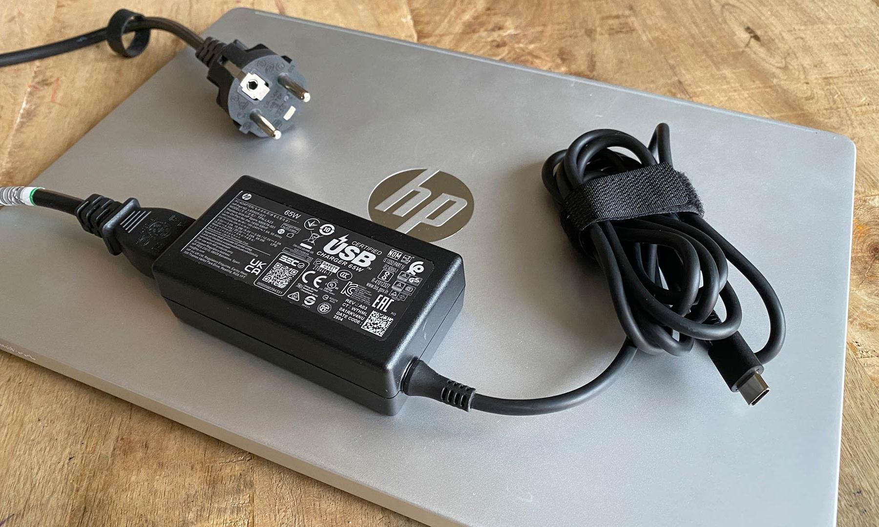 Laddning sker över USB-C via den medföljande 65W-adaptern som visserligen är av duglig storlek. Däremot förstår jag inte riktigt varför inga PC-tillverkare tar efter Apple och producerar laddare som ansluts direkt till väggkontakten och inte med en extra kabel. Men, men.