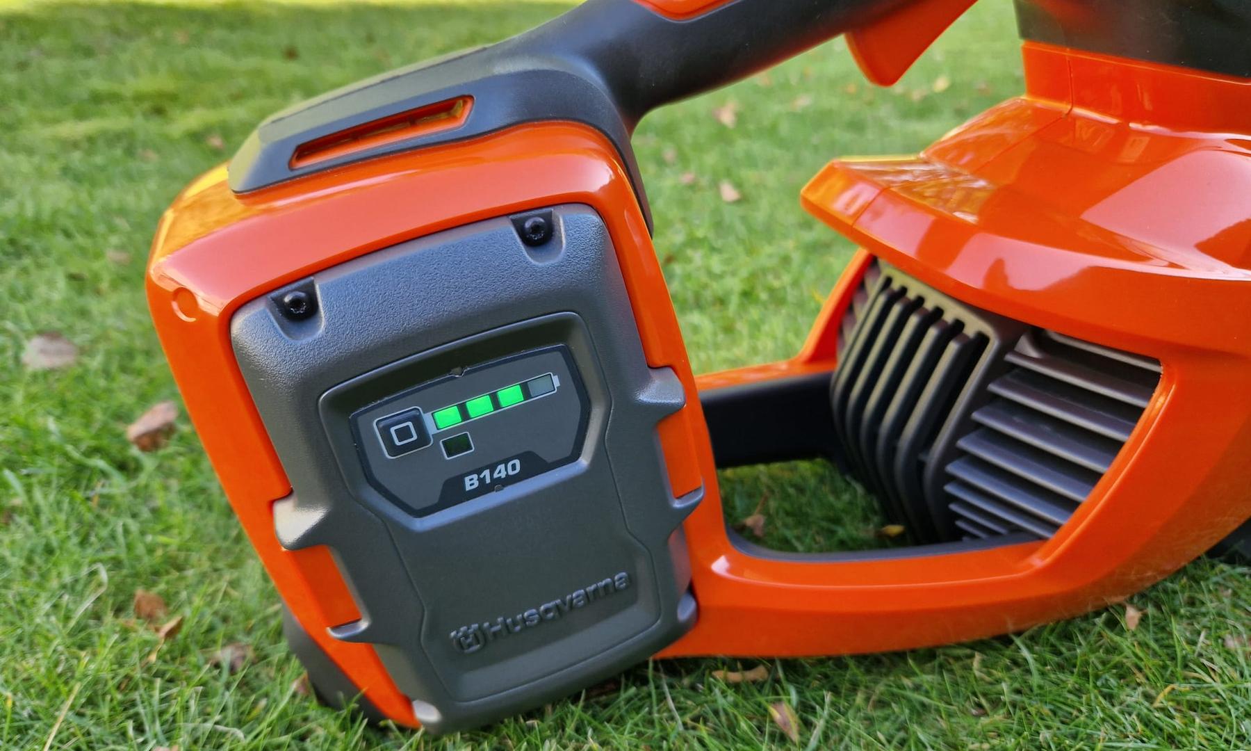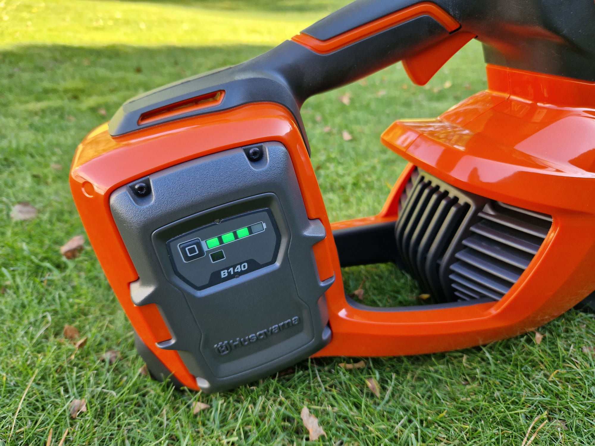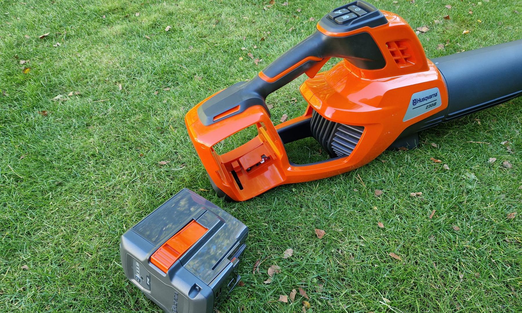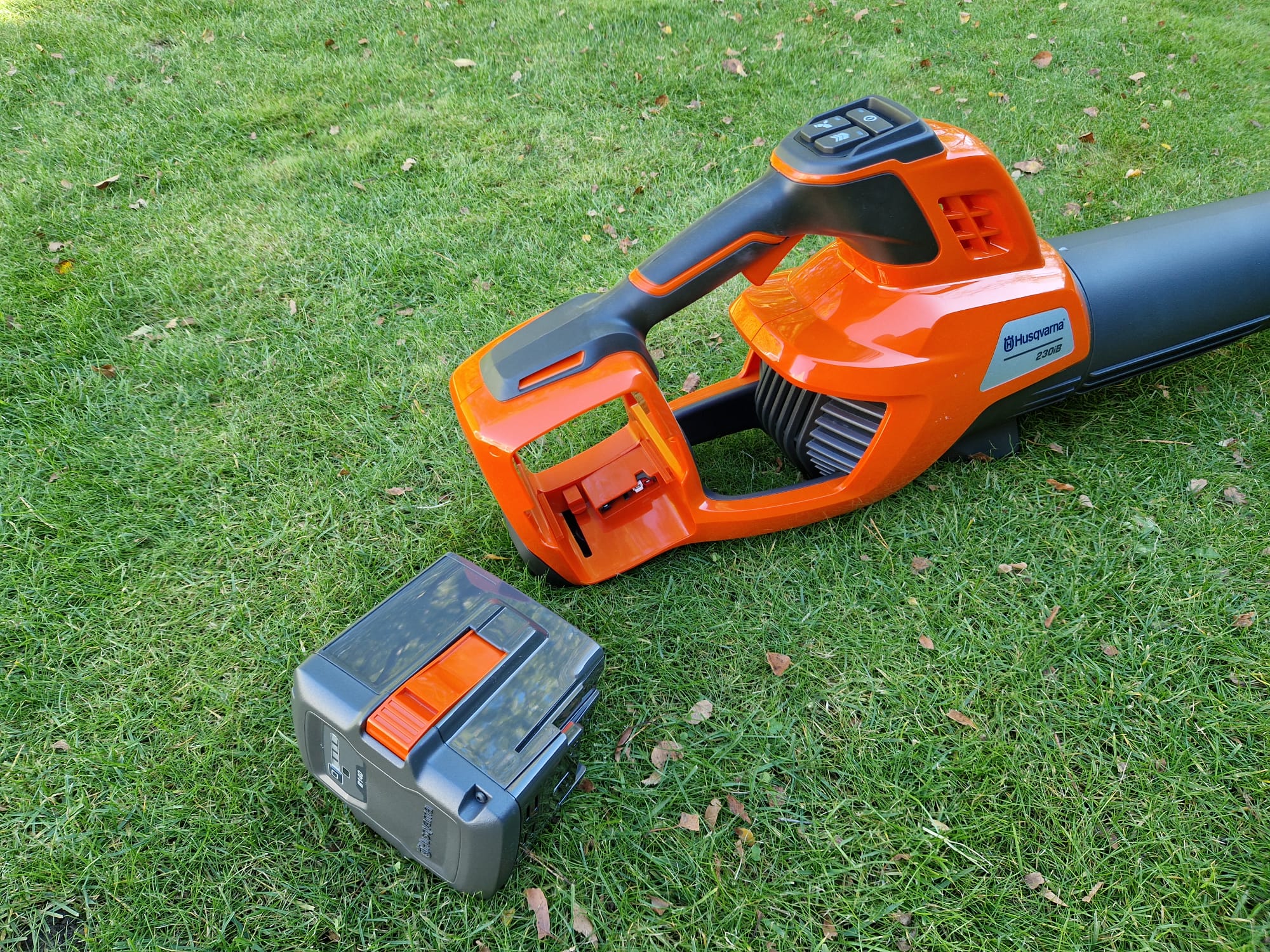 Batteriet på denna lövblås är placerat horisontellt för att undvika att damm, smuts och fukt tränger in i batterifacket och orsakar problem. En annan sak som Husqvarna har tänkt på med den här placeringen är att vikten och balansen fördelas mer jämt över lövblåsen, vilket gör den ergonomiskt lättare att använda.
