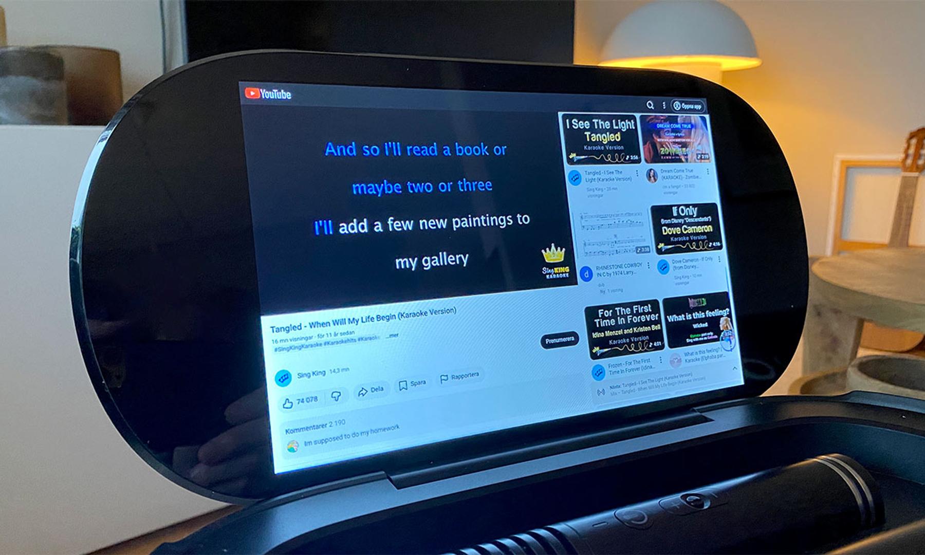 Lite tråkigt här är dock att båda apparna verkar vara tagna rätt av från Android-världen. Vilket bidrar till ett ganska pilligt upplägg som i kombination med den lite trötta hårdvaran lämnar en medeltrevlig upplevelse när det kommer till snabbhet. Allt fungerar, men det är stundtals lite väl hackigt. Här hade troligen och framförallt en mer dedikerad YouTube-app gjort sig utmärkt med tanke på den otroligt stora mängd karaoke-videor som faktiskt finns tillgängliga via tjänsten.