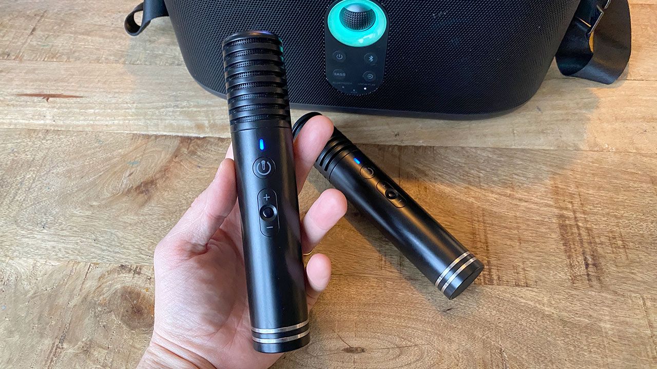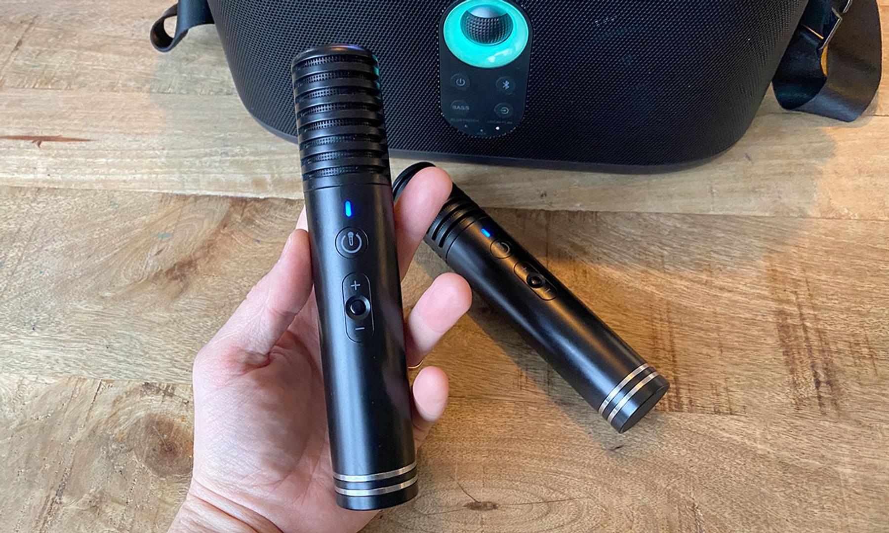 Nu är jag långt ifrån någon sångfågel, men kvalitetsmässigt tycker jag ändå mikrofonerna fungerar utmärkt för den tänkta användningen. Upptagningsområdet är ganska snävt framåtriktat, men påverkar å andra sidan störande rundgångseffekter väldigt positivt. Ljudet av kombinationen högtalare och mikrofoner är annars både klart och förhållandevis fylligt. Det går också lätt och snabbt att justera volymen på respektive mikrofon.