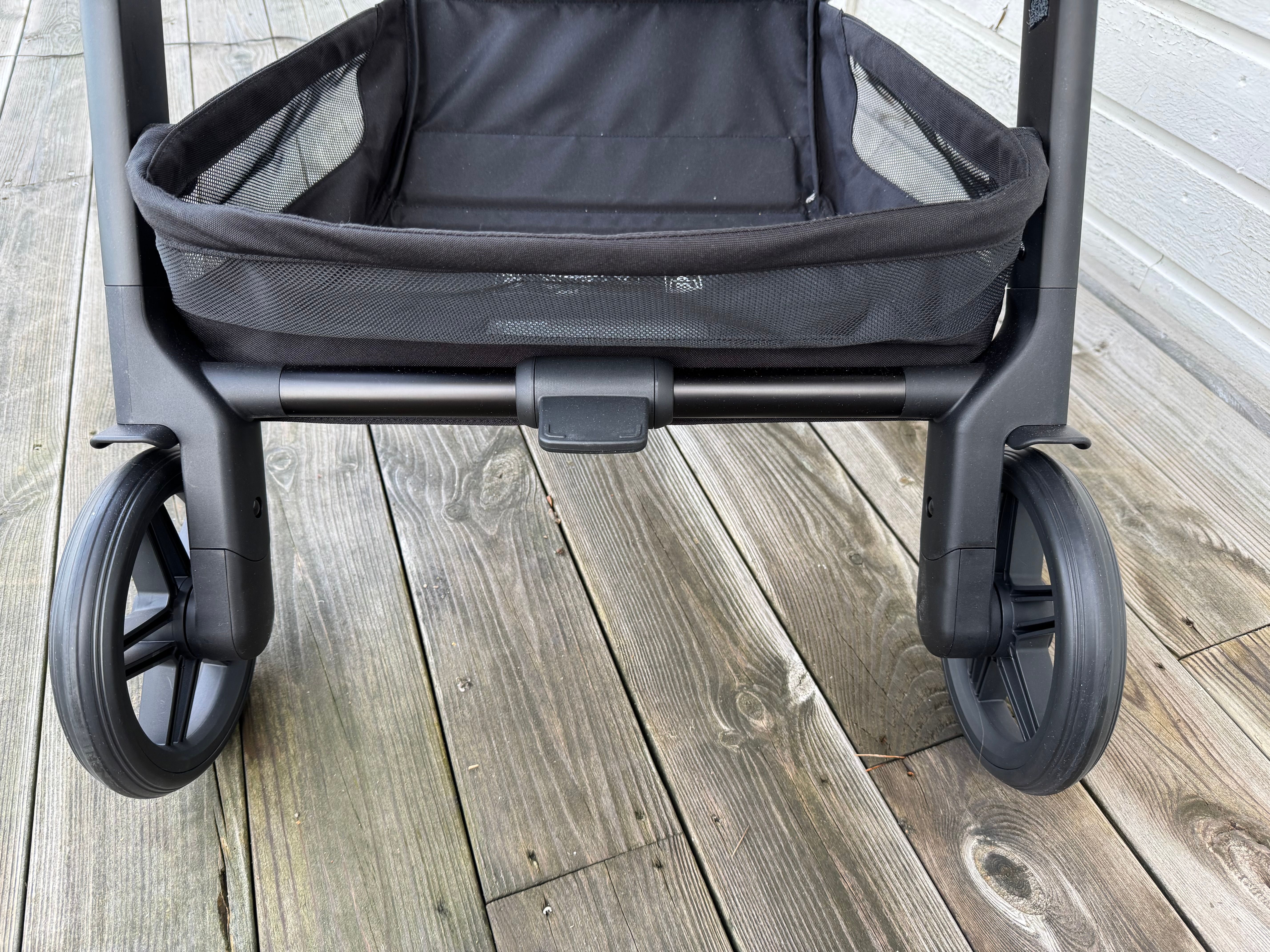 Joolz Hub 2 har ett bra och lätt chassi. Varukorgen har en bra design och en maxvikt på 10 kg. Längst bak går det att trycka ner bakkappan för att lasta i och ur exempelvis skötväska, matvaror med mera. En riktigt bra detalj som underlättar.