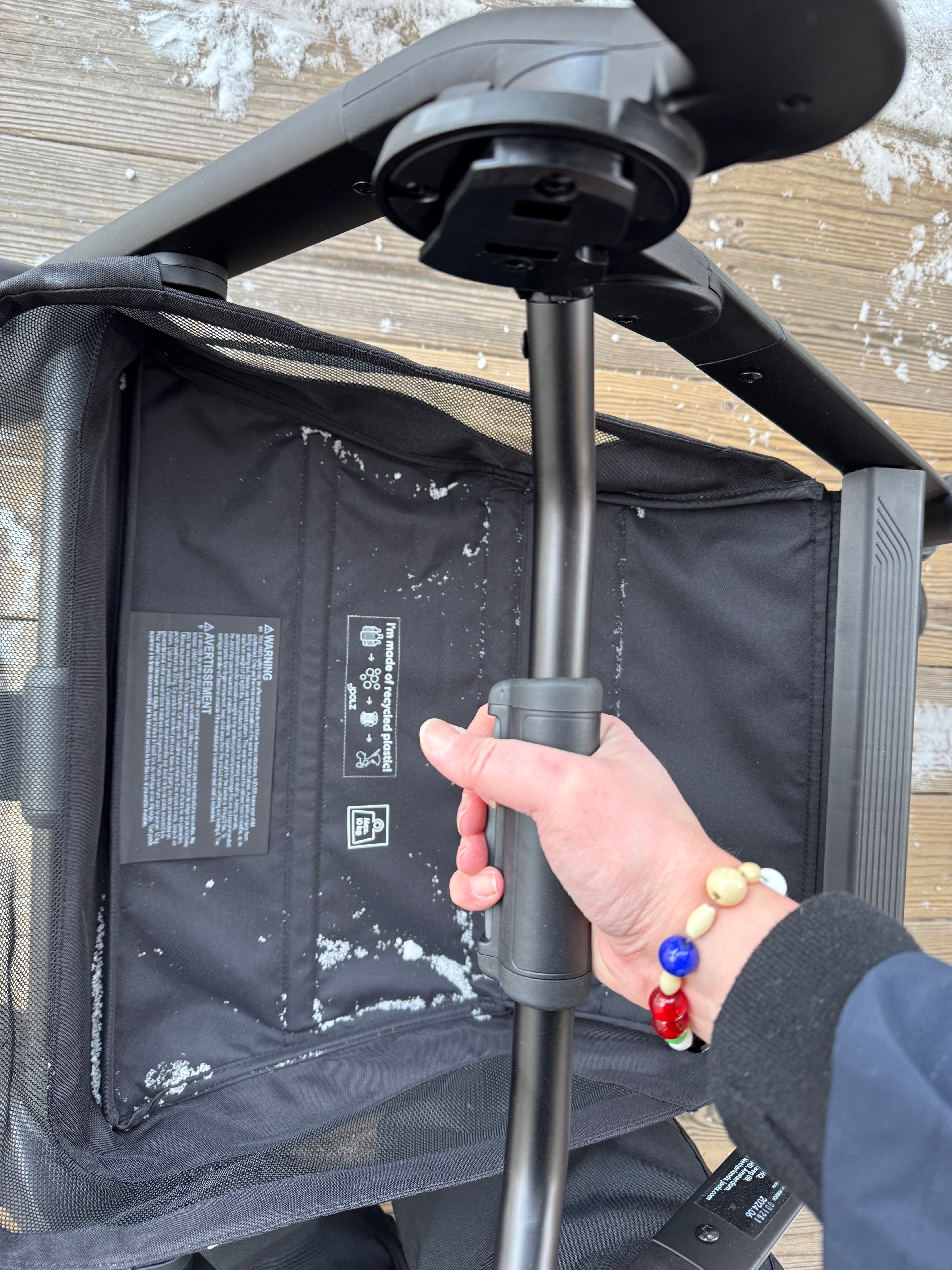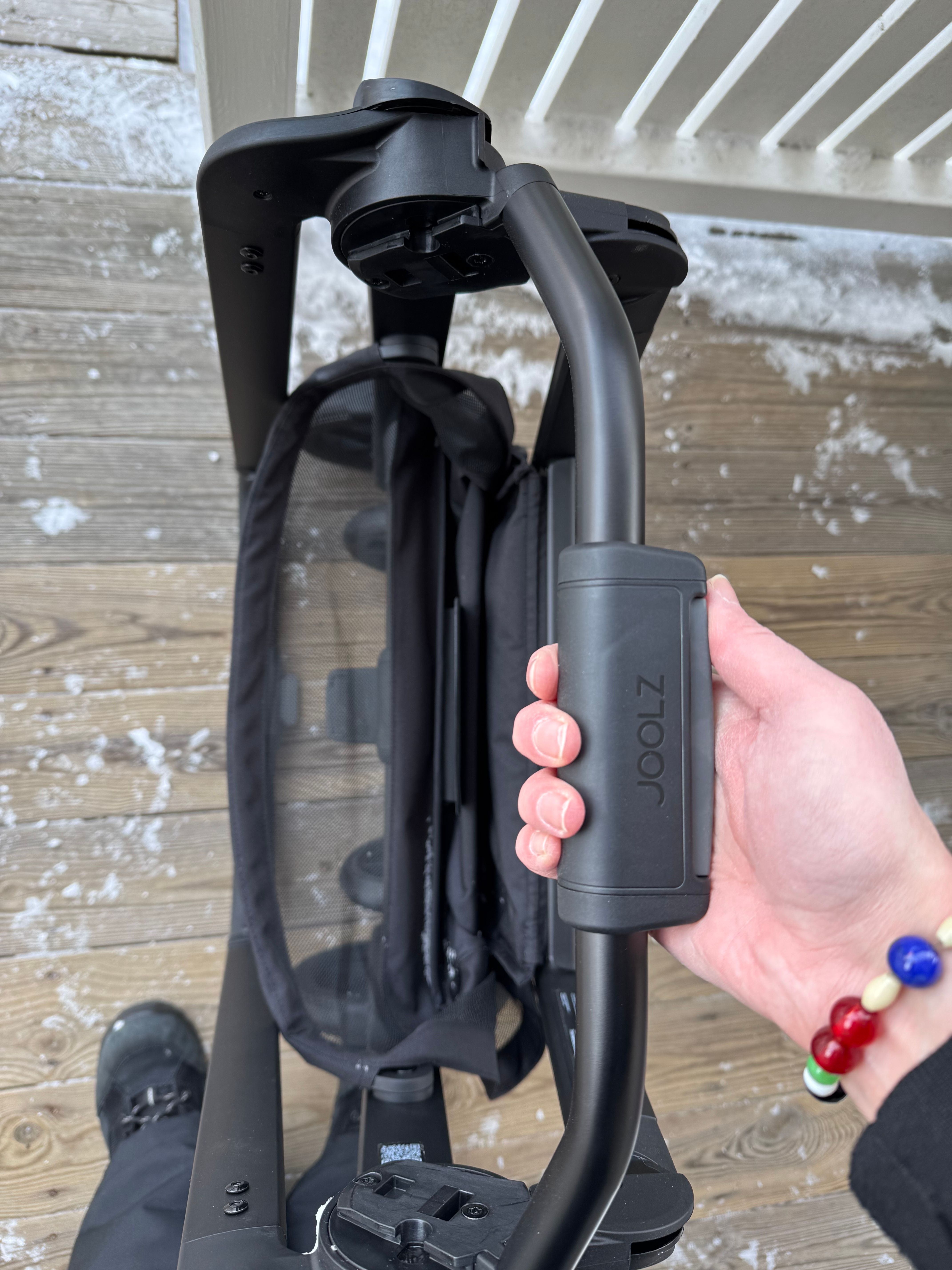 Att fälla ihop Joolz Hub 2 är så nära en fröjd man kan komma! Vagnen kan fällas ihop med sittdelen på, både bakåtvänt och framåtvänt. Detta är ett stort plus! Vagnen blir dessutom väldigt kompakt när den är ihopfälld.