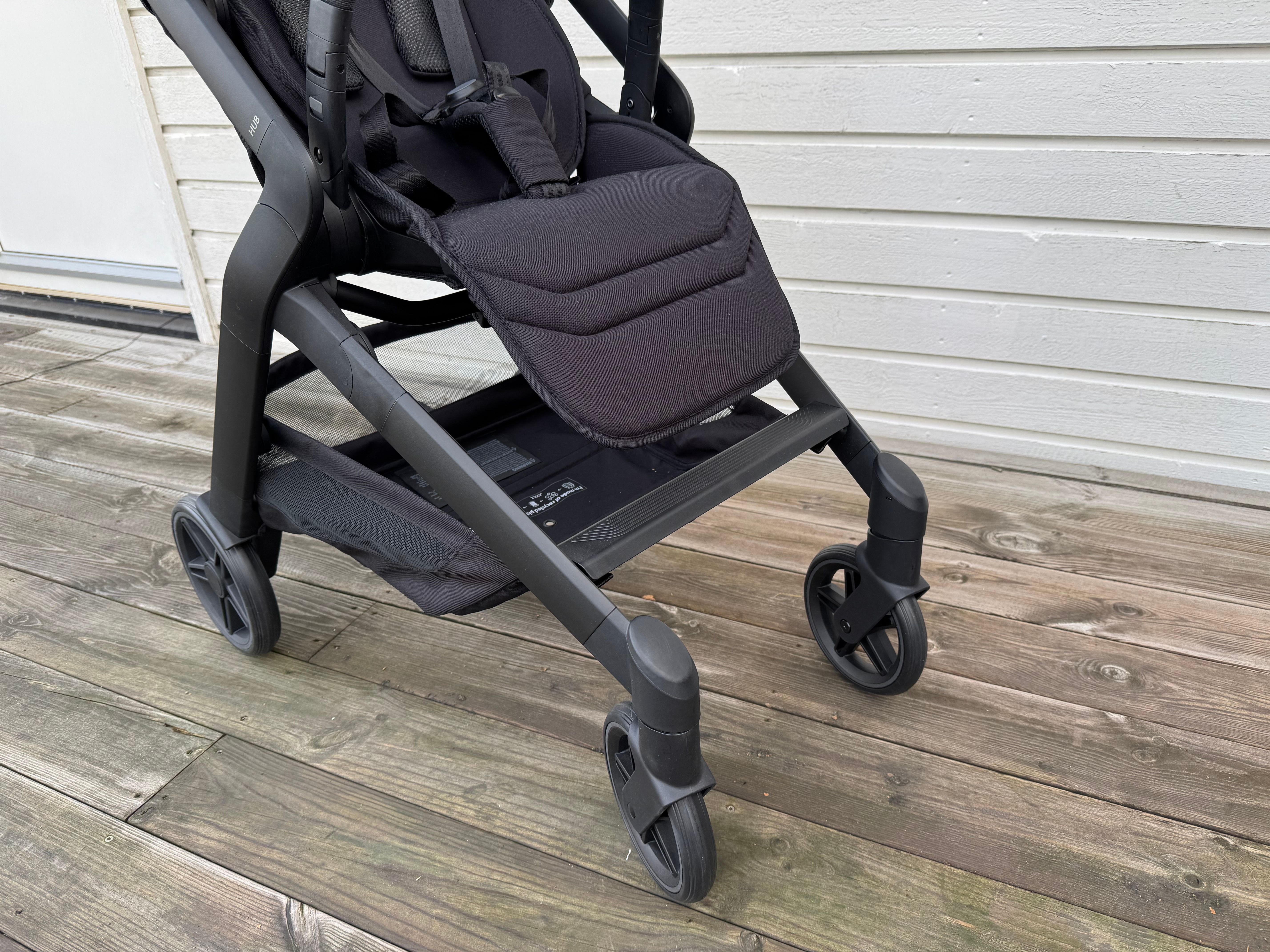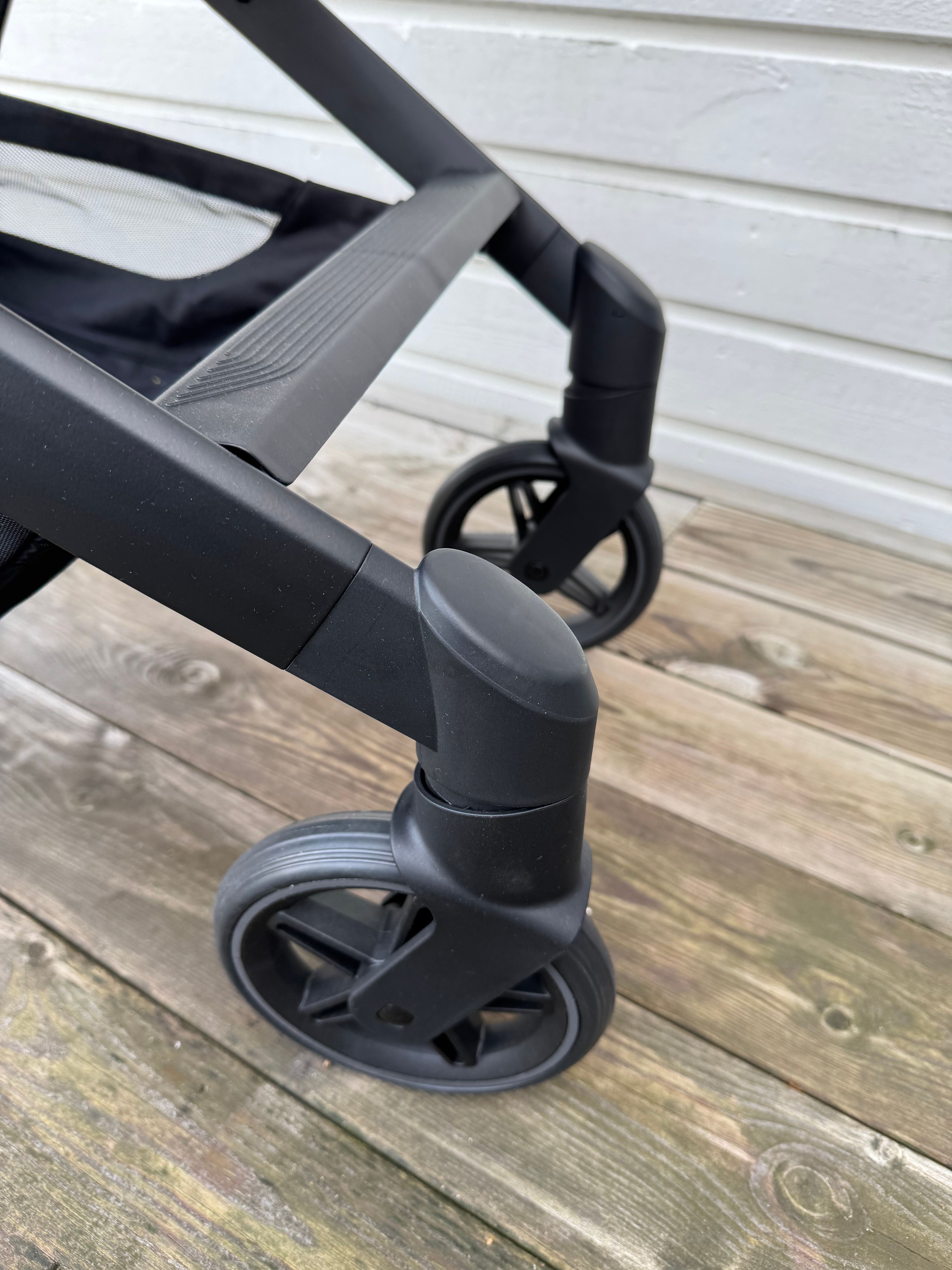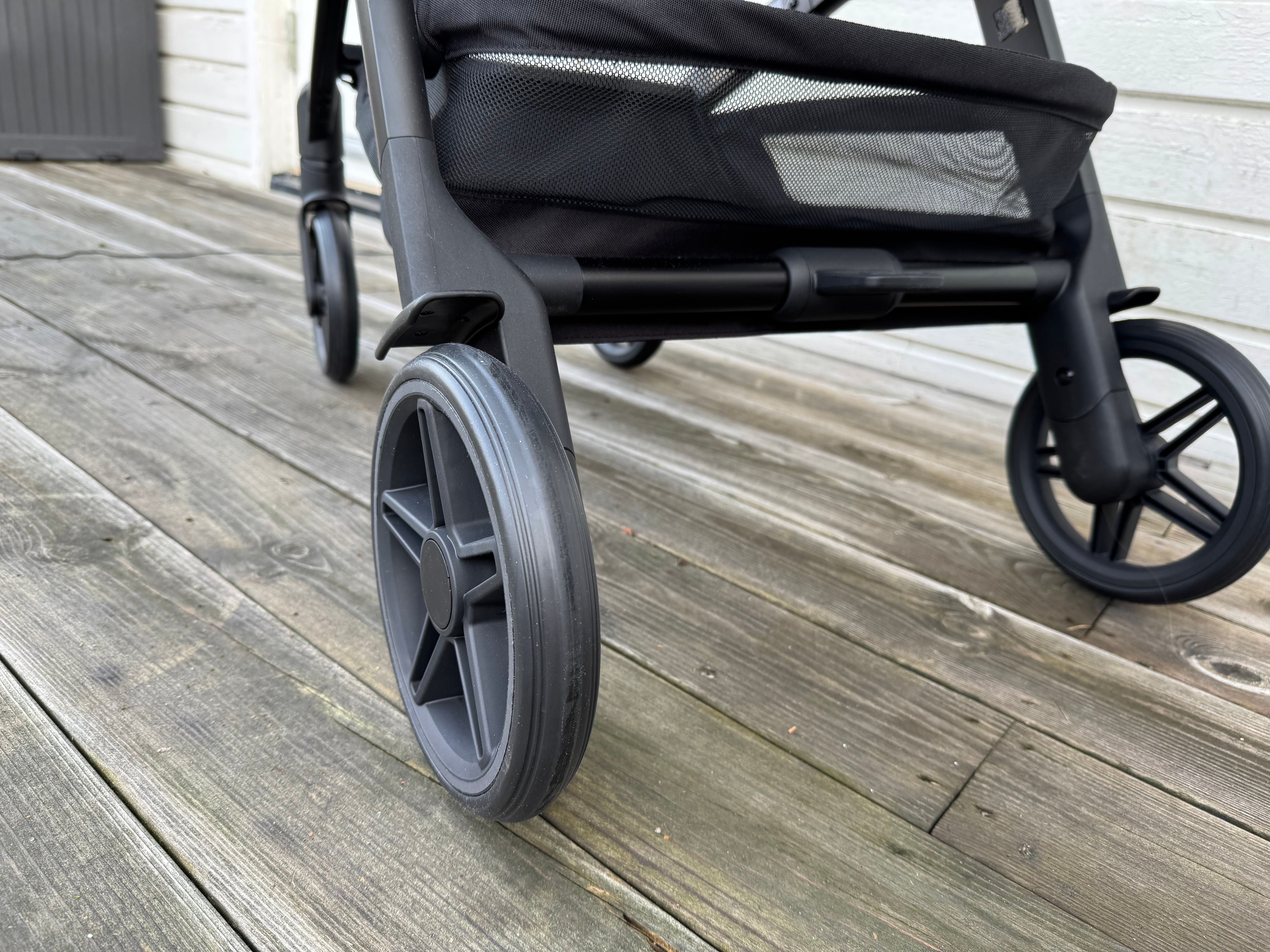 Det är svårt att hitta något som Joolz Hub 2 är mindre bra på. Men en sak jag saknar är möjligheten att låsa framhjulen, de är svängbara hela tiden. Jag hade önskat att kunna låsa dem i vissa miljöer, till exempel på skogsstigar eller i snöväder, där det är lättare att ta sig fram med låsta framhjul.