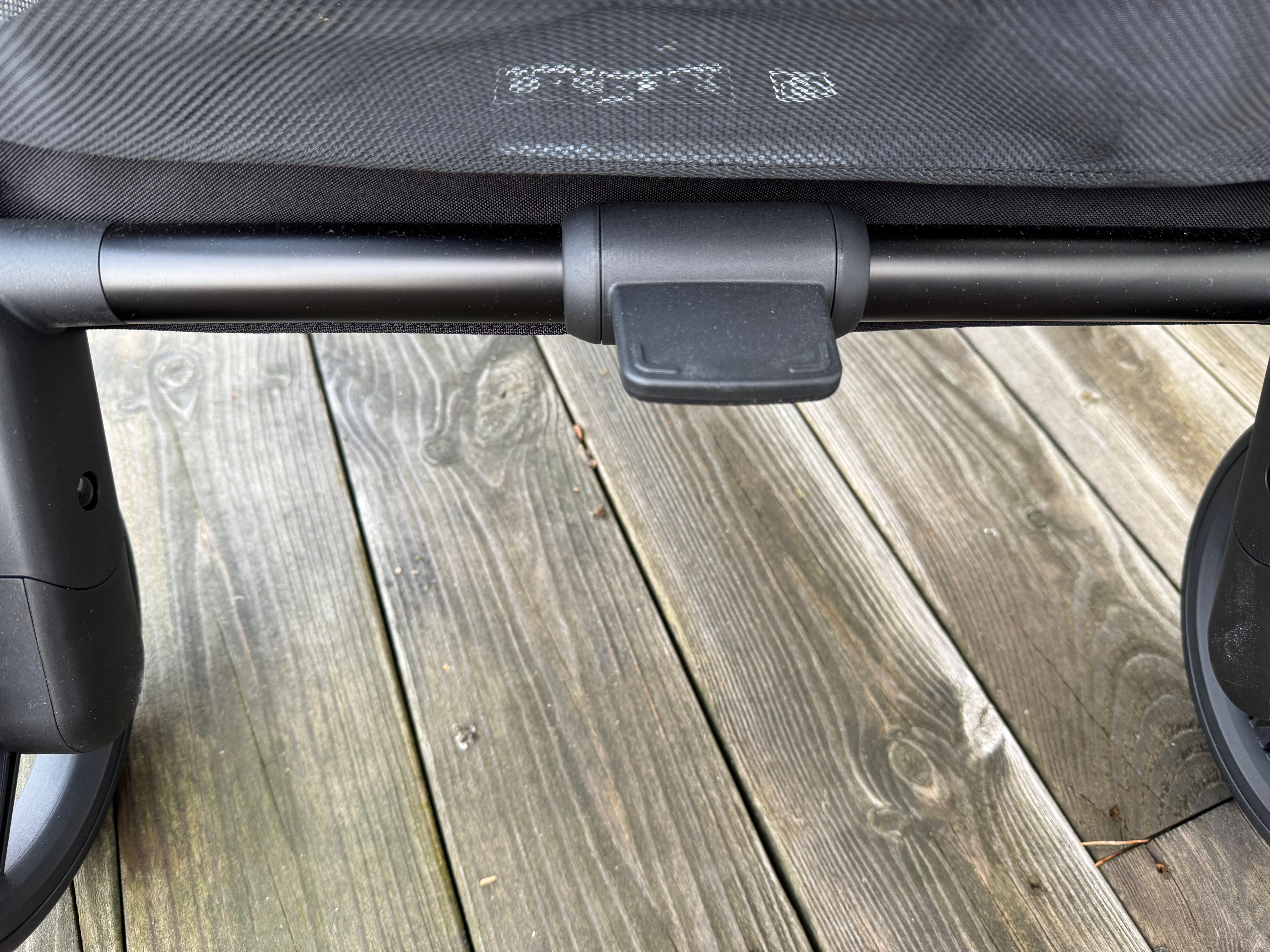 Joolz Hub 2 har en fotbroms som är centrerad mitt bak på chassit. Man bromsar och lossar enkelt med hjälp av foten.