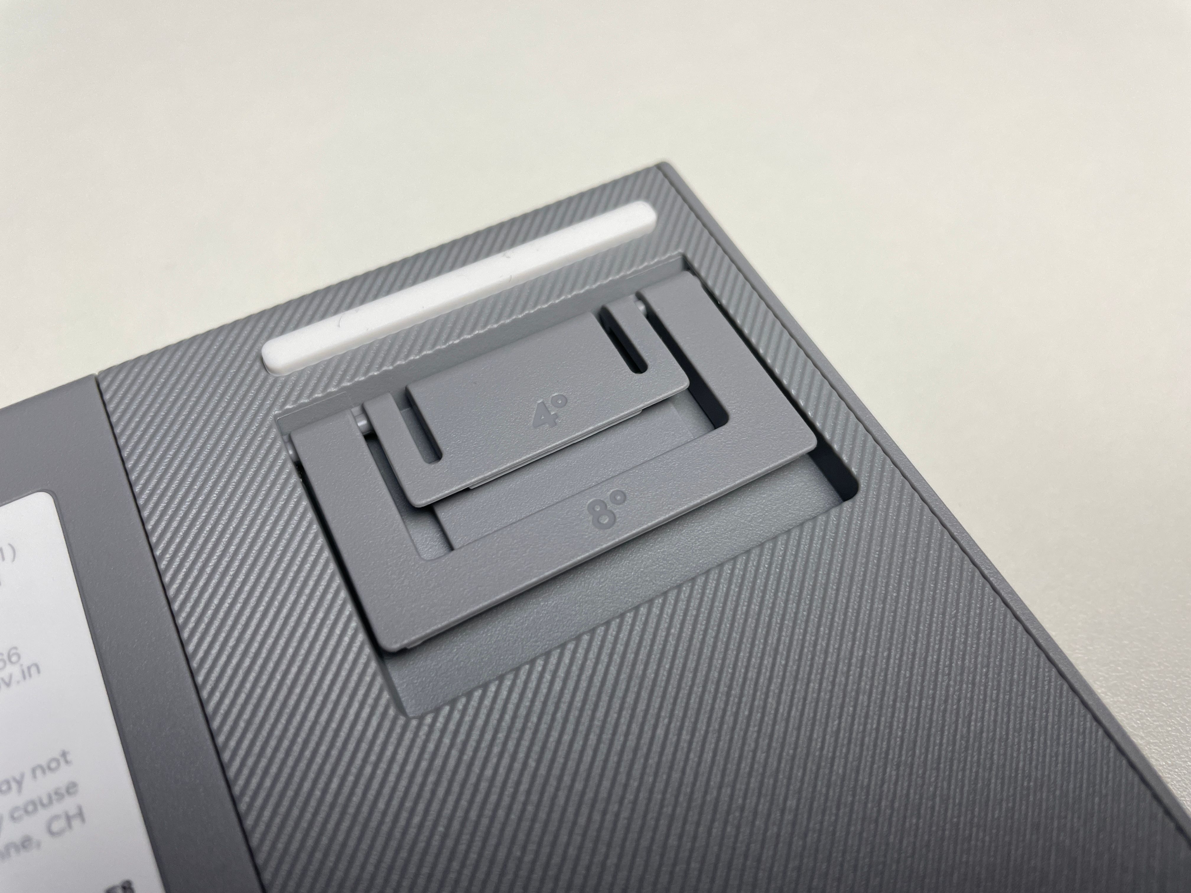 Fötterna som kan fällas ut i 4 och 8 grader känns ganska "standard" för Logitechs tangentbord, medan den gråa kanten ger ett lite billigare intryck.