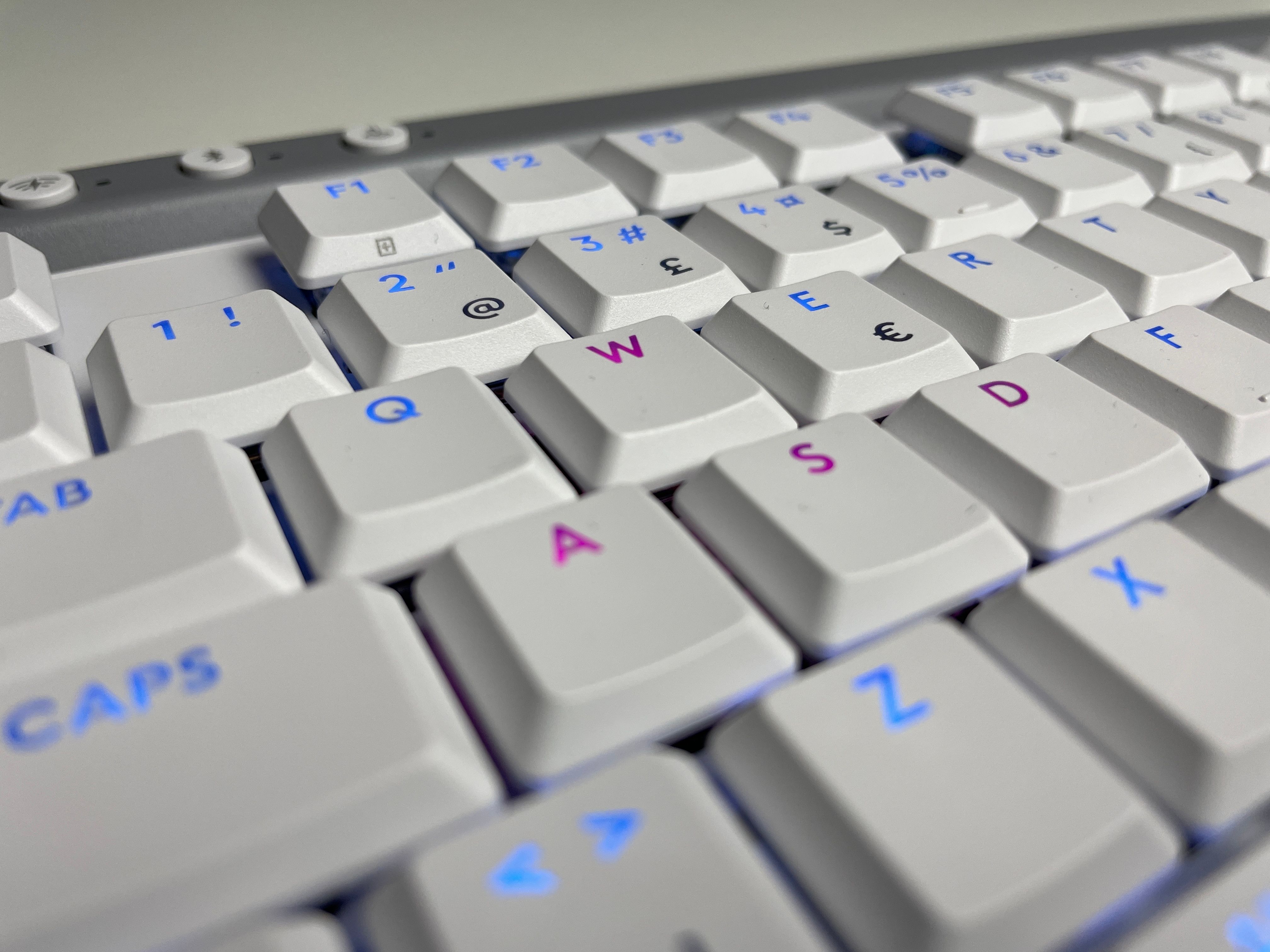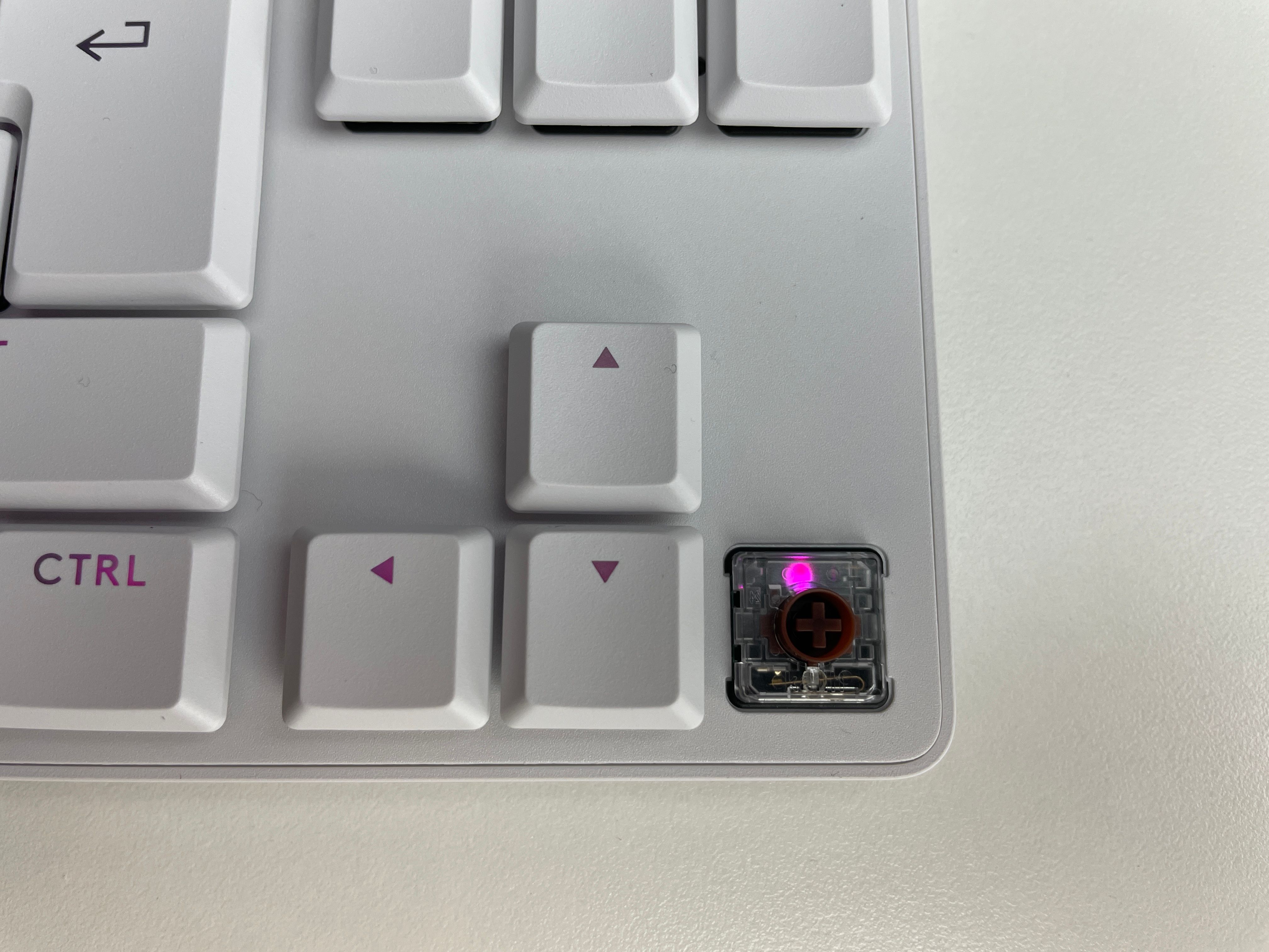 Den låga profilen innebär också en kortare aktiveringspunkt, endast 1,3 mm. Även det totala avståndet att trycka ned tangenten till botten är lägre än vanligt (3,2 mm).