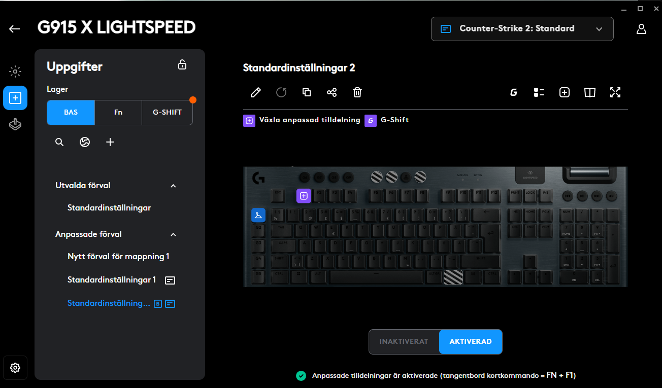 Du kan dessutom ställa in att denna mappning endast är aktiv när du spelar, som i CS2 till exempel. Jag har valt att spela in ett makro som köper vapen när jag trycker på G1. När spelet stängs av kan knappen återgå till att vara en genväg för att ta skärmbild igen.