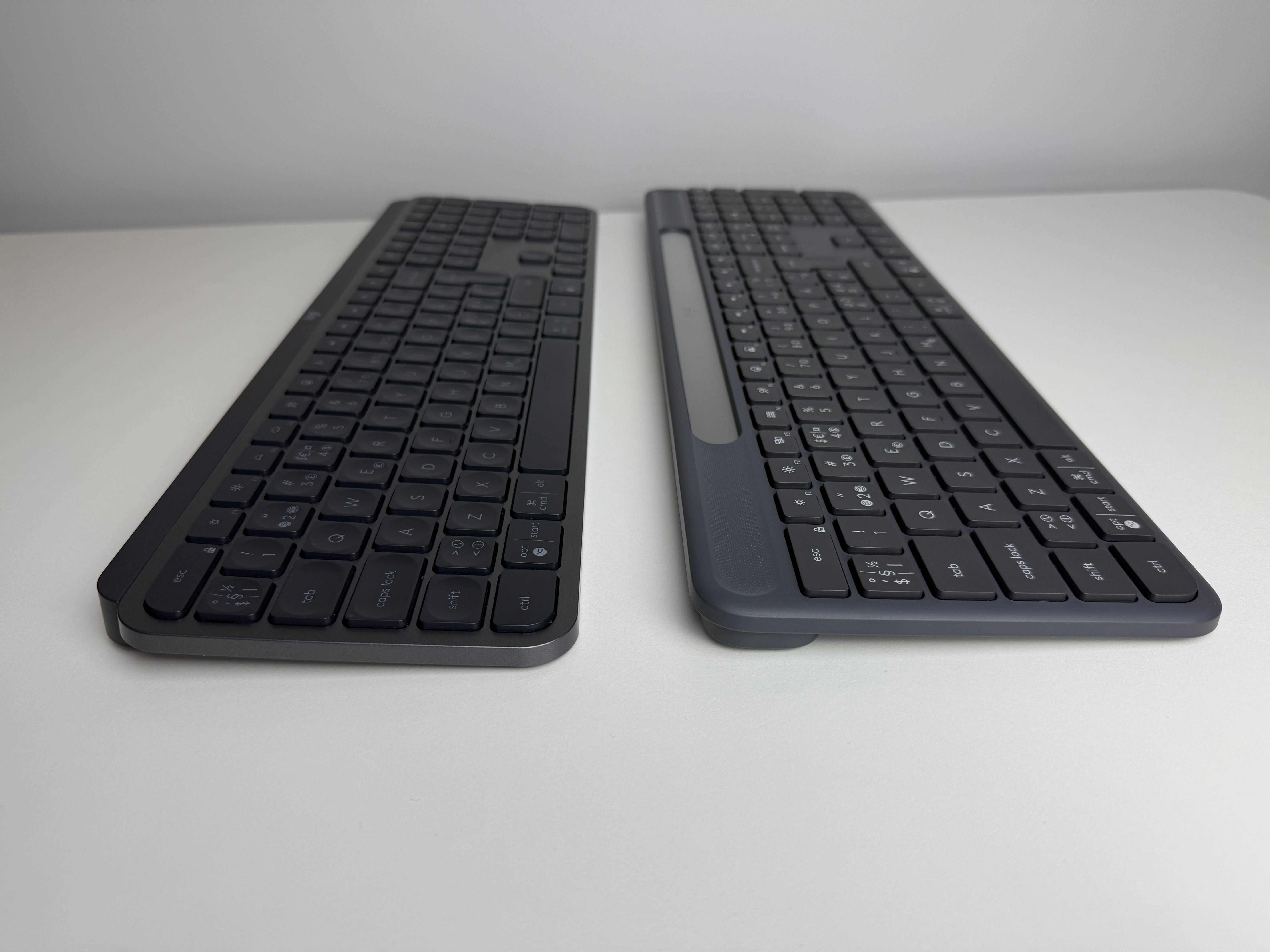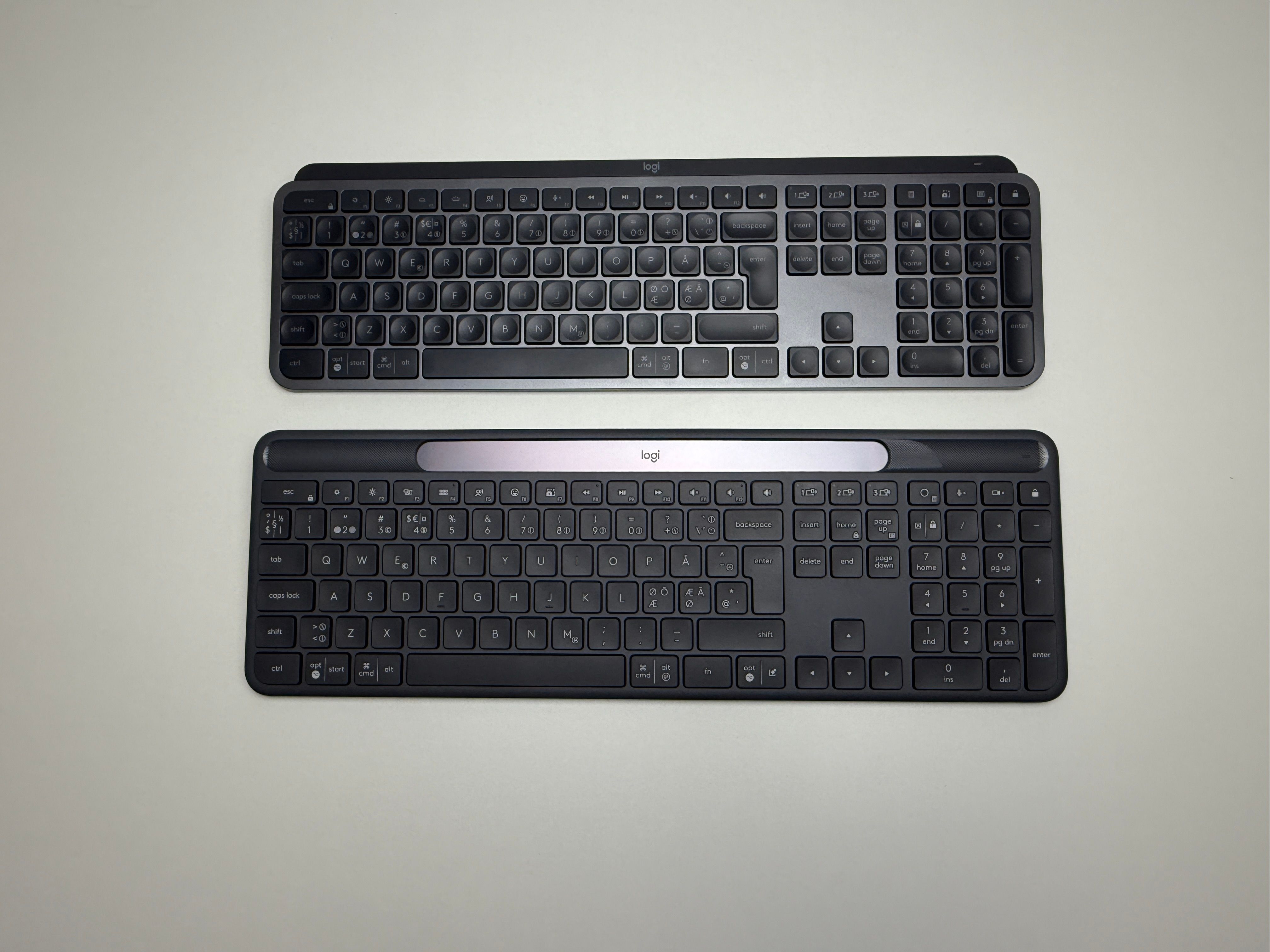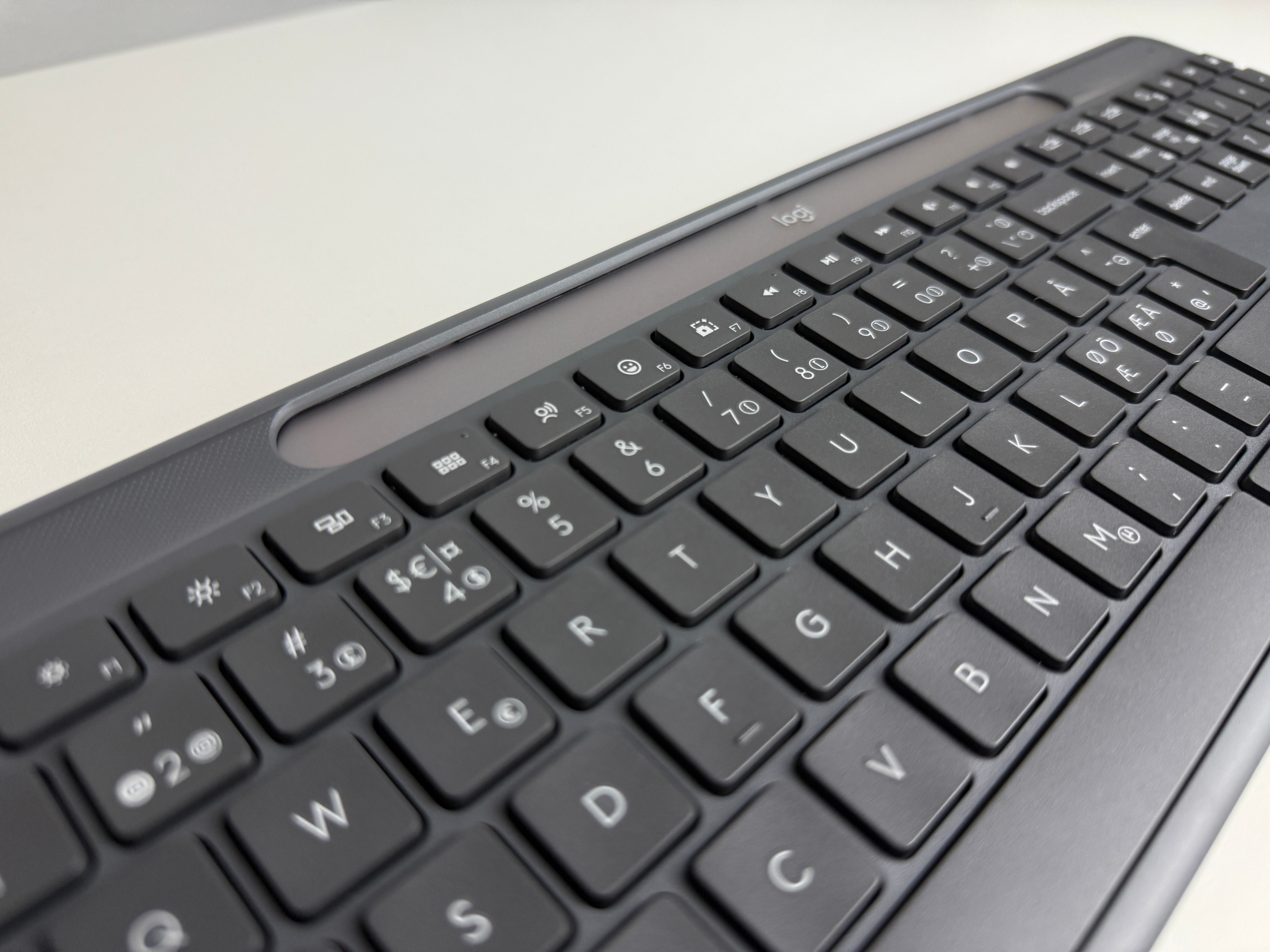Tangenterna känns lite budget i jämförelse med MX Keys S, den tanken har jag svårt att släppa. Det är olika serier och Slim Solar+ har andra fördelar, så det är lite upp till vad man själv prioriterar. Känslan av själva tangentbordet är ändå lik MX Keys S, men jag föredrar ändå MX Keys S lite mer på grund av dess konkava/gropiga tangenter. Samtidigt har jag inga som helst problem att skriva på Slim Solar+. Det går smidigt och jag skriver sällan fel från start, kanske för att jag redan är van vid mitt MX Keys.