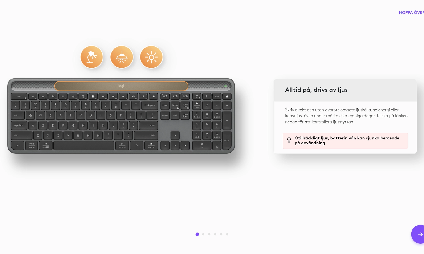 Logitechs lösning med laddning från sol- och artificiellt ljus är spännande, men det är svårt att säga under en kortare testperiod huruvida lösningen kommer vara så problemfri som det är tänkt. Det finns inget alternativt sätt att ladda tangentbordet vilket gör att vi helt lär förlita oss på att tillräckligt med ljus absorberas av den lilla remsan ovanför F-knapparna.