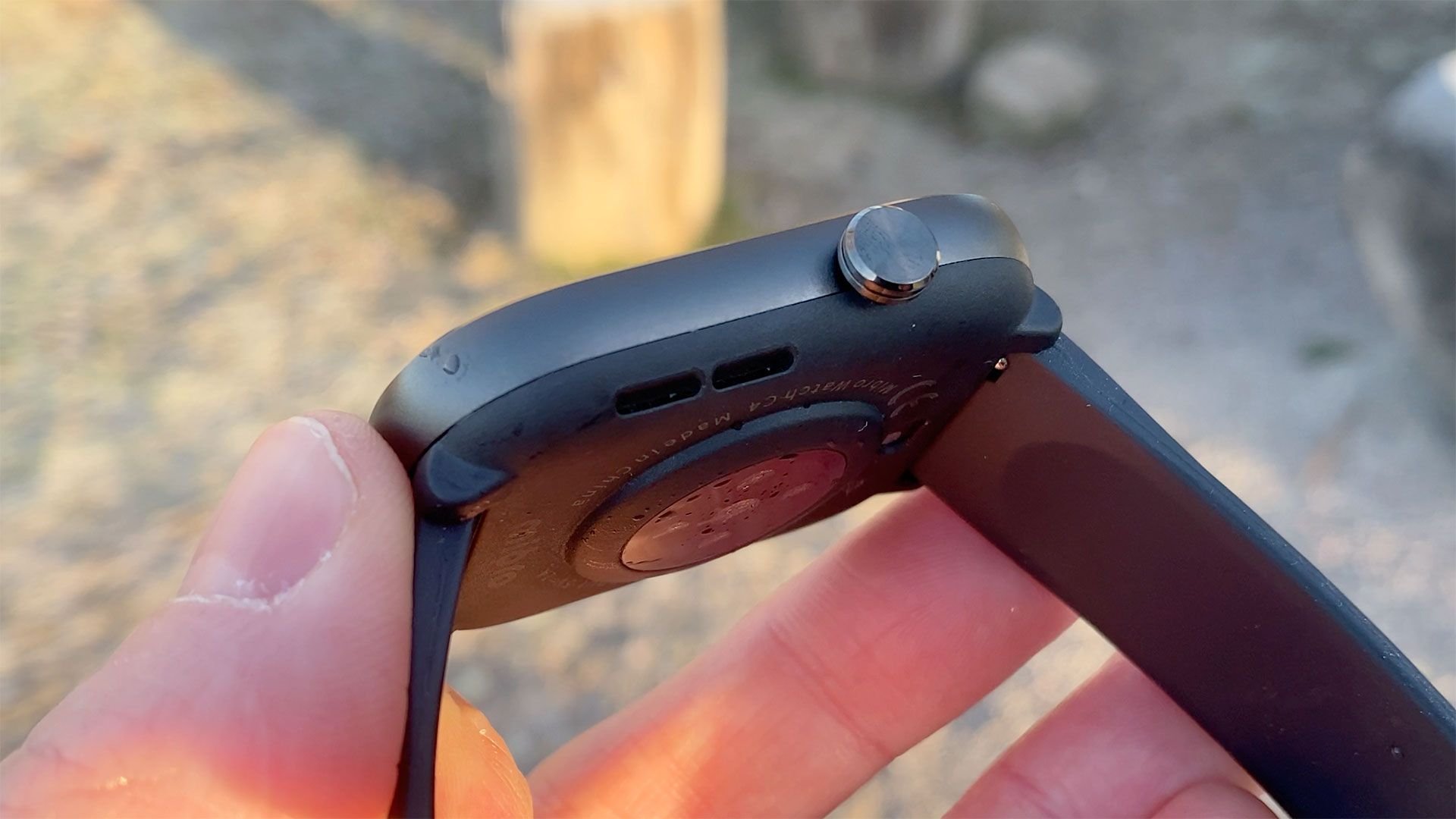 Materialmässigt är det plast av olika varianter så långt ögat når. Men både boetten och det medföljande silikonarmbandet känns ändå ganska gedigna. Det enda jag har att anmärka på är att den lilla kontrollknappen på sidan ger ifrån sig ett lågt, osammanhängande skrapljud när man snurrar på den. Det ska även tilläggas att snurrfunktionen inte har ett dugg med att kontrollera klockan att göra, utan knappen går bara att snurra på. Nåja.