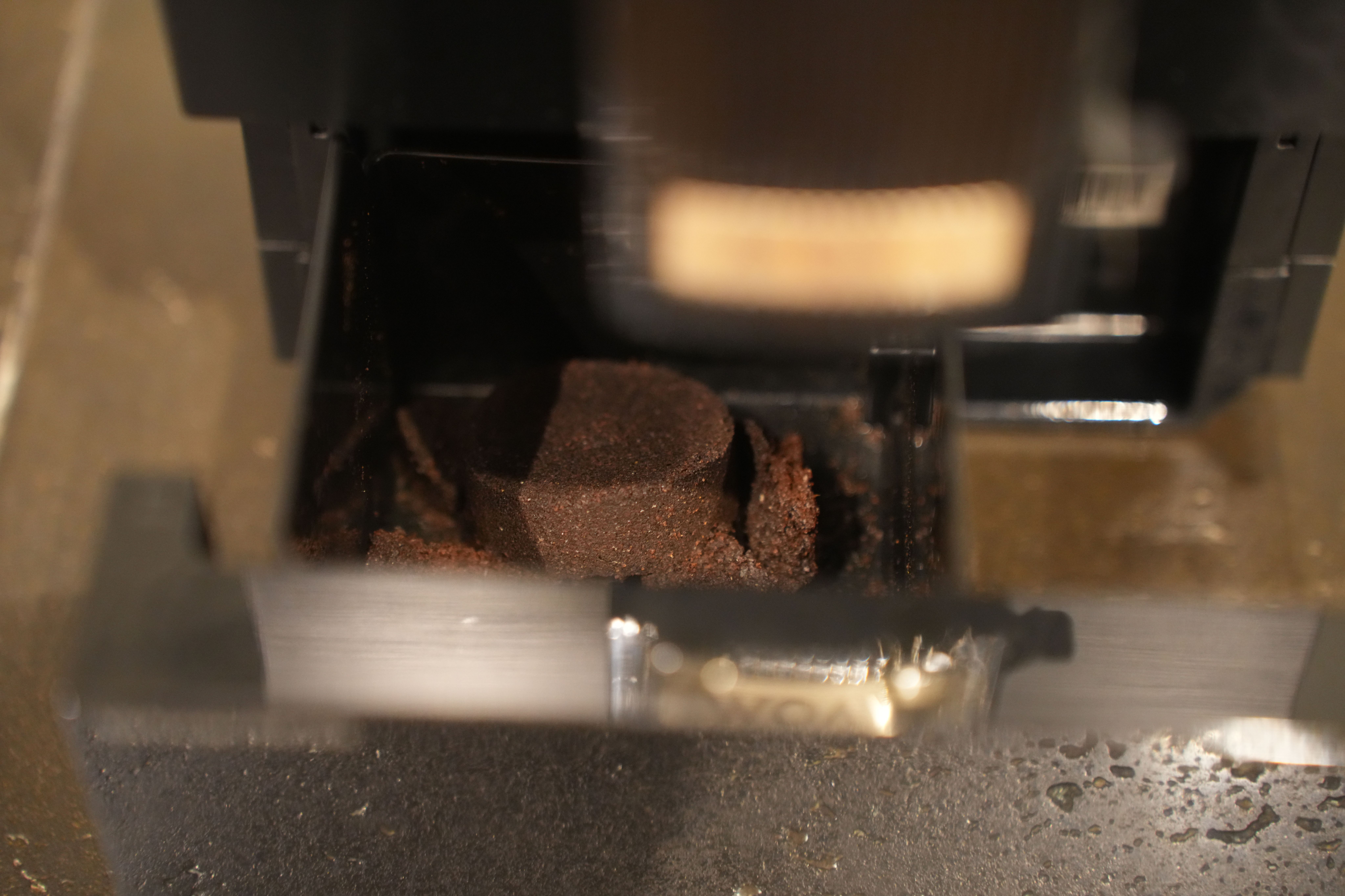 Underhållet är ganska genomtänkt på så vis att man kommer åt bryggruppen från sidan för rengöring, vilket är ett stort plus. Men eftersom maskinen är så pass liten, vilket jag gillar designmässigt, blir konsekvensen att vattentanken på 1,2 liter och bönbehållaren på 150 gram är väldigt små. Droppbrickan fylls snabbt, så man får springa och tömma och fylla på oftare än man kanske önskar. Med tanke på storleken är det kanske inte så konstigt.