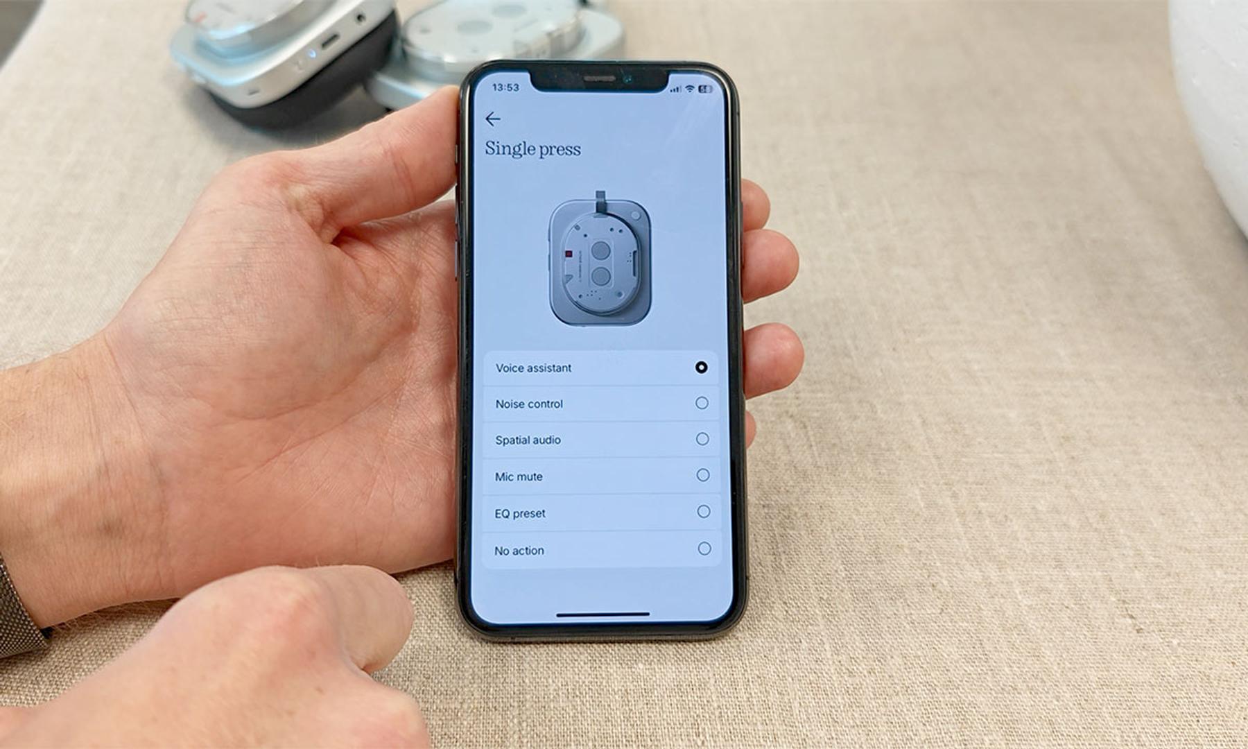 Kontrollmässigt inhyser Nothing Headphone (1) en hel del alternativ. Först och främst ska beröm ges för en ordentlig, fysisk tvåläges av och på-knapp. Bortsett från denna är även övriga knappar av fysisk karaktär vilket subjektiv är ”the way”.