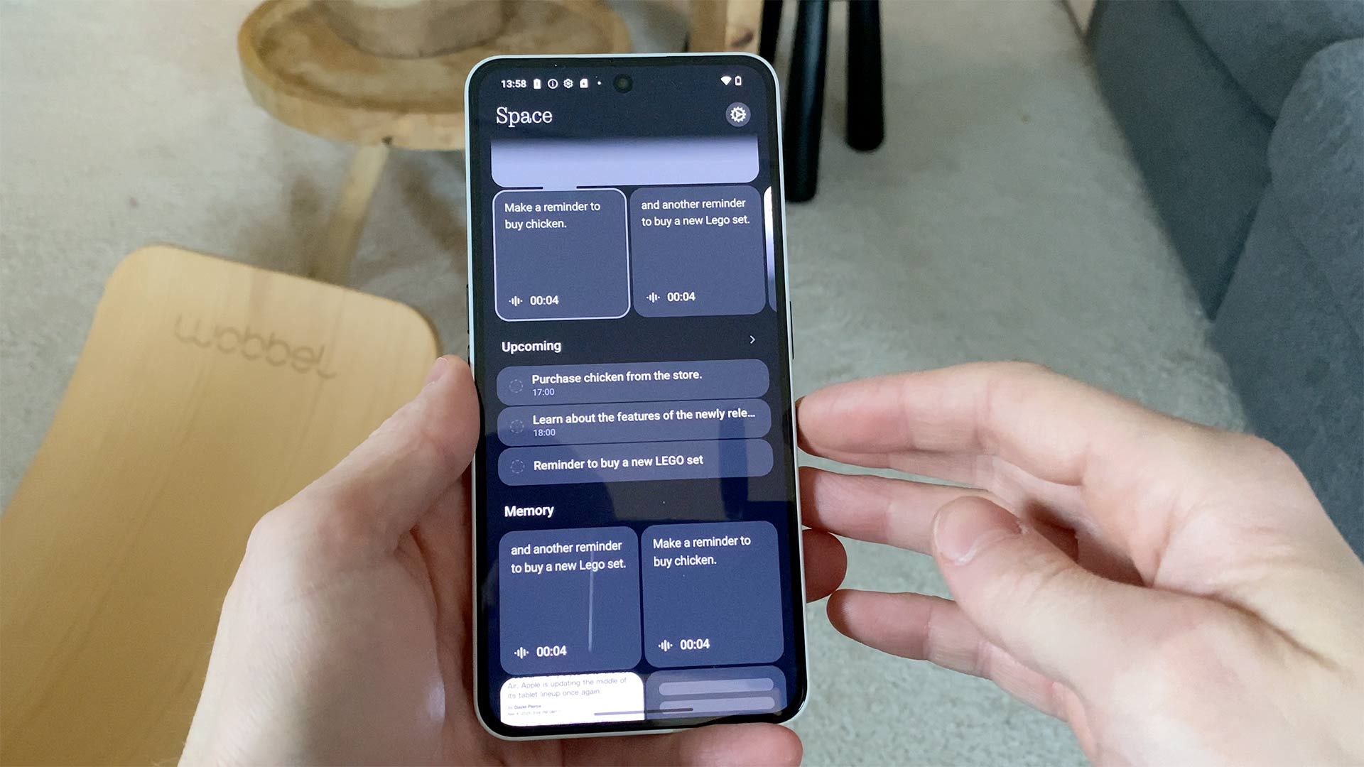 Annars är den största nyheten här den nya knappen på telefonens högersida. I korthet används denna för att spara information. Ett tryck på knappen tar en skärmavbild av det som syns på skärmen och ger sedan möjlighet att lägga till ljud- och textnotiser. Medan ett längre tryck aktiverar röst-memo-läget. Allt innehåll som läggs till sparas sedan i den nya Essential Space-appen, som fungerar ungefär som en to-do-lista. Här inkorporeras också Nothings AI-funktionalitet för att t.ex. hjälpa till att tolka röstinspelningar och göra faktiska listor eller ställa in påminnelser, alarm etc. utifrån vad man valt att spara.