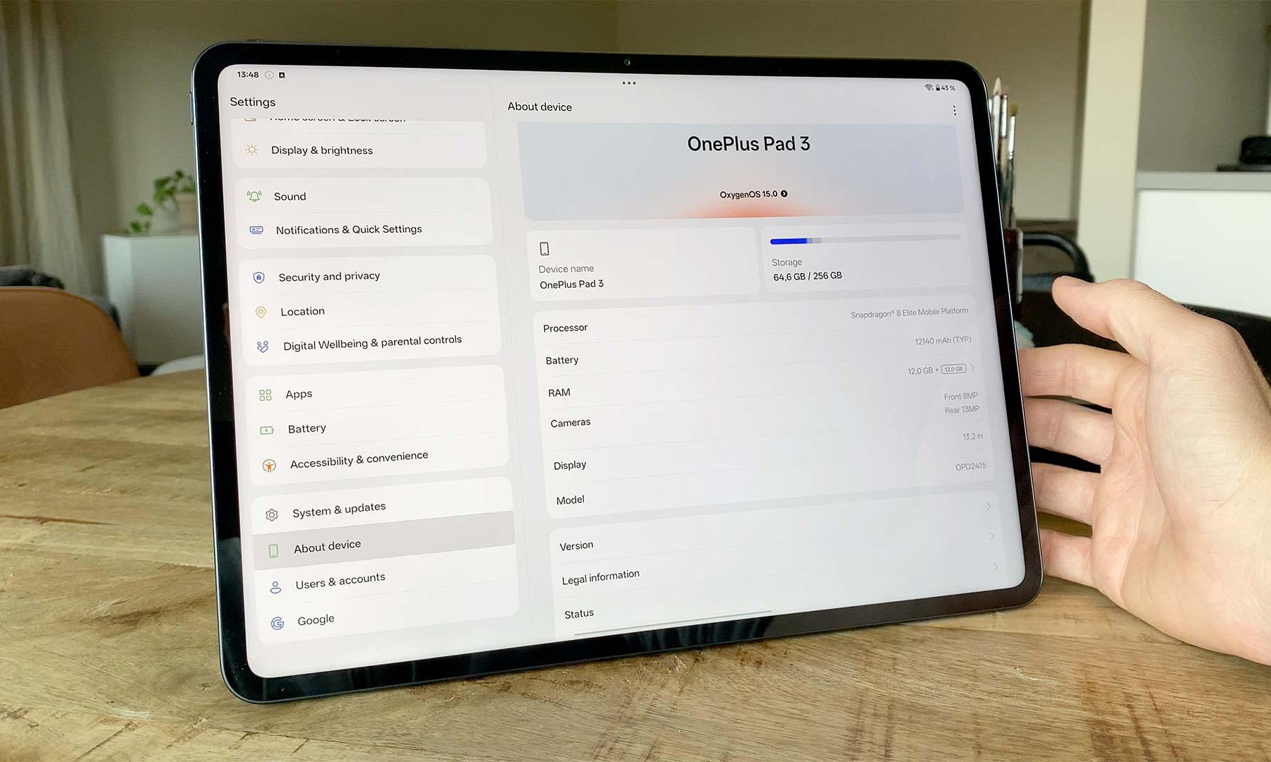 I interaktionsväg använder Pad 3 Android 15 med OnePlus eget OxygenOS ovanpå. Här har vi också kommit fram till version 15 och precis som tidigare handlar det om ett överlag trevligt användargränssnitt med ett logiskt upplägg utan förinstallerade reklamappar.
