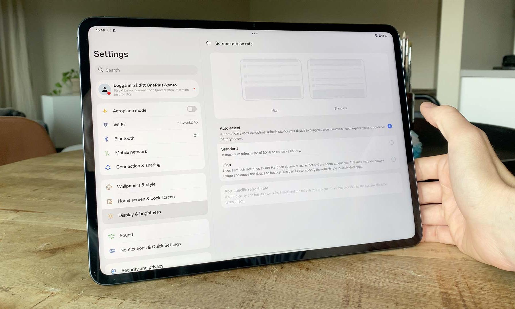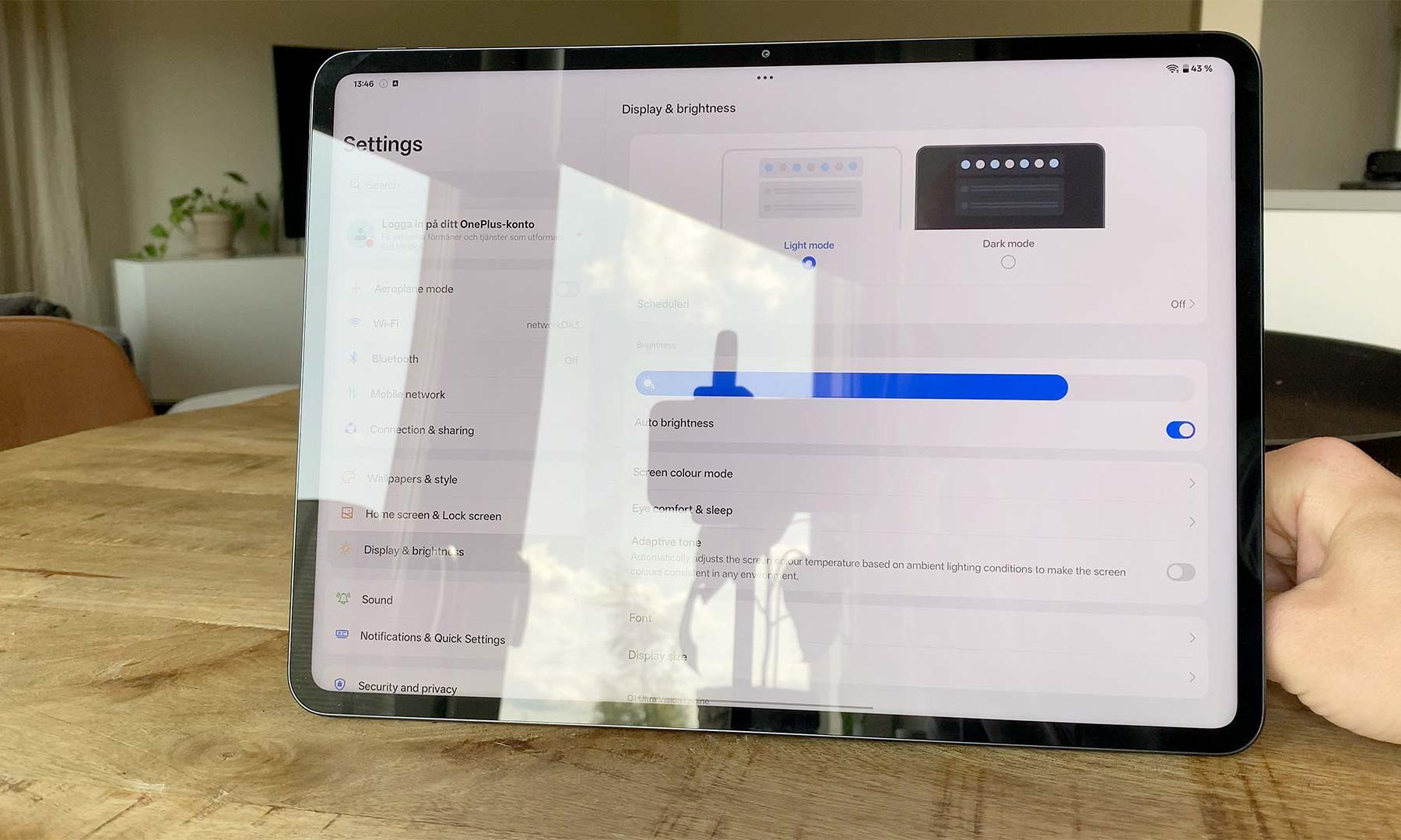 Vad betyder då allt det? Jo, att OnePlus Pad 3 har en halvt gigantisk men väldigt duglig skärmpanel. Färger är utmärkta och även om skärmens ljusstyrka ligger kvar på föregångarens 600 nits är den ändå fullt tillräcklig för en panel i denna storlek. Uppdateringshastigheten når upp till 144 Hz och justeras automatiskt beroende på vad plattan håller på med för stunden.