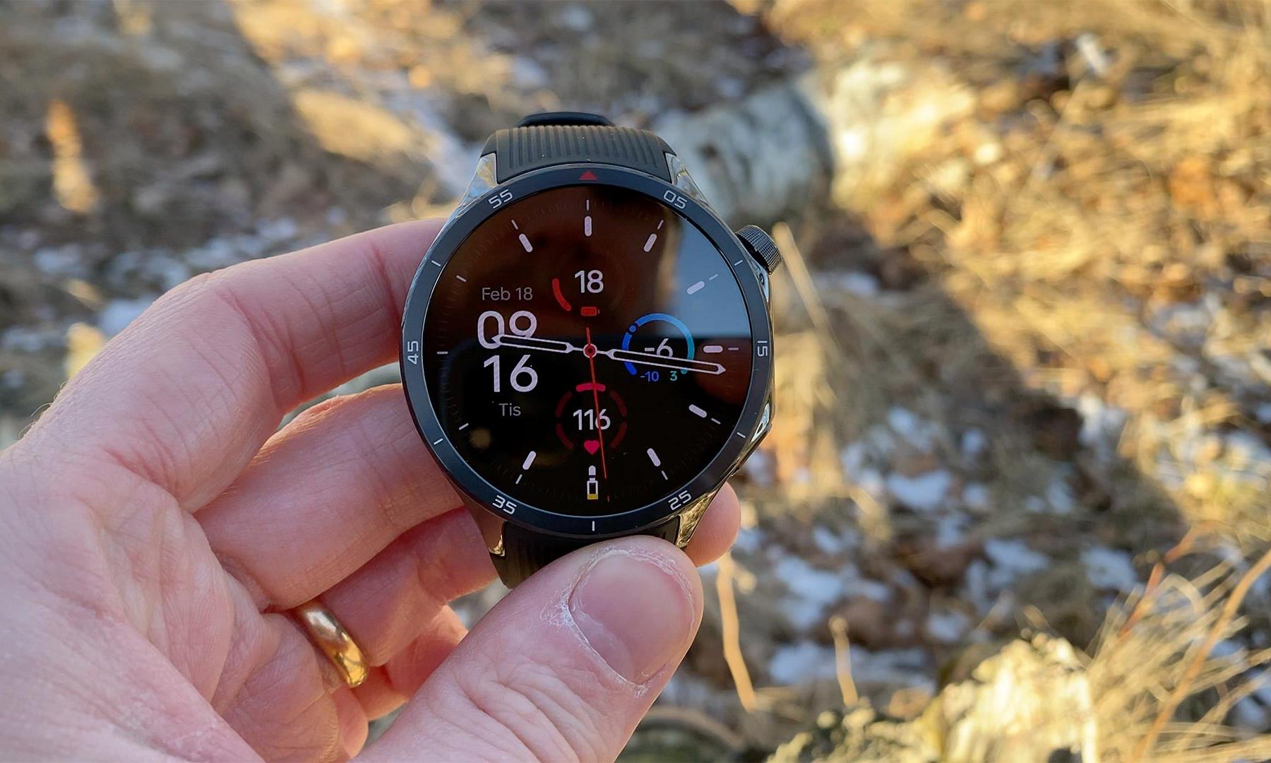 Ytterligare en uppdatering från fjolårets modell är att AMOLED-skärmen både tagit ett storleksmässigt kliv upp från 1,43 tum till 1,5 tum och därtill blivit ordentligt mer ljusstark med en maximal ljusstyrka (peak brightness) på hela 2200 nits (att jämföra med 1000 nits hos OnePlus Watch 2). Här bidrar den ökade ljusstyrkan utan tvekan till en ännu trevligare upplevelse och att använda klockan utomhus, även i direkt solljus, är inga problem.