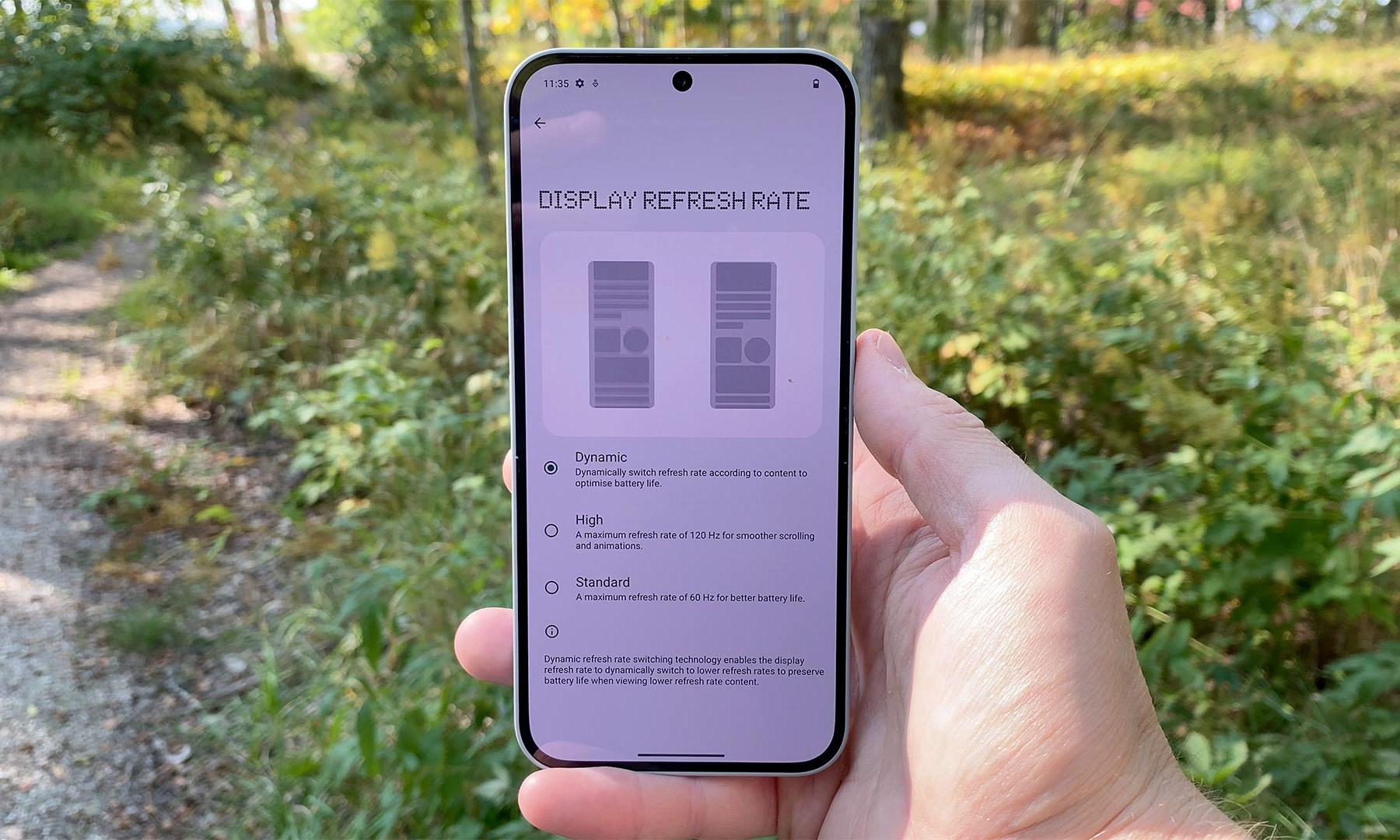 Skärmen hos Phone (2a Plus) är av exakt samma typ som hos Phone (2a). Alltså en 6,7 tum stor AMOLED-variant med 1080 x 2412 pixlars upplösning och en fullgod ljusstyrka på cirka 700 nits. Uppdateringshastigheten går därtill upp till 120 Hz när telefonen anser det nödvändigt. Här lämnar skärmen givetvis samma goda intryck den gjorde hos vanliga Phone (2a). Allt känns livfullt och skarpt och skärmen är skönt befriad från (åtminstone synliga) eftersläpningar och andra skuggeffekter.
