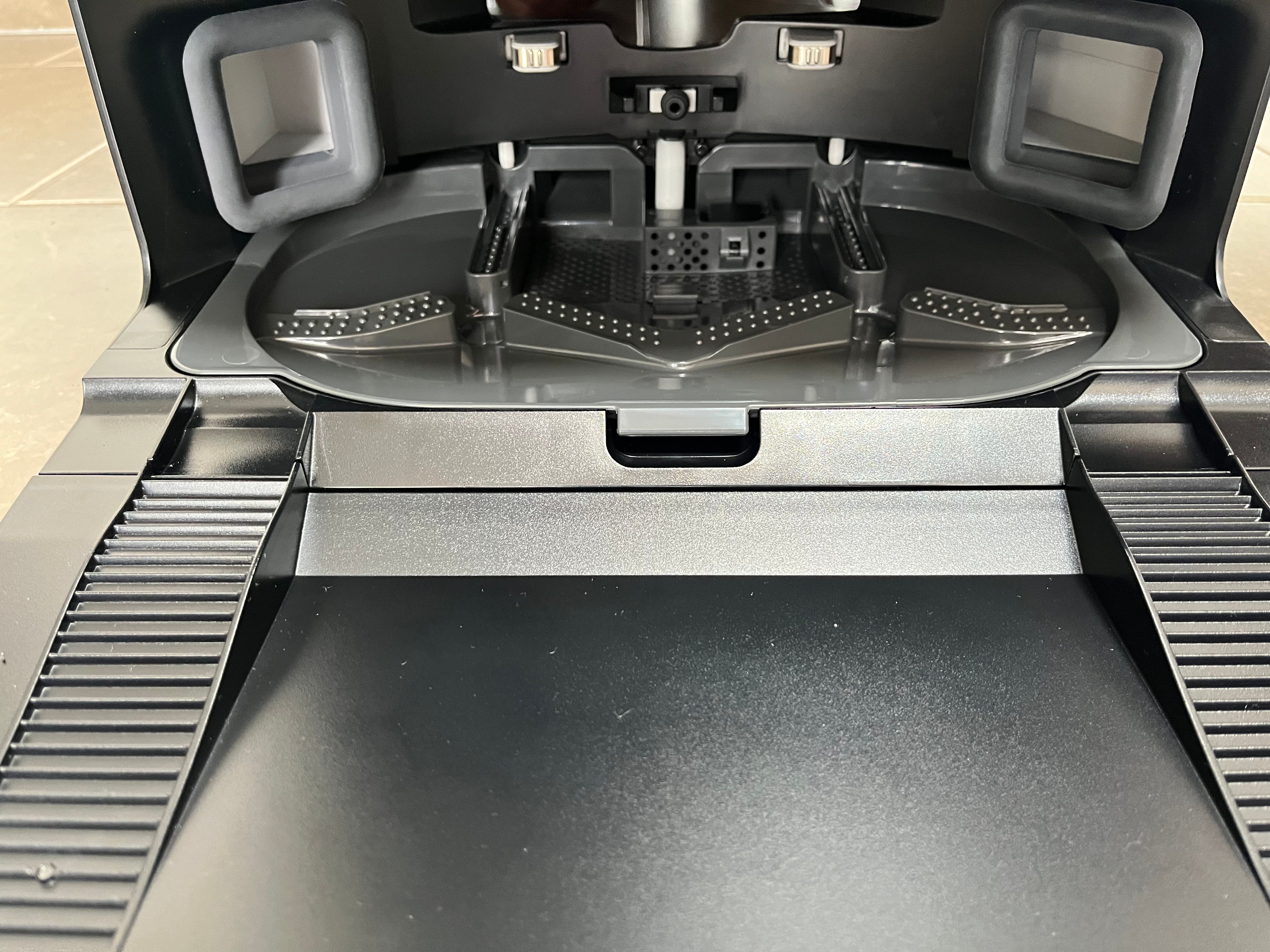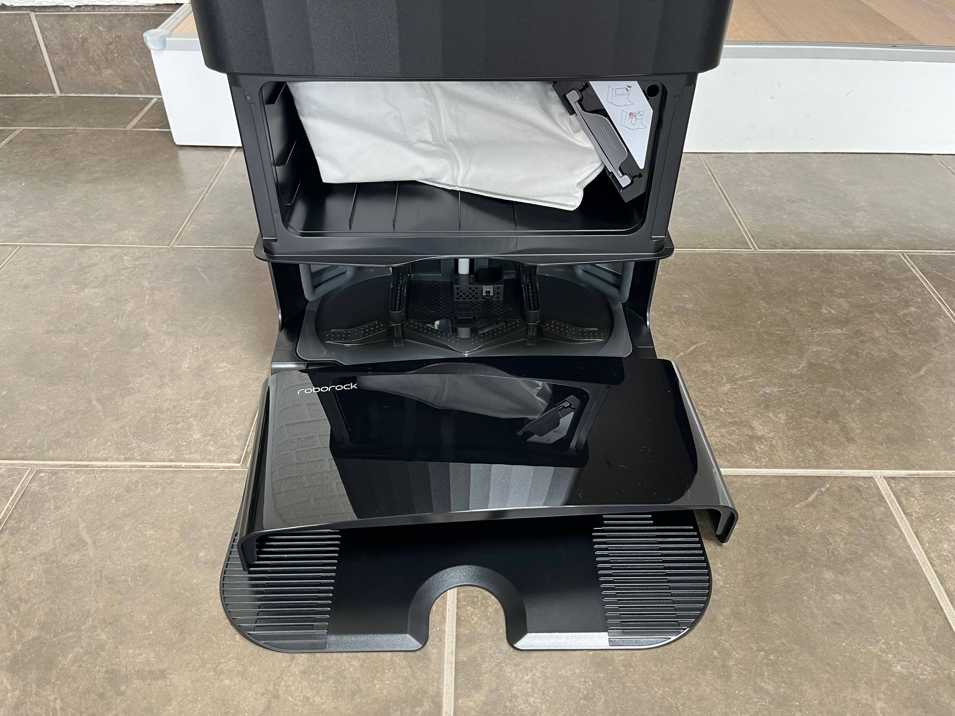 Allt fungerar smärtfritt och ljudnivån vid tömning av dammbehållaren är nog den lägsta av de robotdammsugare jag testat hittills. Det är verkligen inget som stör eller skrämmer. En smart funktion med laddstationen är den avtagbara basen, vilket gör det enkelt att rengöra efter några tvättar av moppdynorna. Laddstationen har även 30% snabbare laddning, vilket märks. Dock är detta inget vi här hemma har så stort behov av, eftersom städområdet bara är 44 kvm och det tar 48 minuter för dammsugaren att städa. När roboten är klar finns det gott om kapacitet kvar i det stora batteriet.