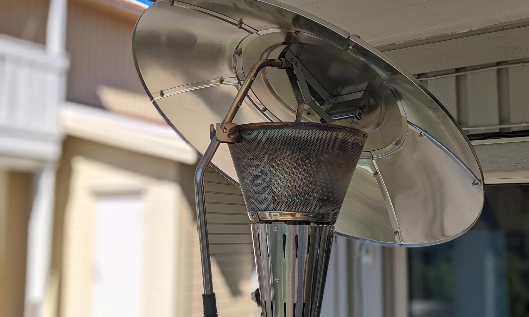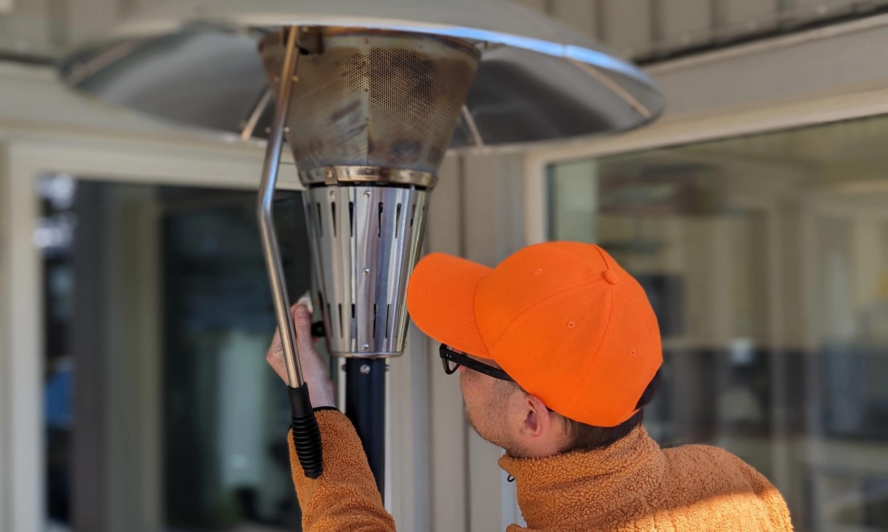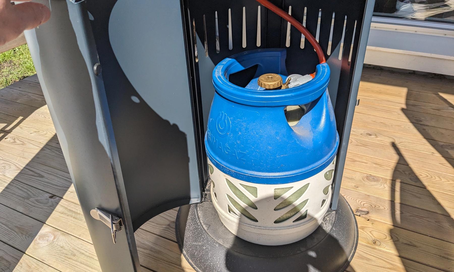 Det finns flera olika alternativ för terrassvärmare, både infravärme och gasol. Båda alternativen har sina för- och nackdelar. Den här gången testade vi en gasolvärmare, liknande dem man ofta ser på uteserveringar, som står på en pelare och värmer med gasol.