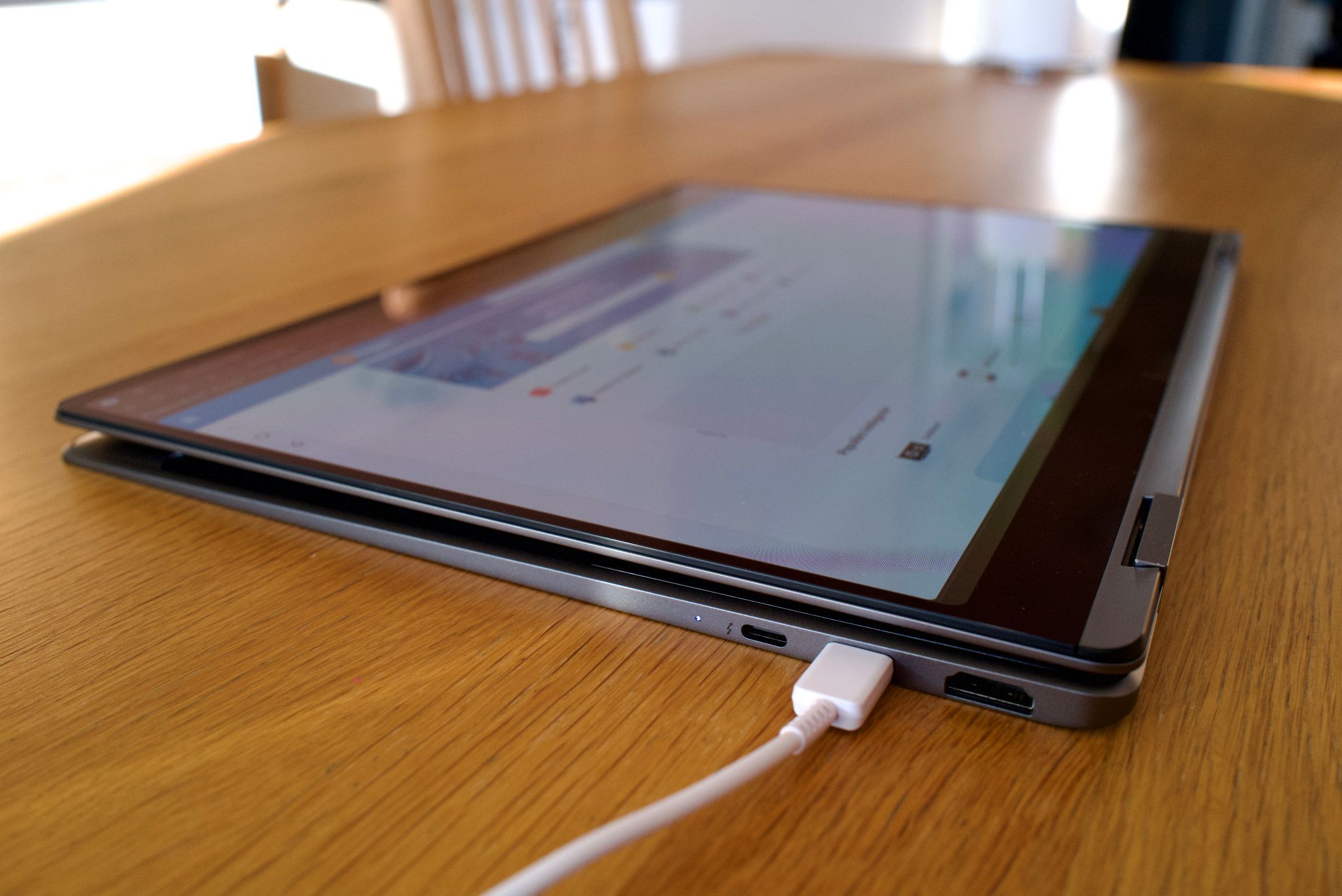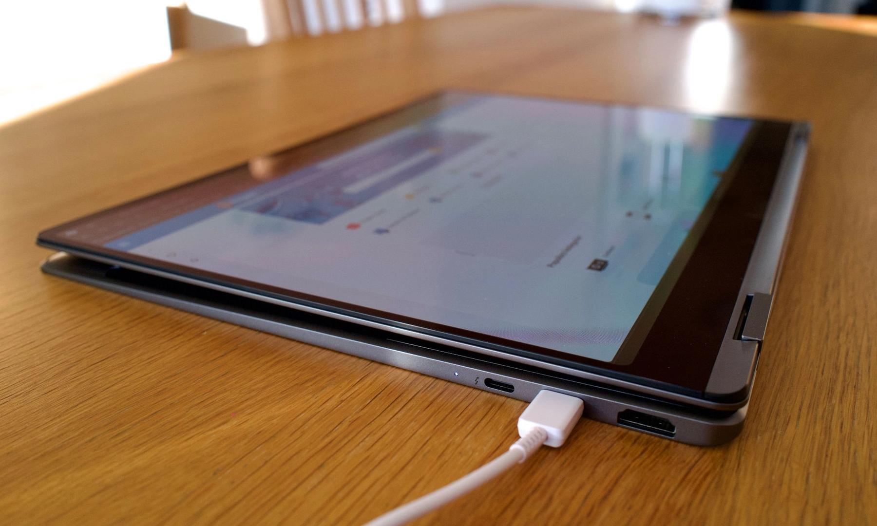 76 Wh med laddning över USB-C, 65 W-laddare medföljer