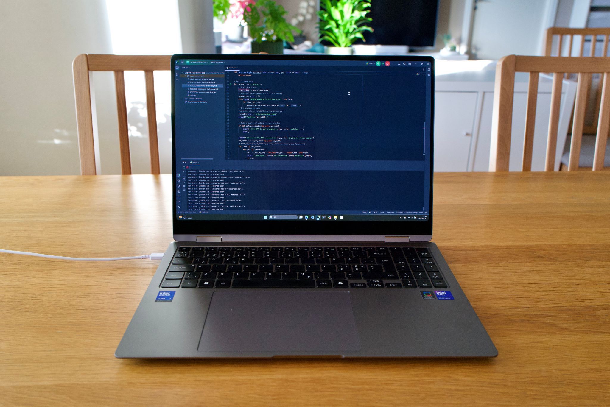 Samsung Galaxy Book5 Pro 360 är en ordentlig pjäs, mycket tack vare/på grund av touchskärmen på 16" med Dynamic AMOLED-teknik, 3K-upplösning och upp till 120 Hz bilduppdateringsfrekvens.