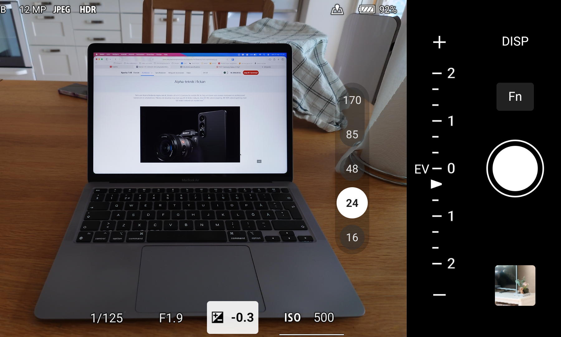 Den stora skillnaden här blir egentligen tillgången till en fysisk slutarknapp med möjlighet att fokusera när den trycks ner till hälften, det känns kort och gott lite mer som fotografering jämfört med skärmkontroller.
